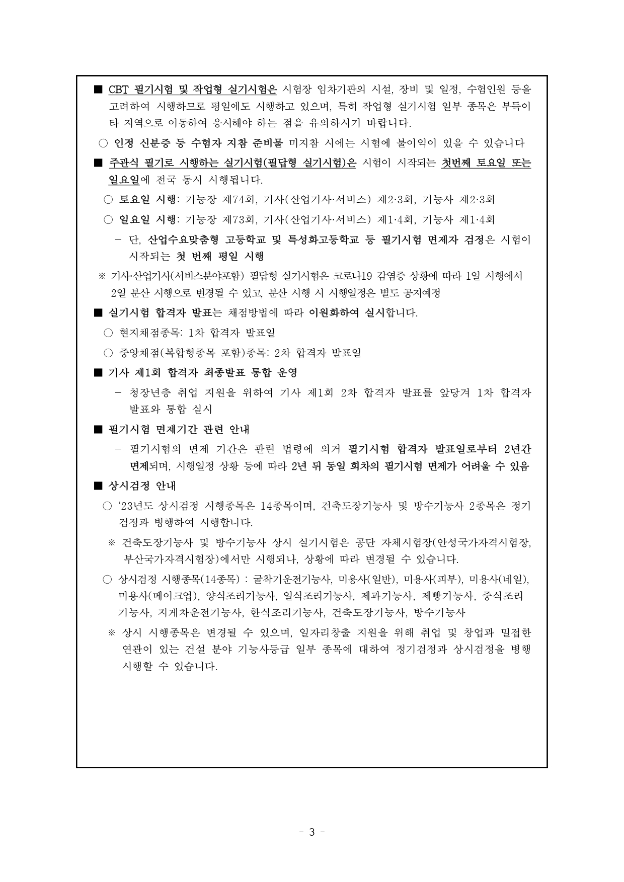 국가기술자격법 시행령 제15조의 규정에 따라 2023년도 국가기술자격검정 시행계획을 다음과 같이 안내해드립니다.