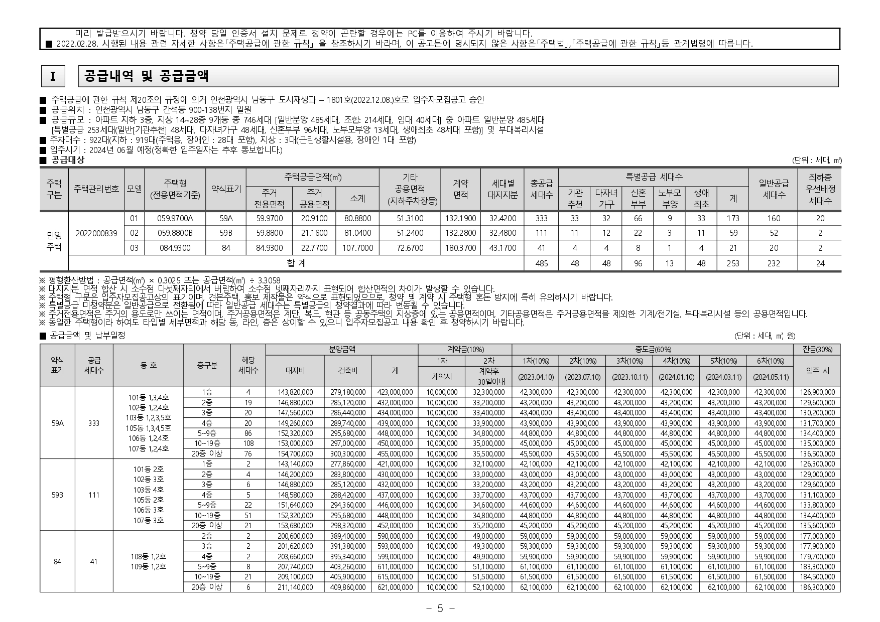 ■ 해당 주택건설지역(인천광역시)는 「주택법」 제63조 및 제63조의2에 의한 비투기과열지구 및 비청약과열지역으로서, 본 아파트는 「주택공급에 관한 규칙」에 따라 1주택 이상 소유한 세대에 속한 분도 1순위 자격이 부여됩니다.