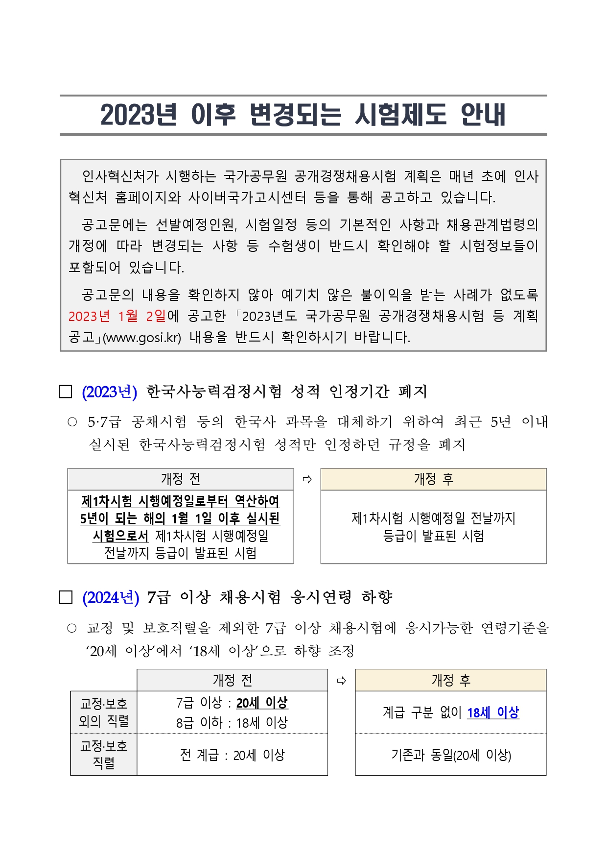 2023년 이후 변경되는 국가 공무원 시험제도 안내입니다.
