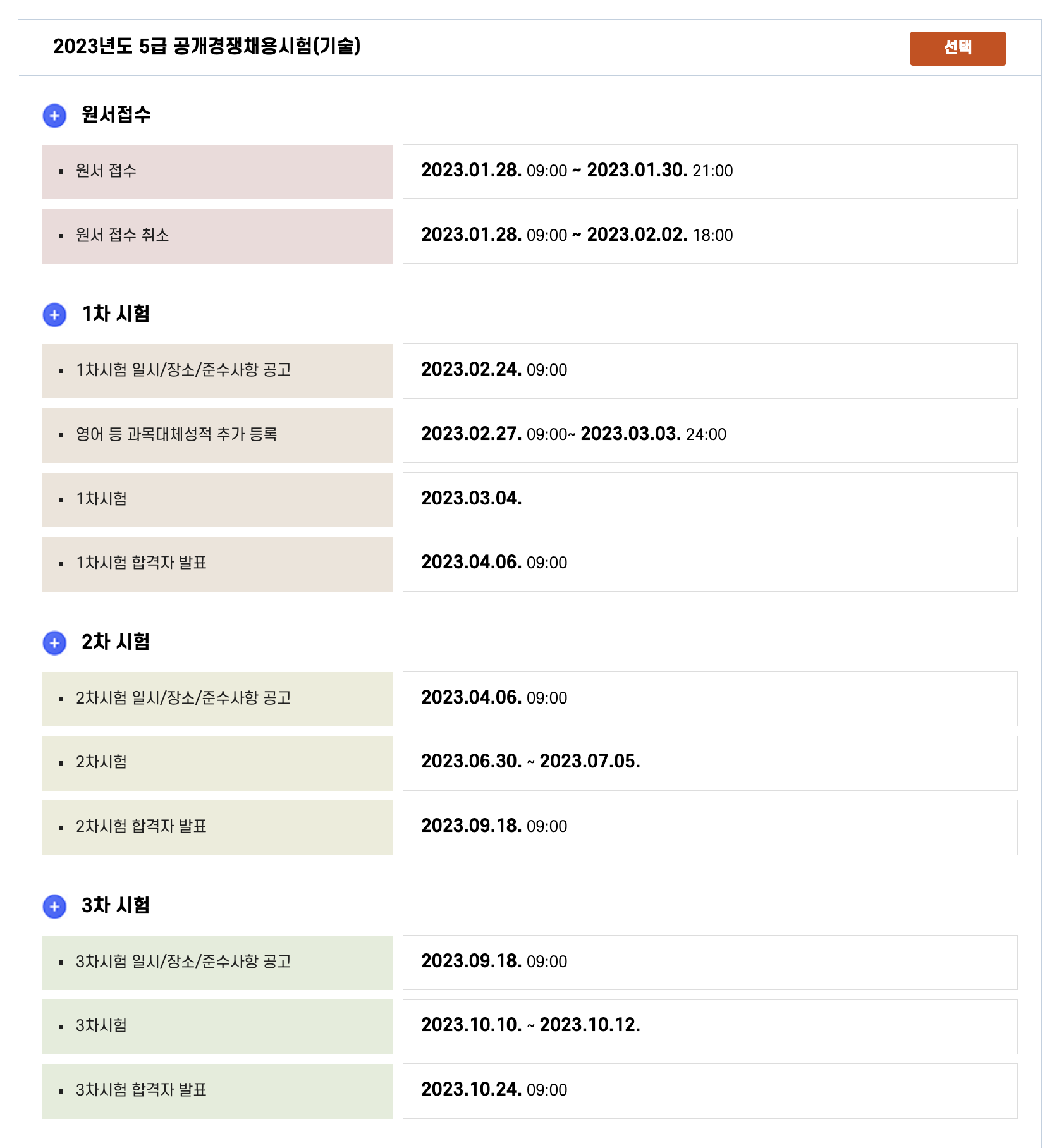 원서접수 기간, 1차 시험 기간, 2차 시험 기간 등 상세 일정을 살펴보시기 바랍니다.