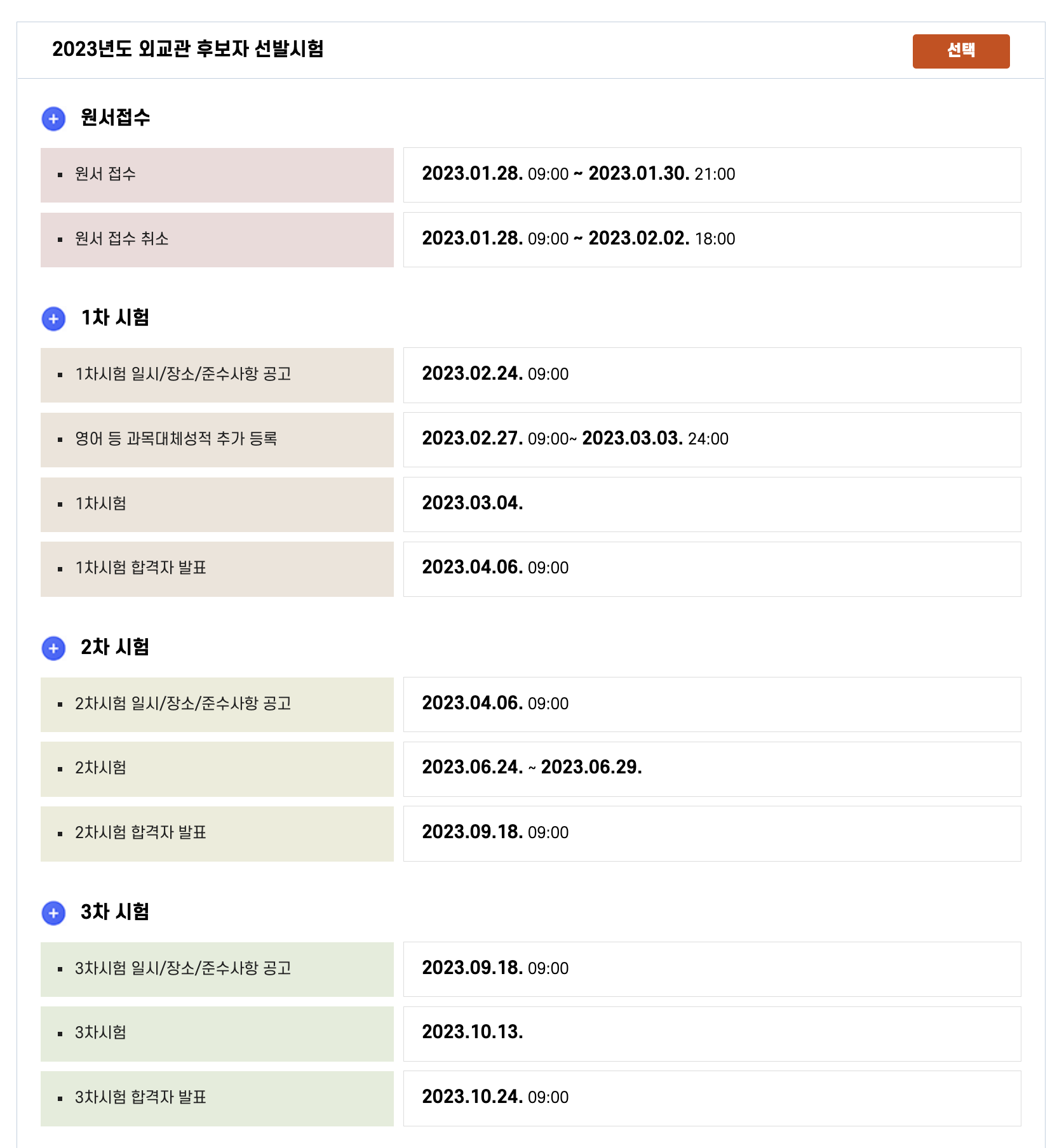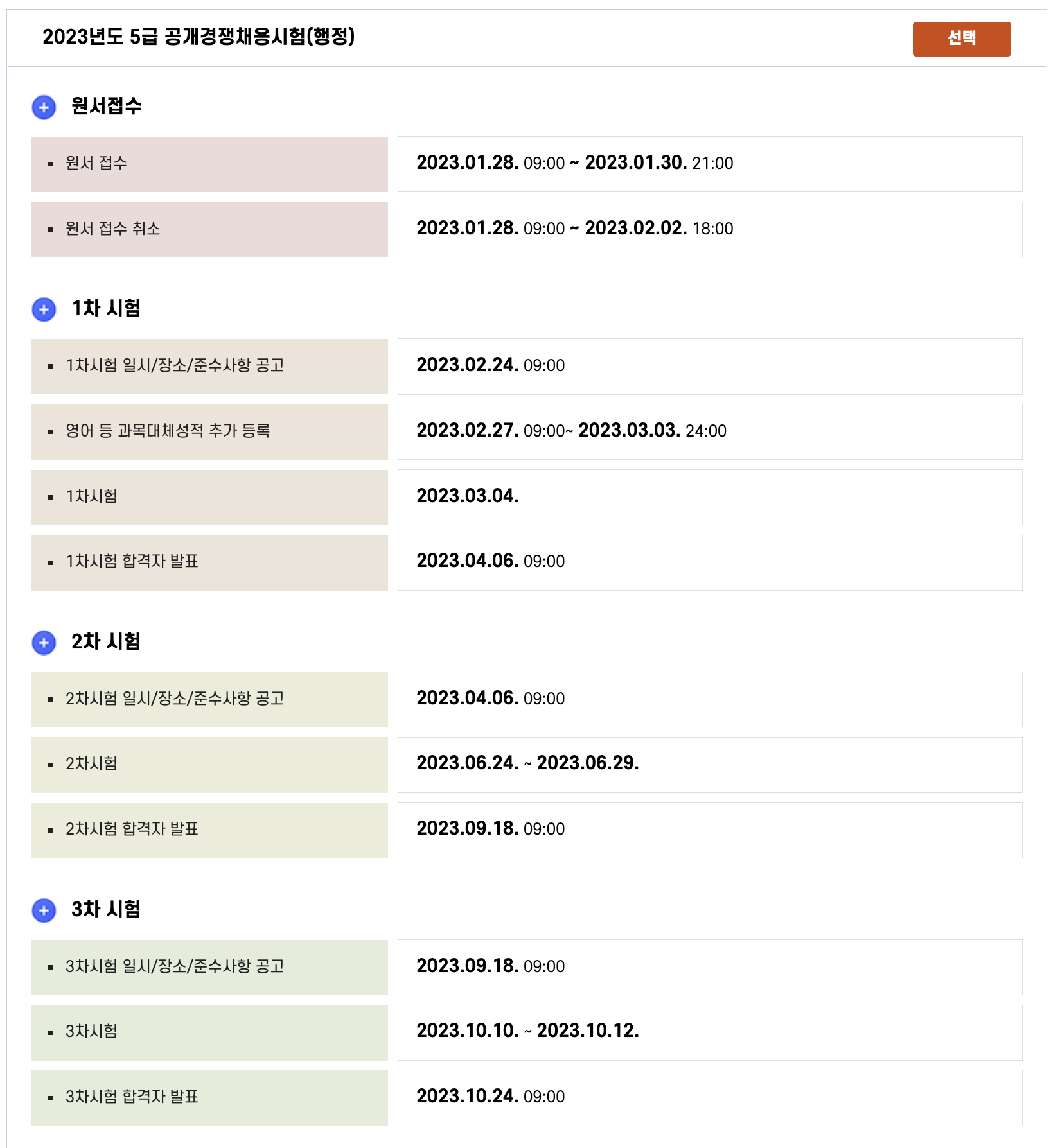 2023년 국가공무원 채용시험 5급, 외교관, 7급, 9급 시험 상세일정입니다.