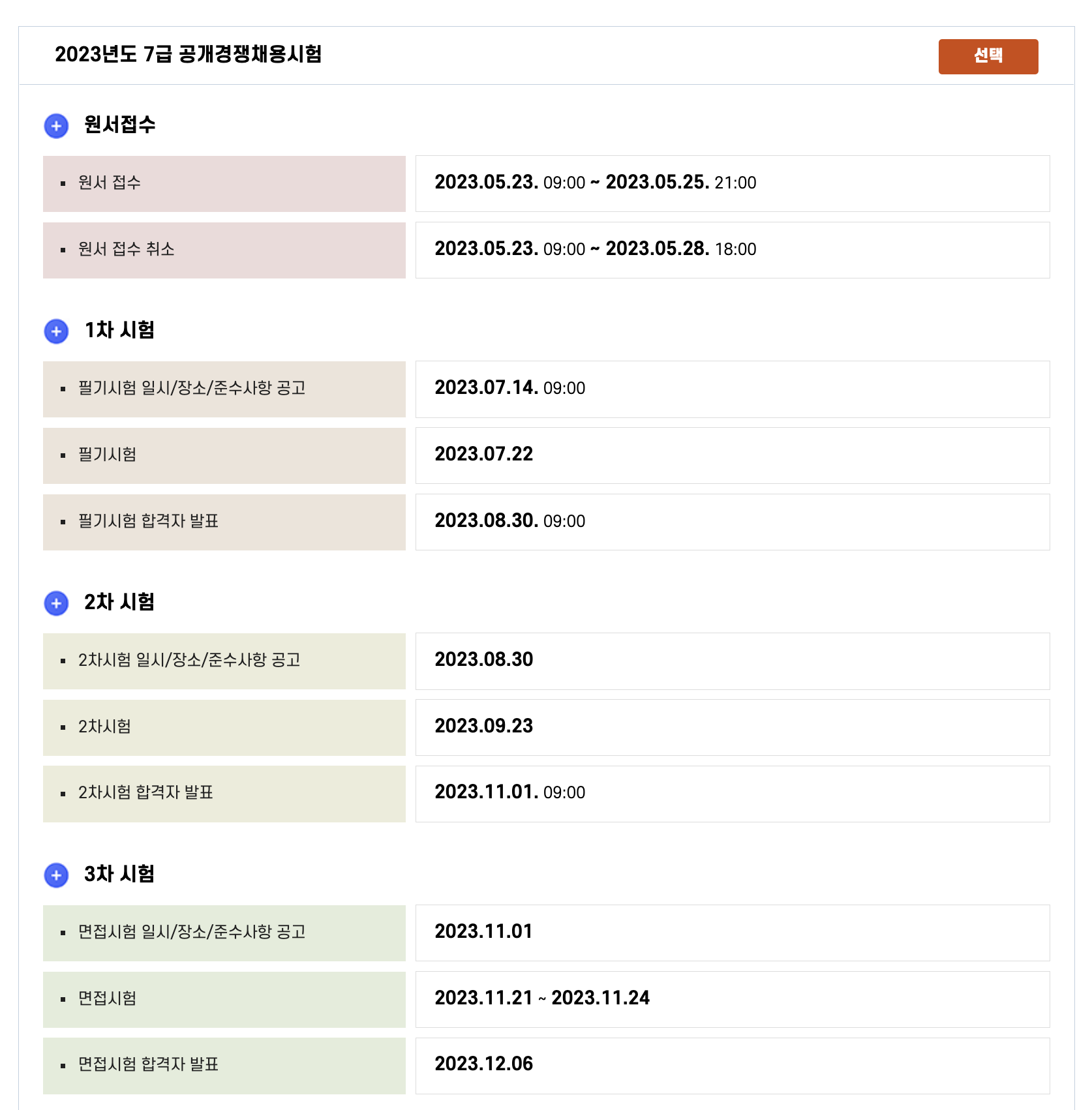 원서접수 기간, 1차 시험 기간, 2차 시험 기간 등 상세 일정을 살펴보시기 바랍니다.