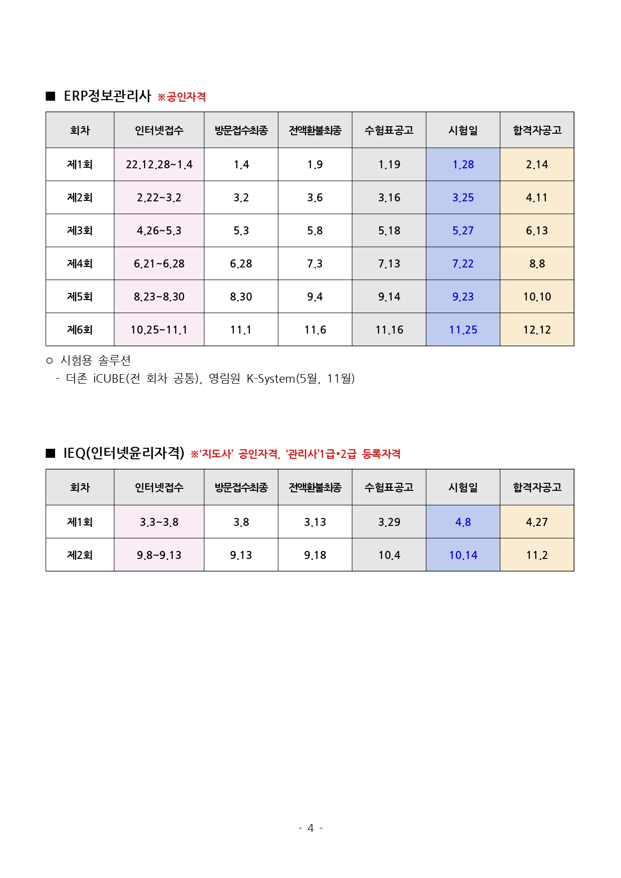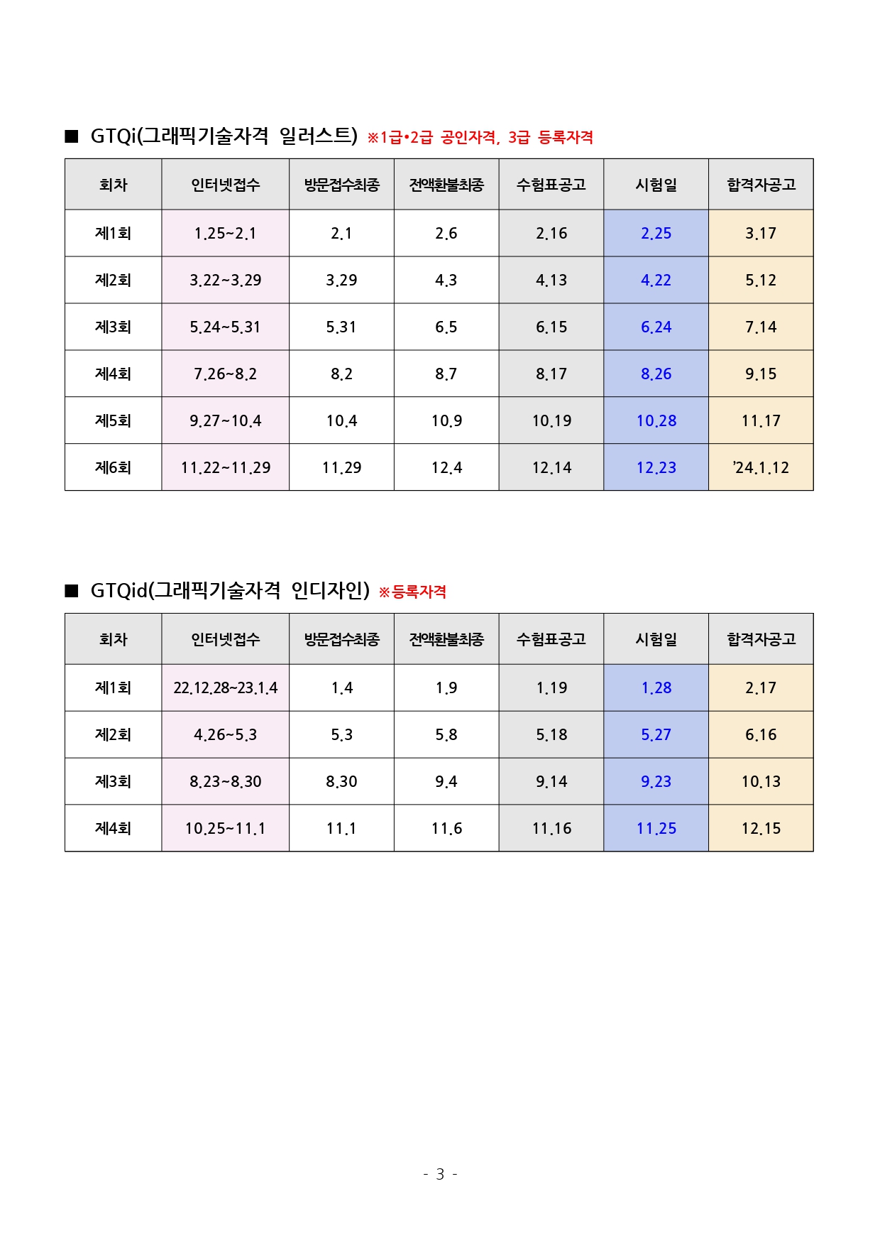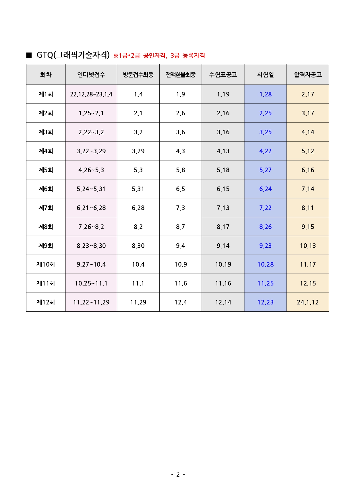 정보기술자격, 그래픽기술자격 등 다양한 자격 시험 일정을 살펴보시길 바랍니다.