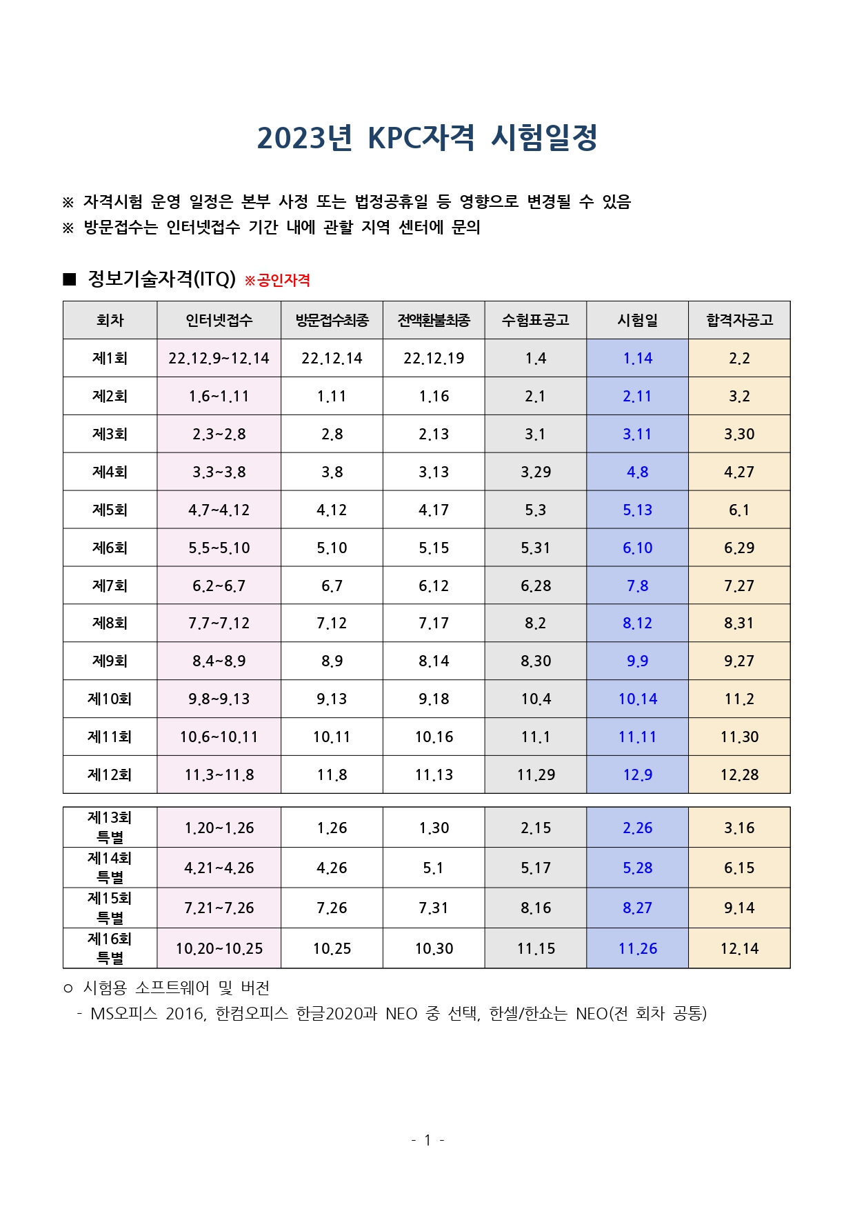 한국생산성본부 2023 KPC 자격증 시험 일정 안내입니다.