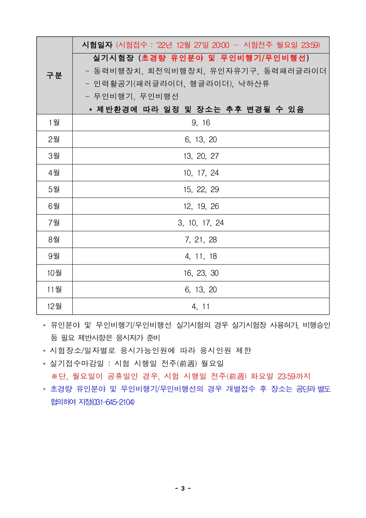 2023년도 드론 학과 시험일정은 다음과 같다.