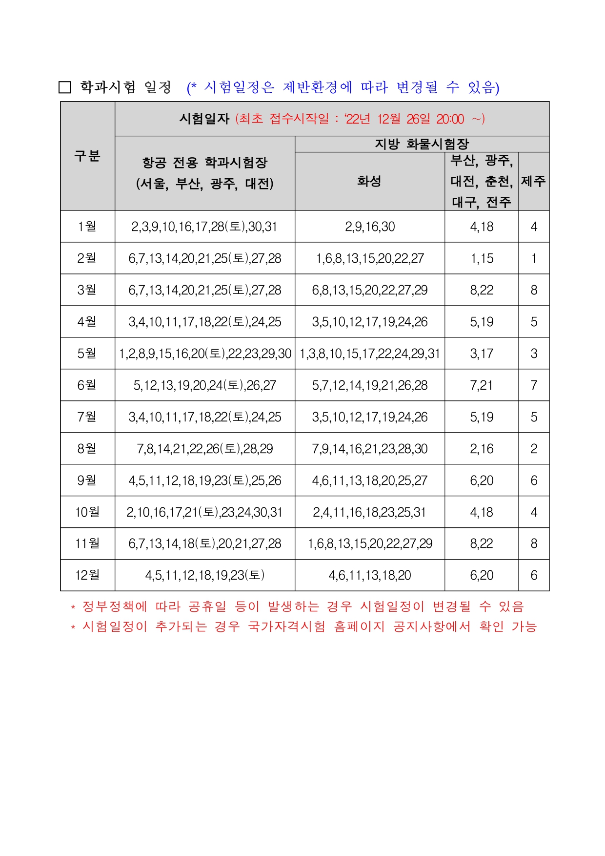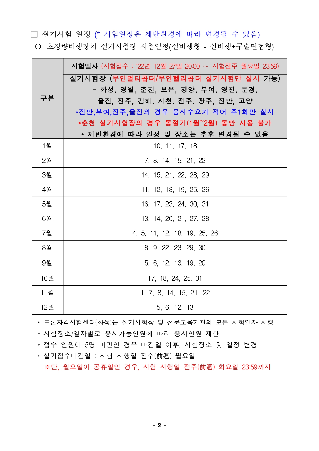 2023년도 드론 학과 시험일정은 다음과 같다.