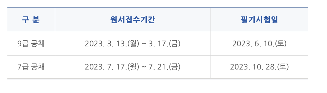 2023년도 지방공무원 원서접수기간 및 필기시험 일정을 아래와 같이 안내드립니다.