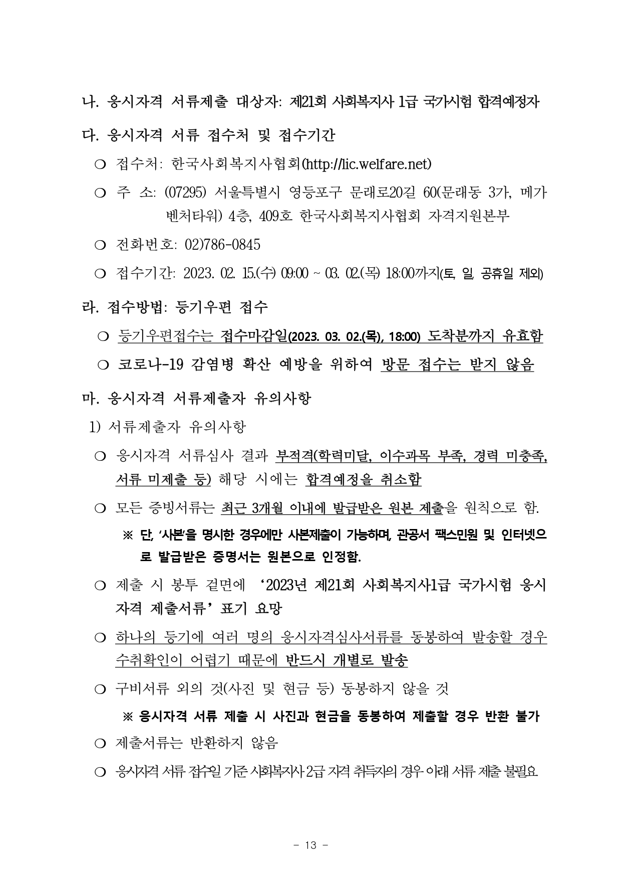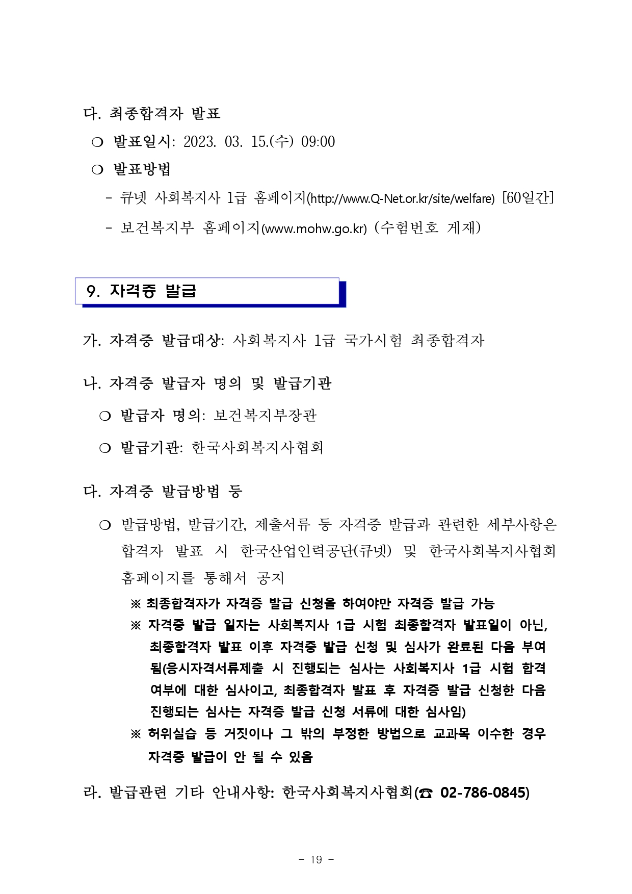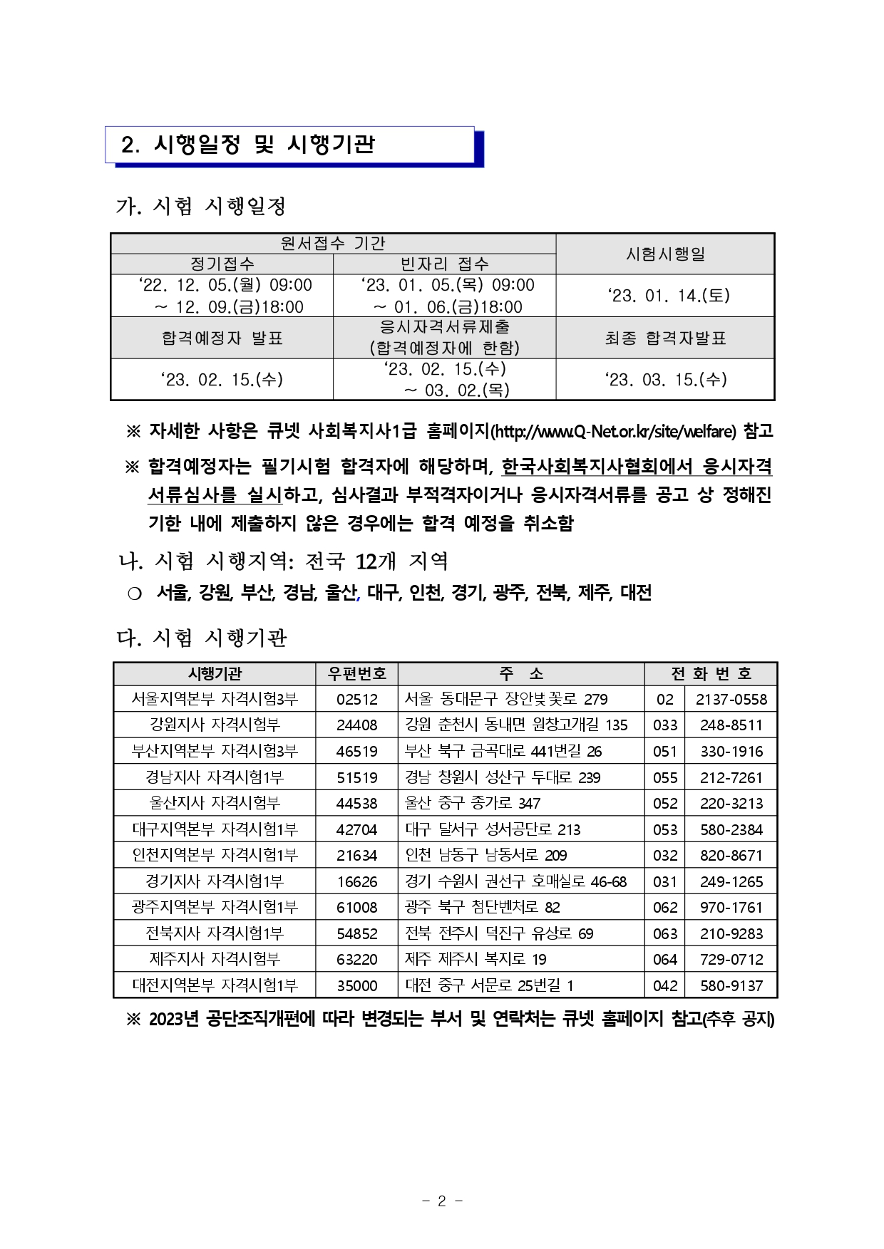 「사회복지사업법 시행령 제3조제3항」의 규정에 따라 2023년도 제21회 사회복지사 1급 국가자격시험 시행계획을 다음과 같이 공고합니다.