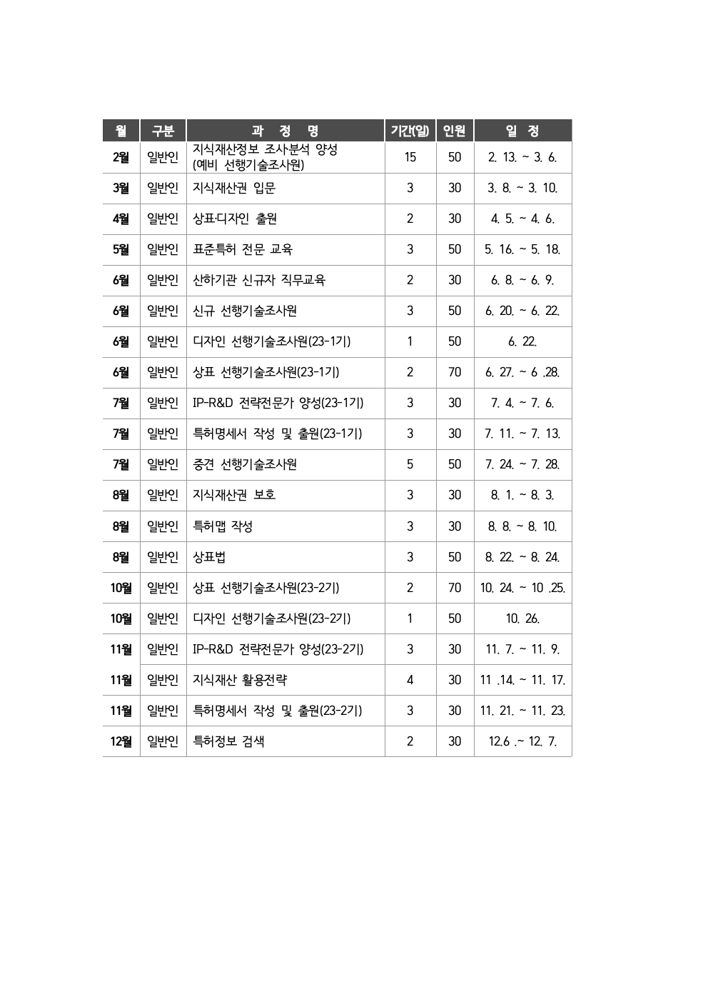 교육은 대전에 있는 국제지식재산연수원에서 진행된다.