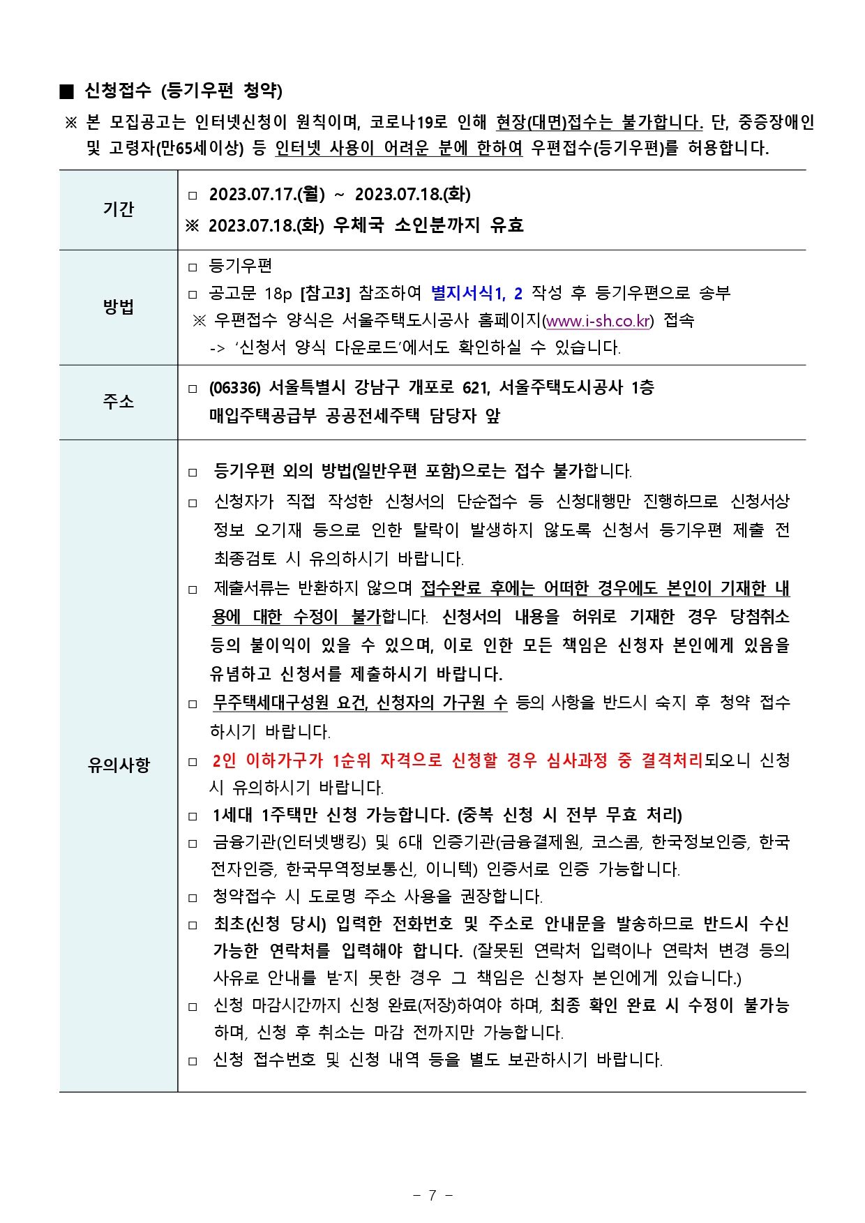 ▪ 청약자격 미숙지, 착오신청 등에 대해서는 청약신청자 본인에게 책임이 있으니 불이익을 당하는 일이없도록 유의하여 주시기 바랍니다.