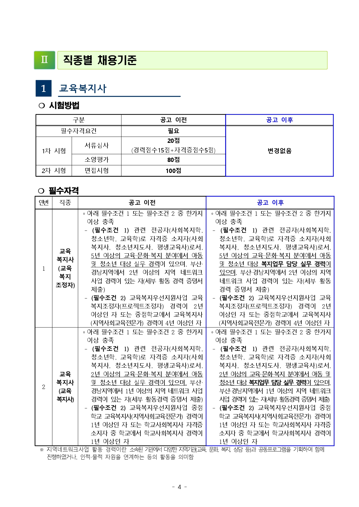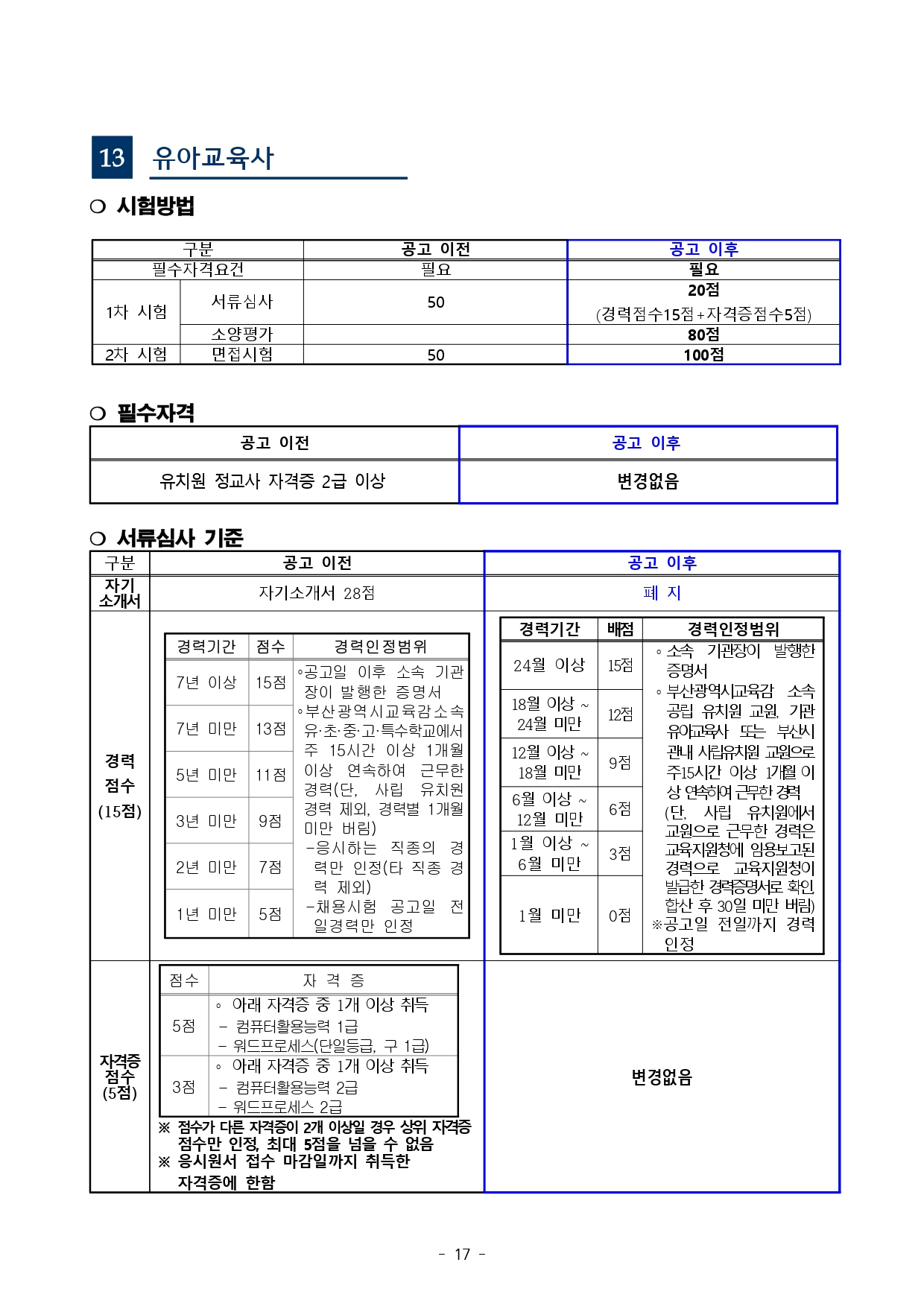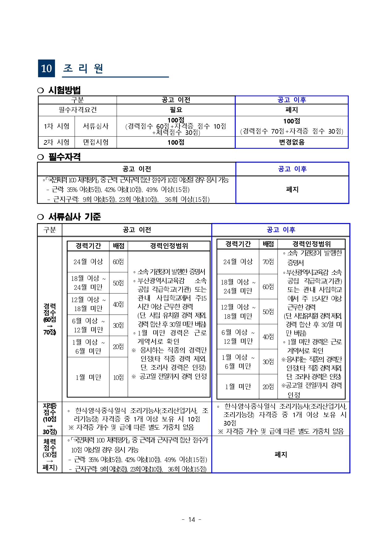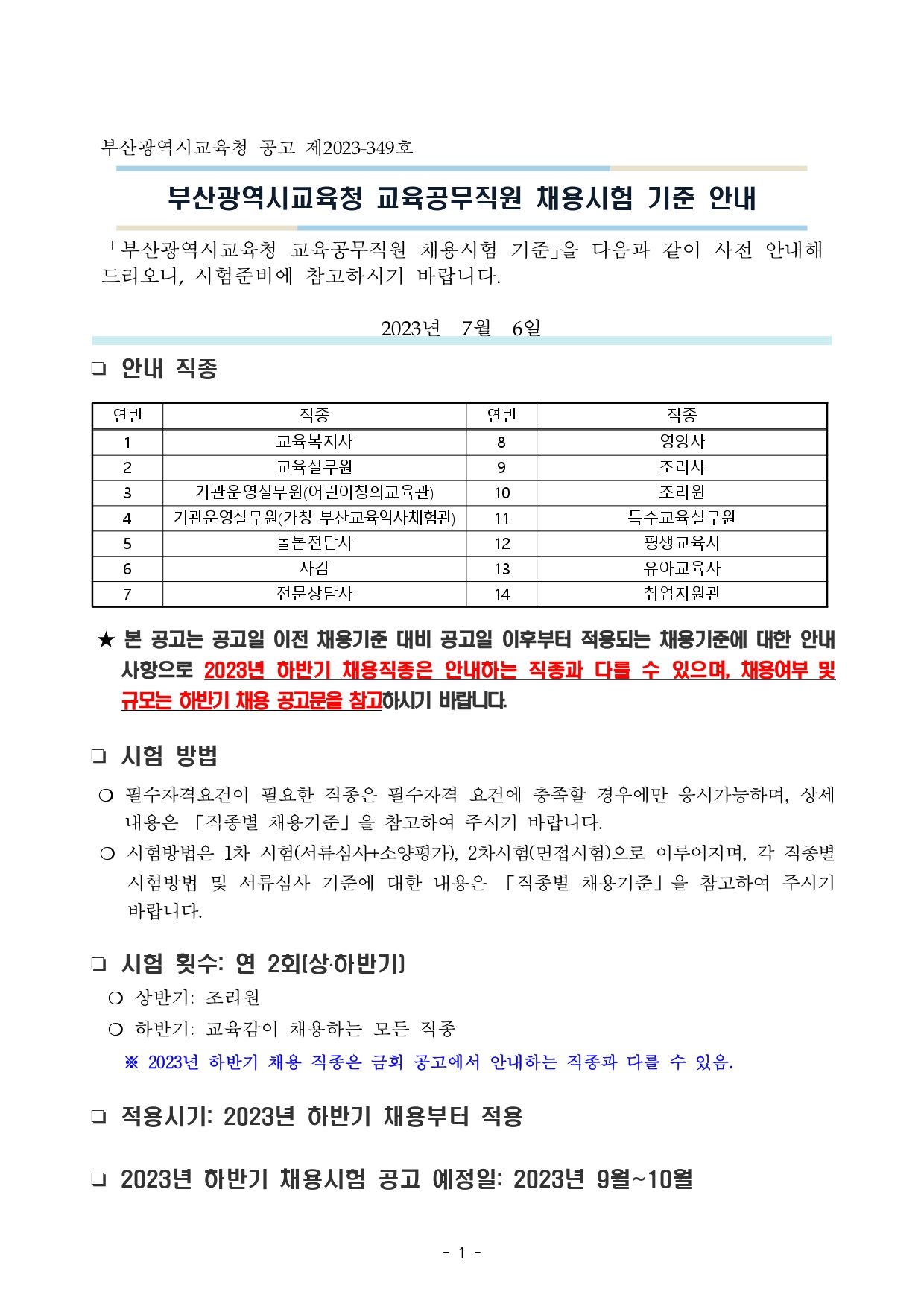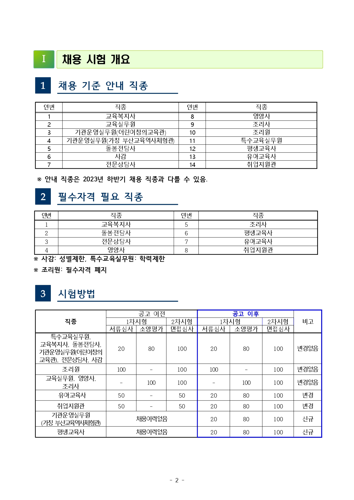 「부산광역시교육청 교육공무직원 채용시험 기준」을 다음과 같이 사전 안내해 드리오니, 시험준비에 참고하시기 바랍니다.