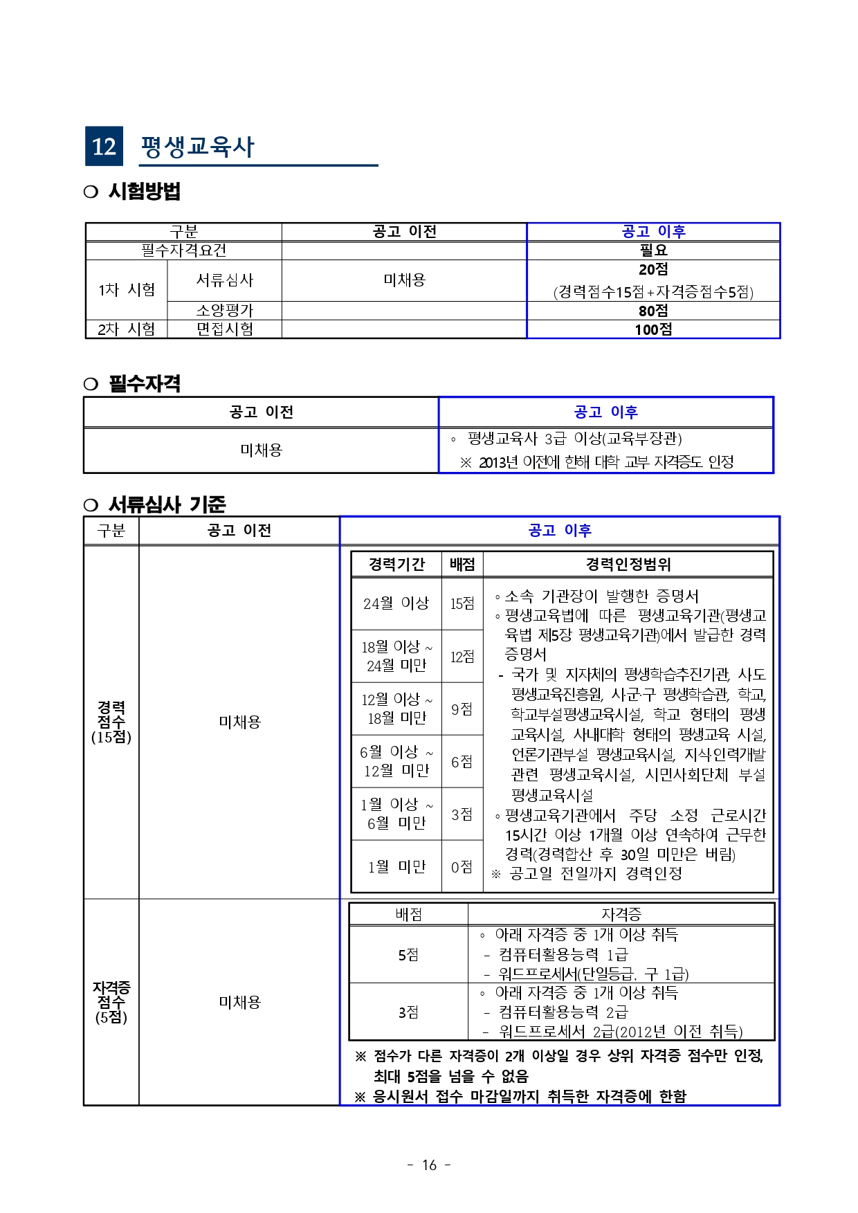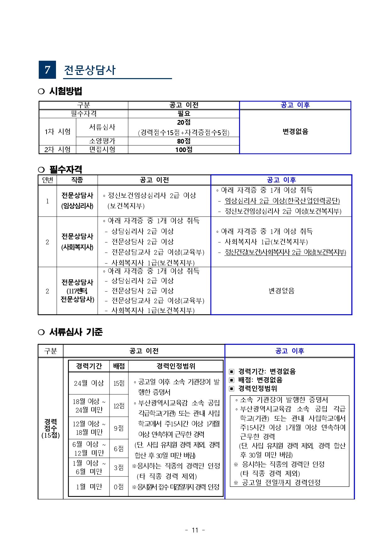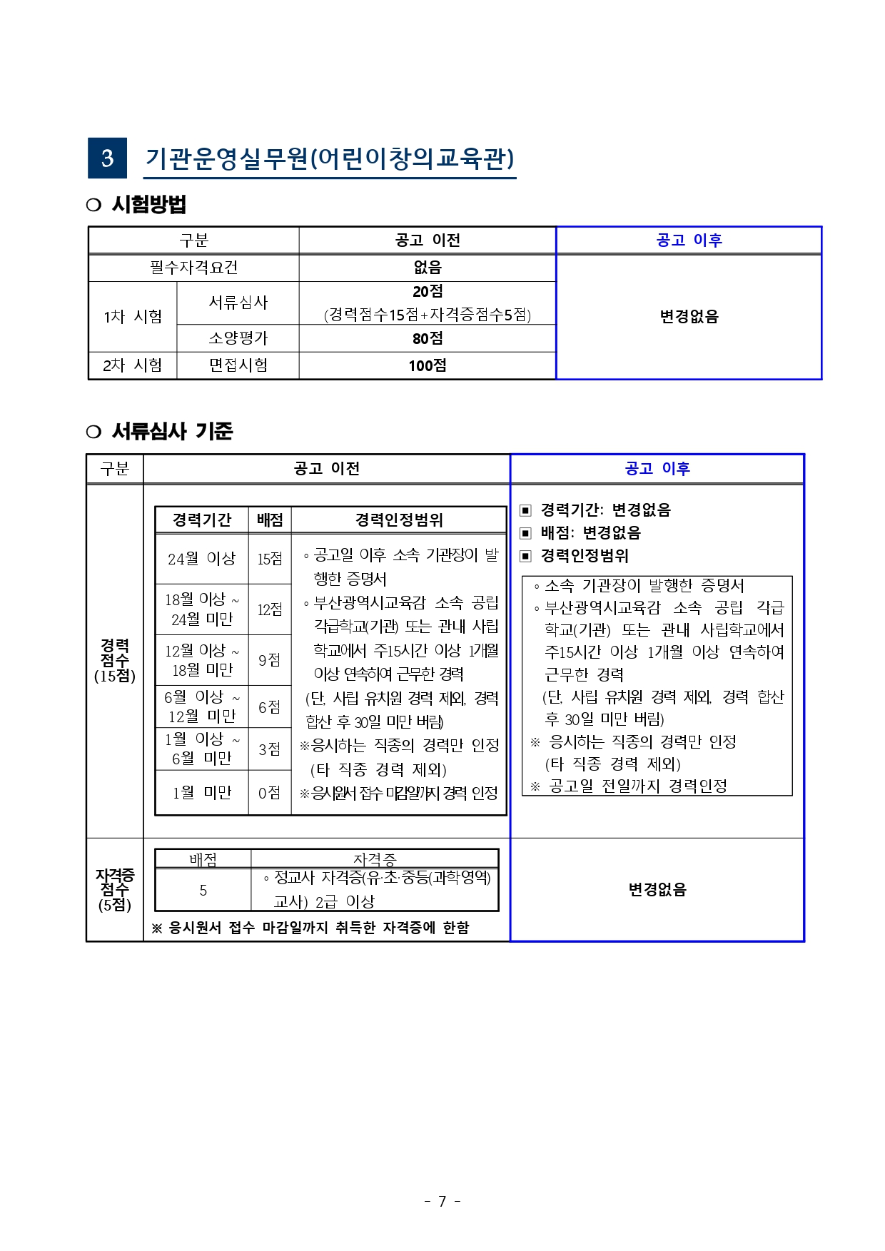 「부산광역시교육청 교육공무직원 채용시험 기준」을 다음과 같이 사전 안내해 드리오니, 시험준비에 참고하시기 바랍니다.