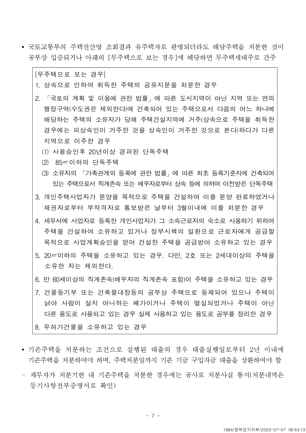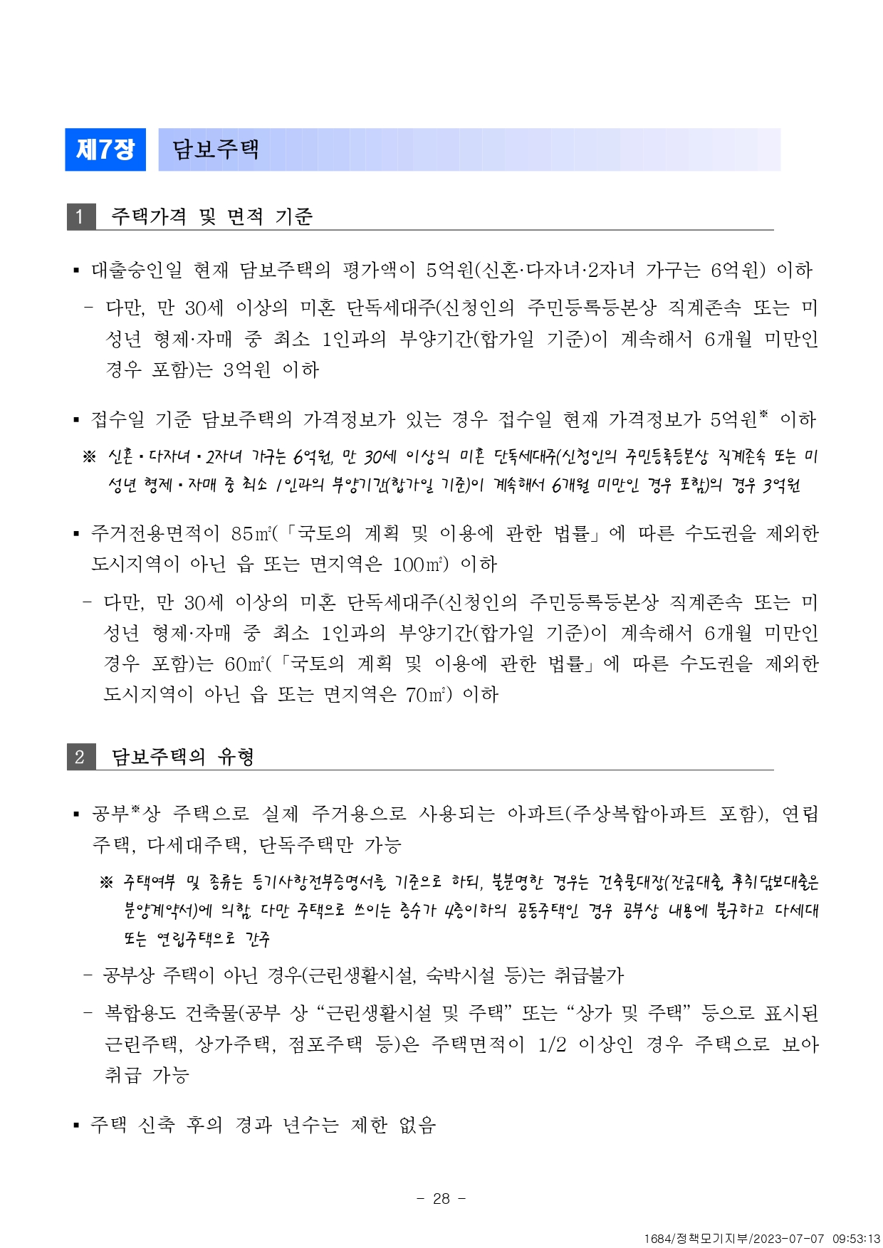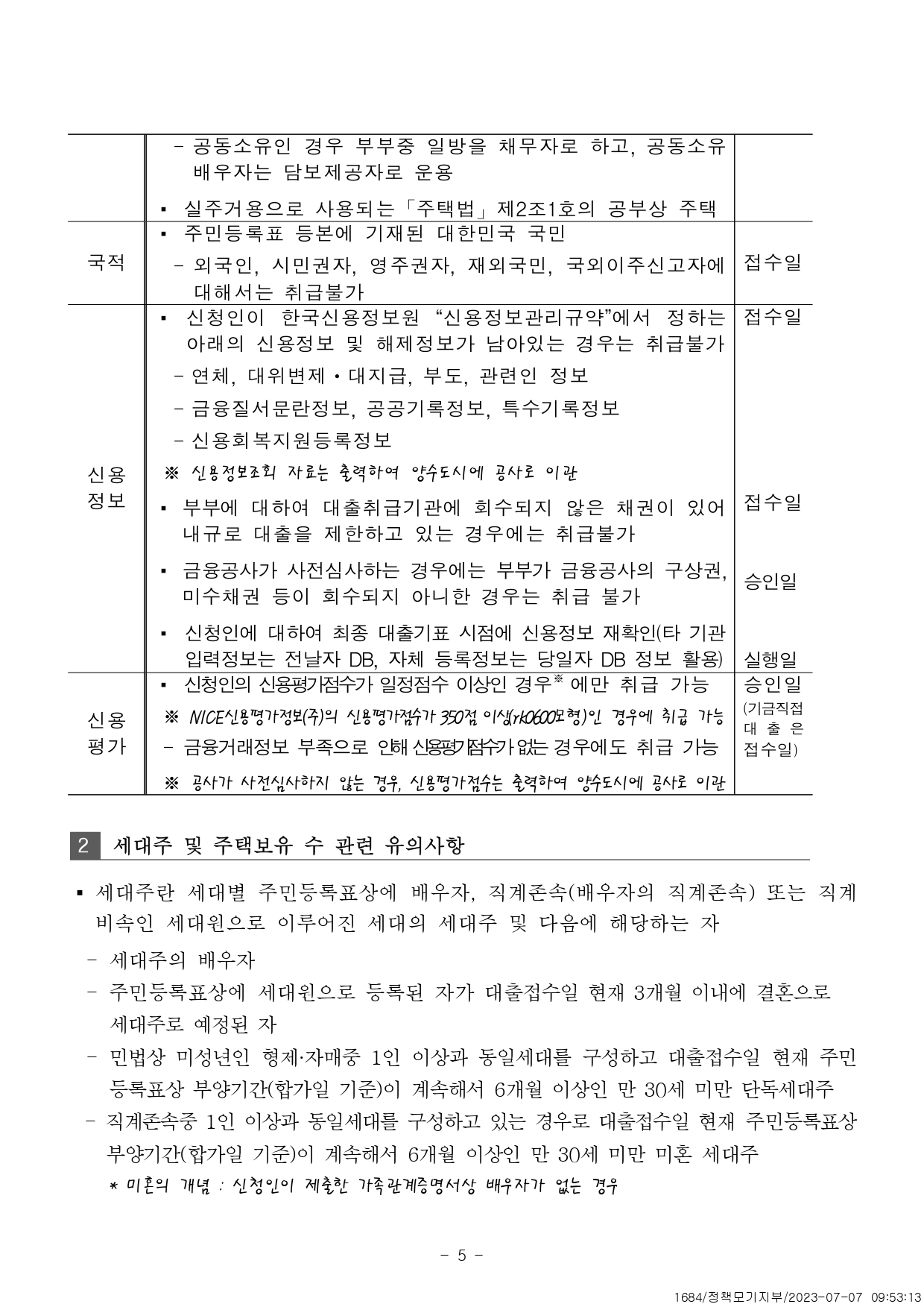 - 5억원(신혼 · 2자녀 이상 가구 6억원) 이하 공부상 주택