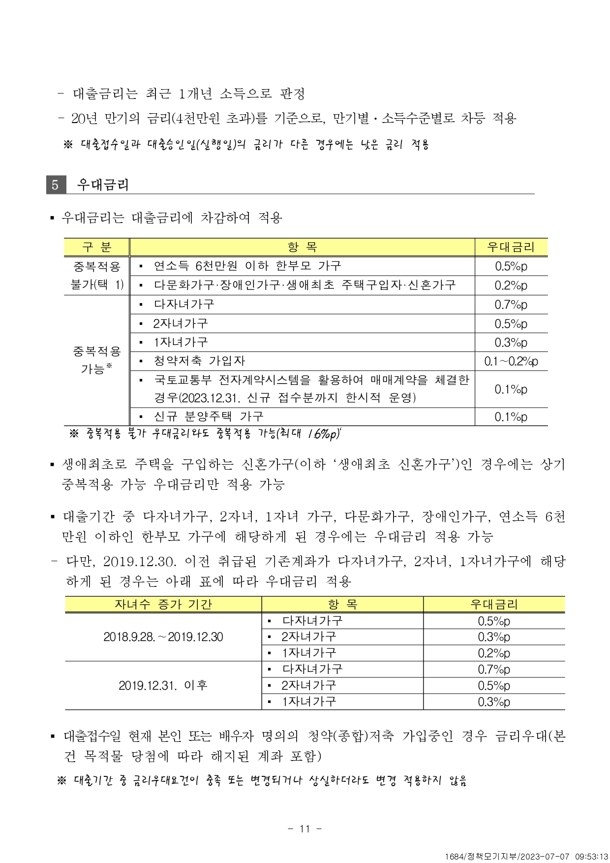 - (생애최초, 신혼, 2자녀 이상의 경우 7천만원)