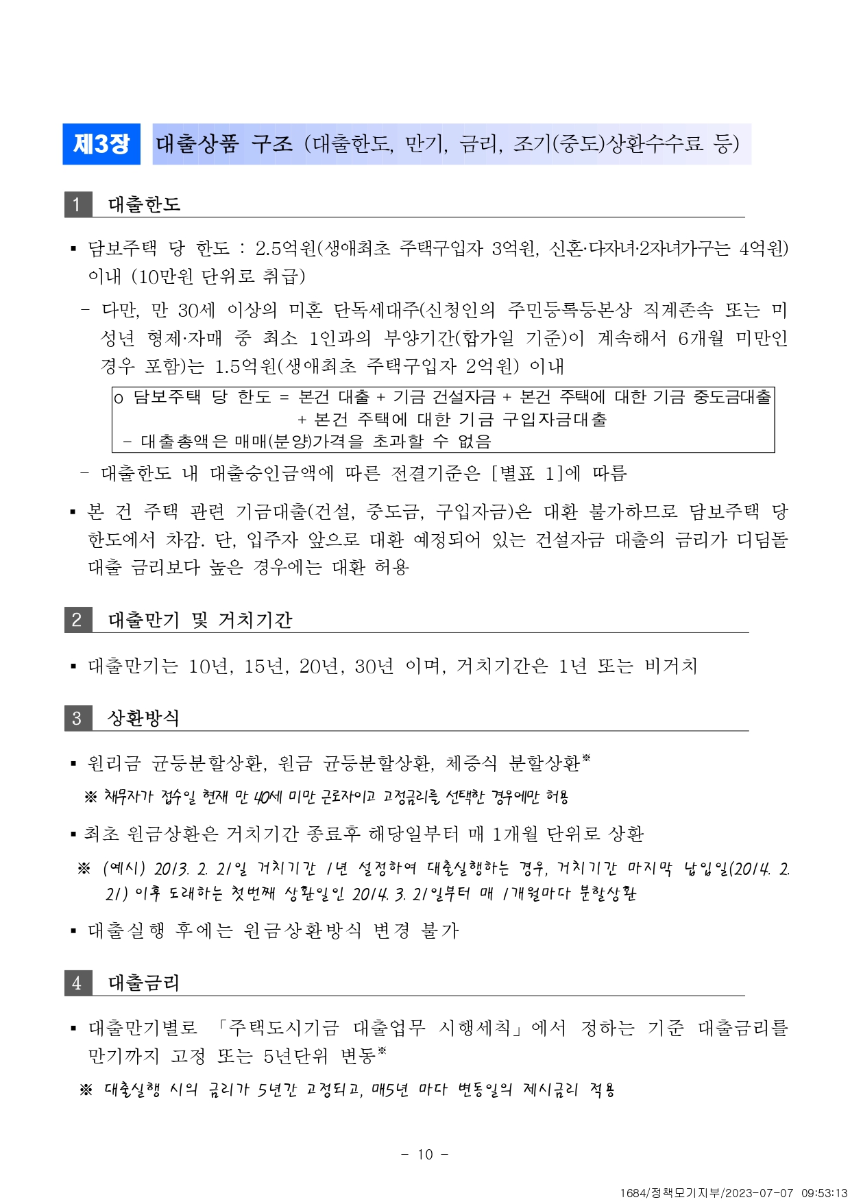 - 대출만기 10년, 15년, 20년, 30년(거치기간은 1년 또는 비거치)