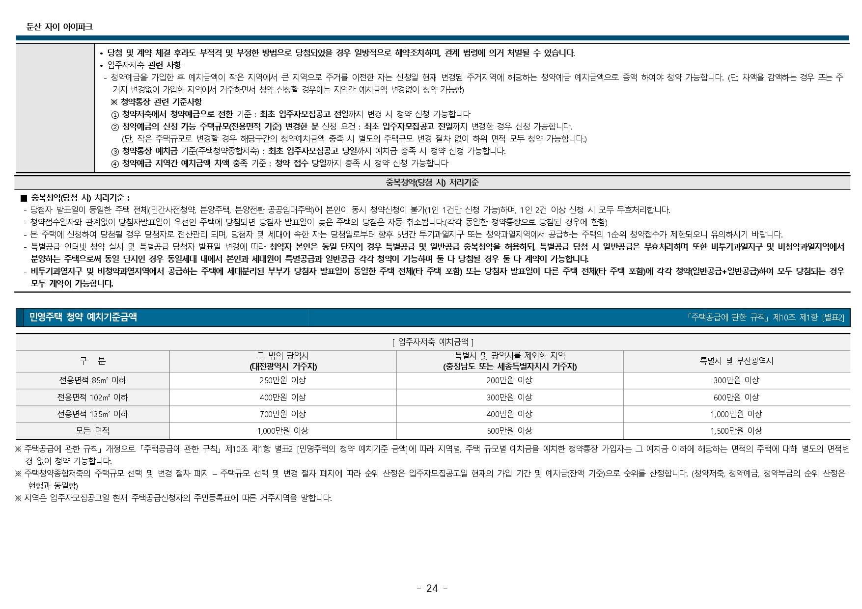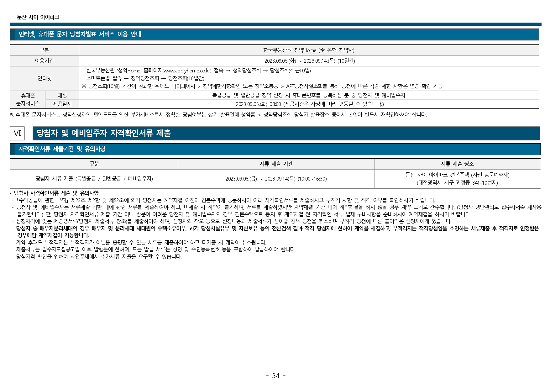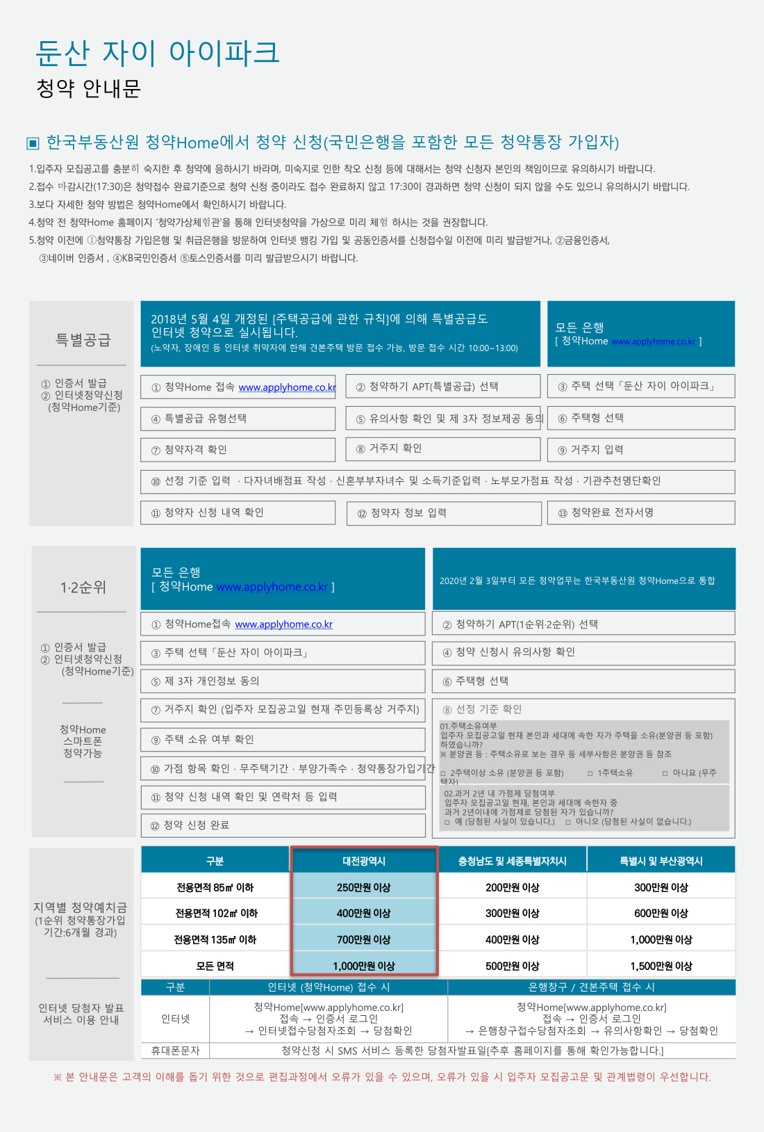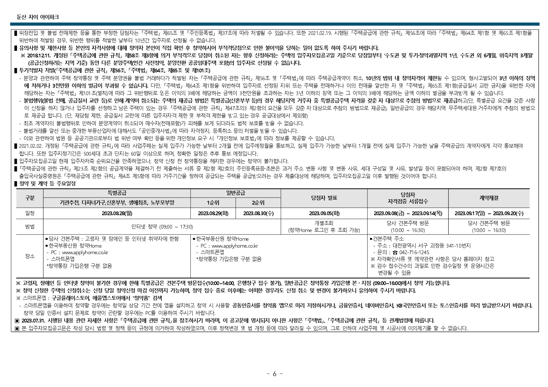 둔산 자이 아이파크 청약 및 입주자 모집공고입니다.