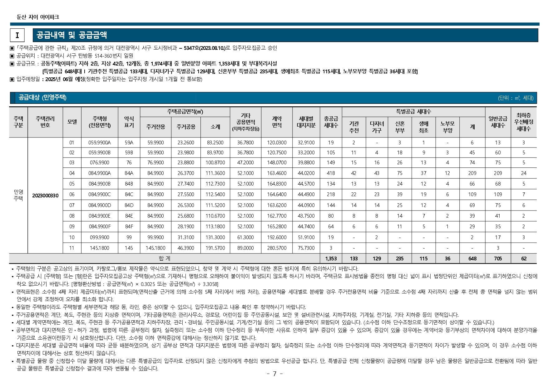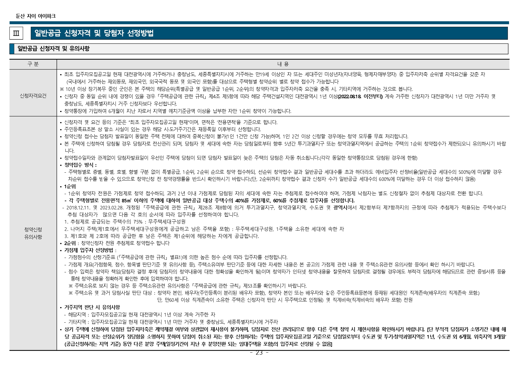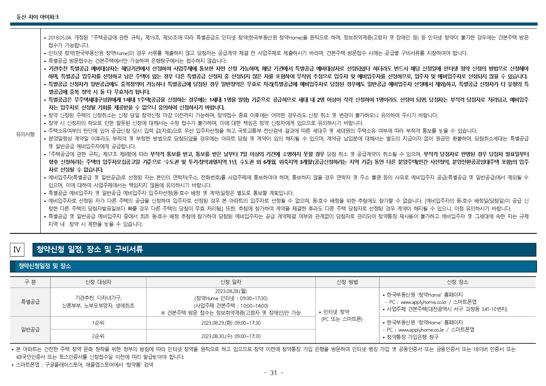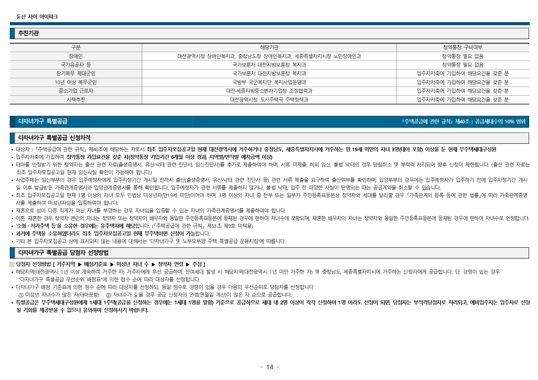 둔산 자이 아이파크 청약 및 입주자 모집공고입니다.