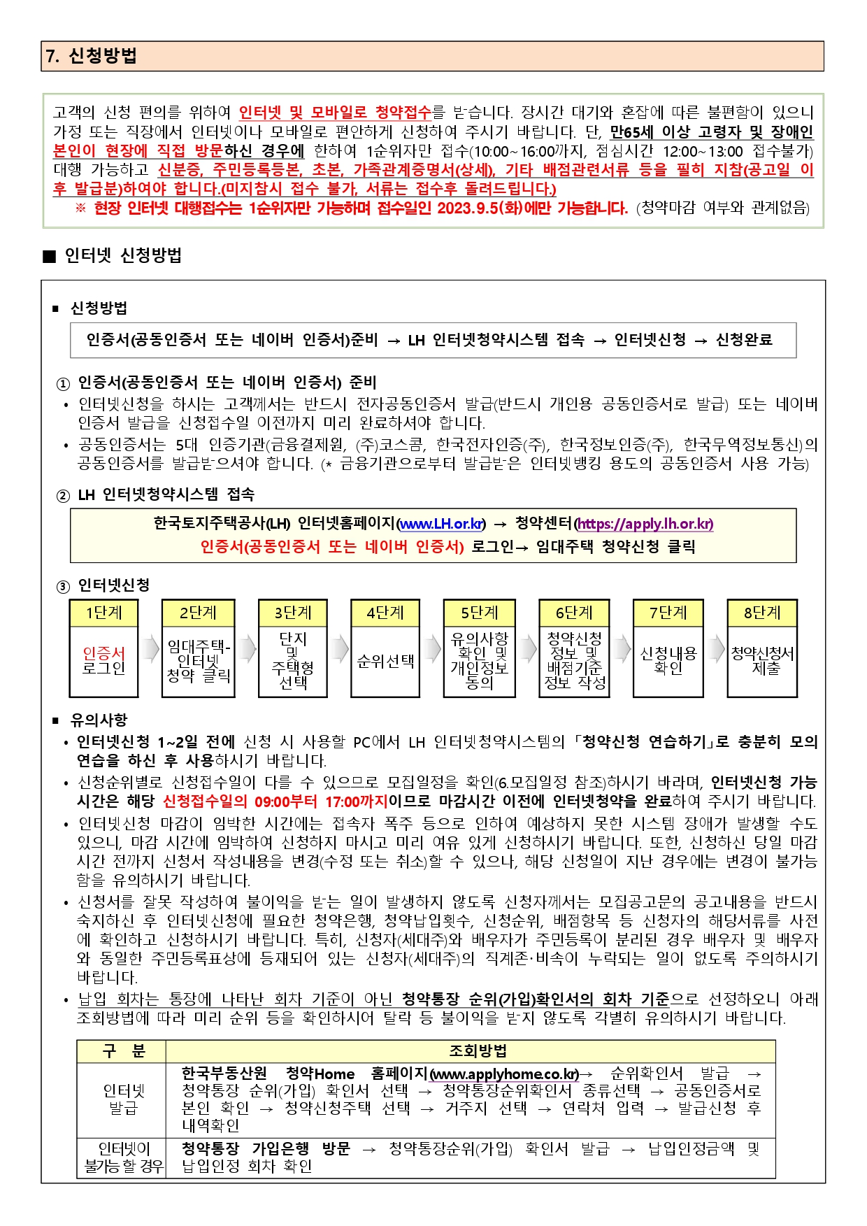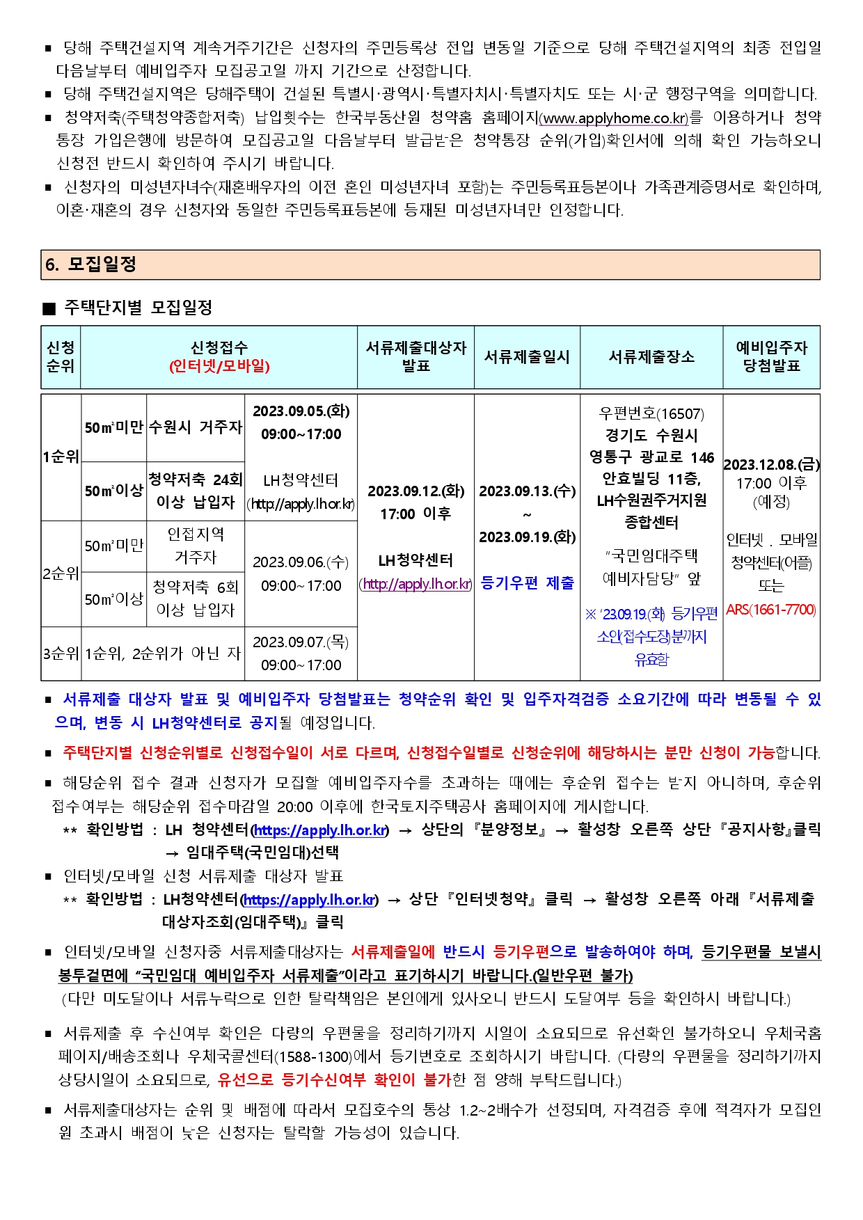 ▪ 순위별로 청약일자가 지정된 경우 반드시 해당순위 날짜에 신청하여야 하며 다른 순위 날짜에 접수시에는 모두 부적격 처리됩니다.(예를 들면 1순위자가 1순위 접수일인 5일에 접수하지 않고 2순위 접수일인 6일에 또는 3순위 접수일인 7일에 접수시 부적격 처리)