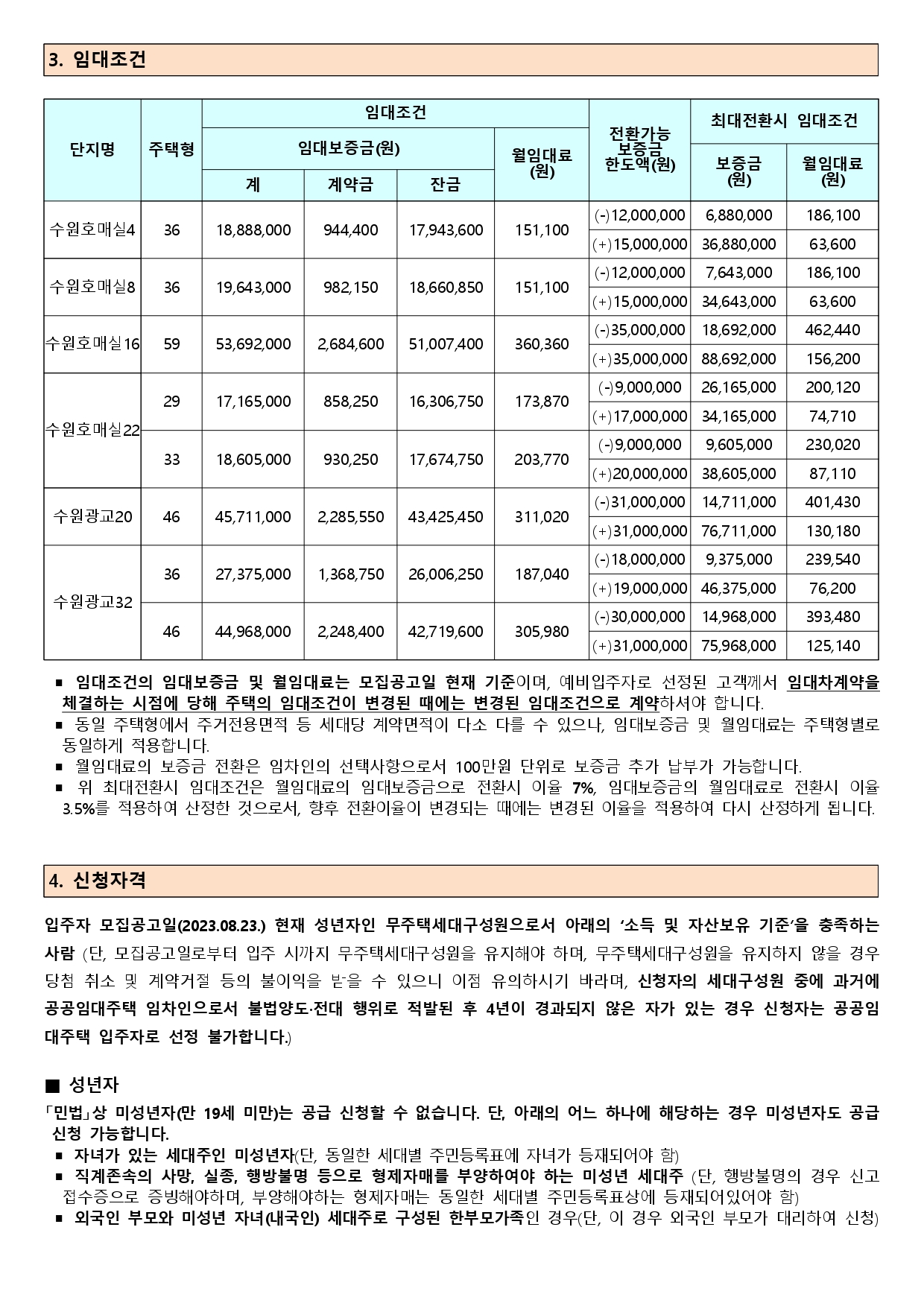 ▪ 이 주택의 예비입주자 모집공고일은 2023.08.23(수)이며, 이는 입주자격과 예비입주자 선정과정에서 경쟁이 있을 때 적용하는 순위 및 배점의 판단 기준일이 됩니다.
