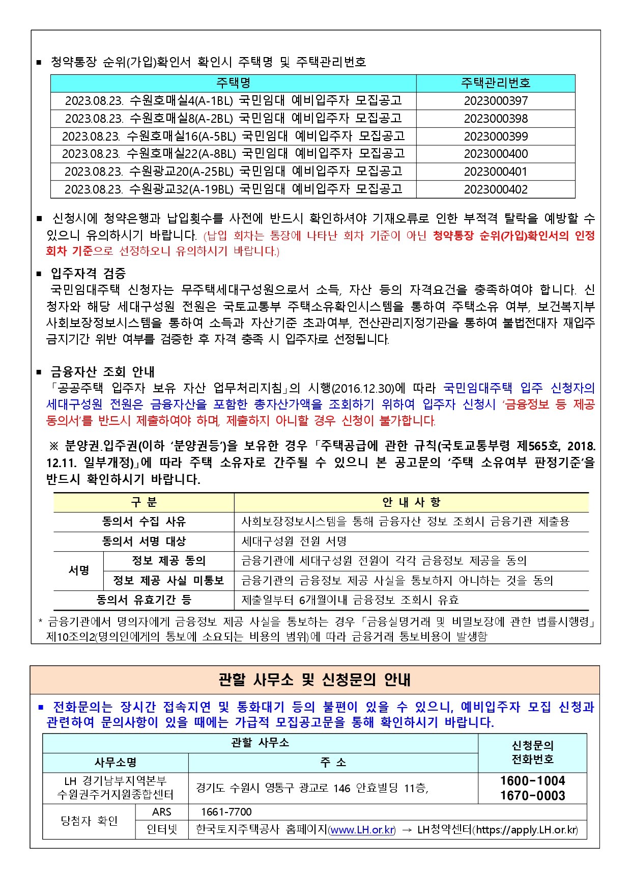 수원시 지역 국민임대주택 예비입주자 모집 공고 자세한 내용은 다음과 같습니다.