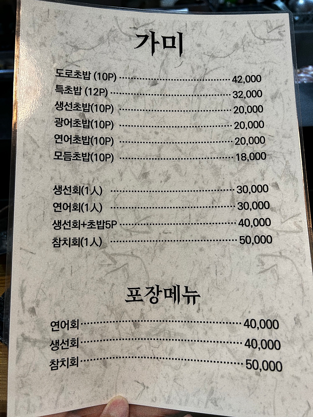 도로초밥은 가격대가 꽤 있다.