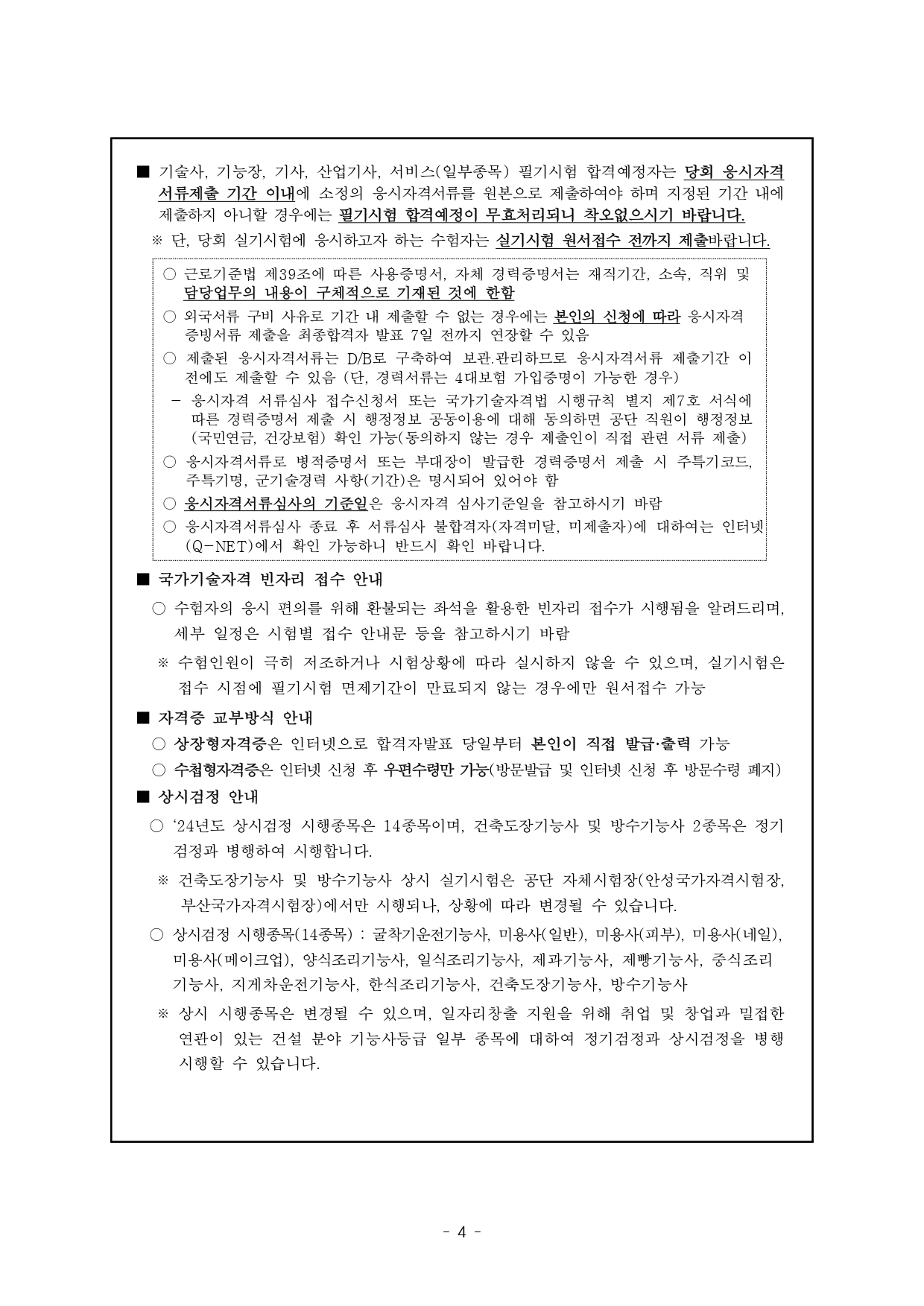 2024년도 국가기술자격검정 시행계획을 다음과 같이 공고합니다.