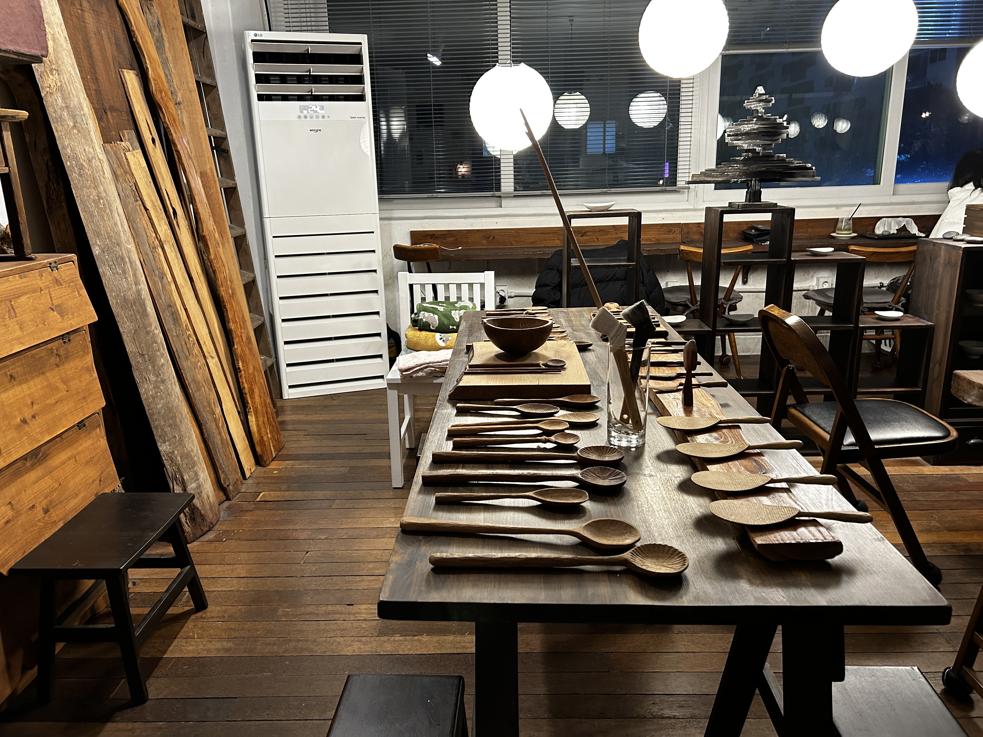 목재로 꾸민, 독특한 분위기의 인테리어가 눈에 띈다.