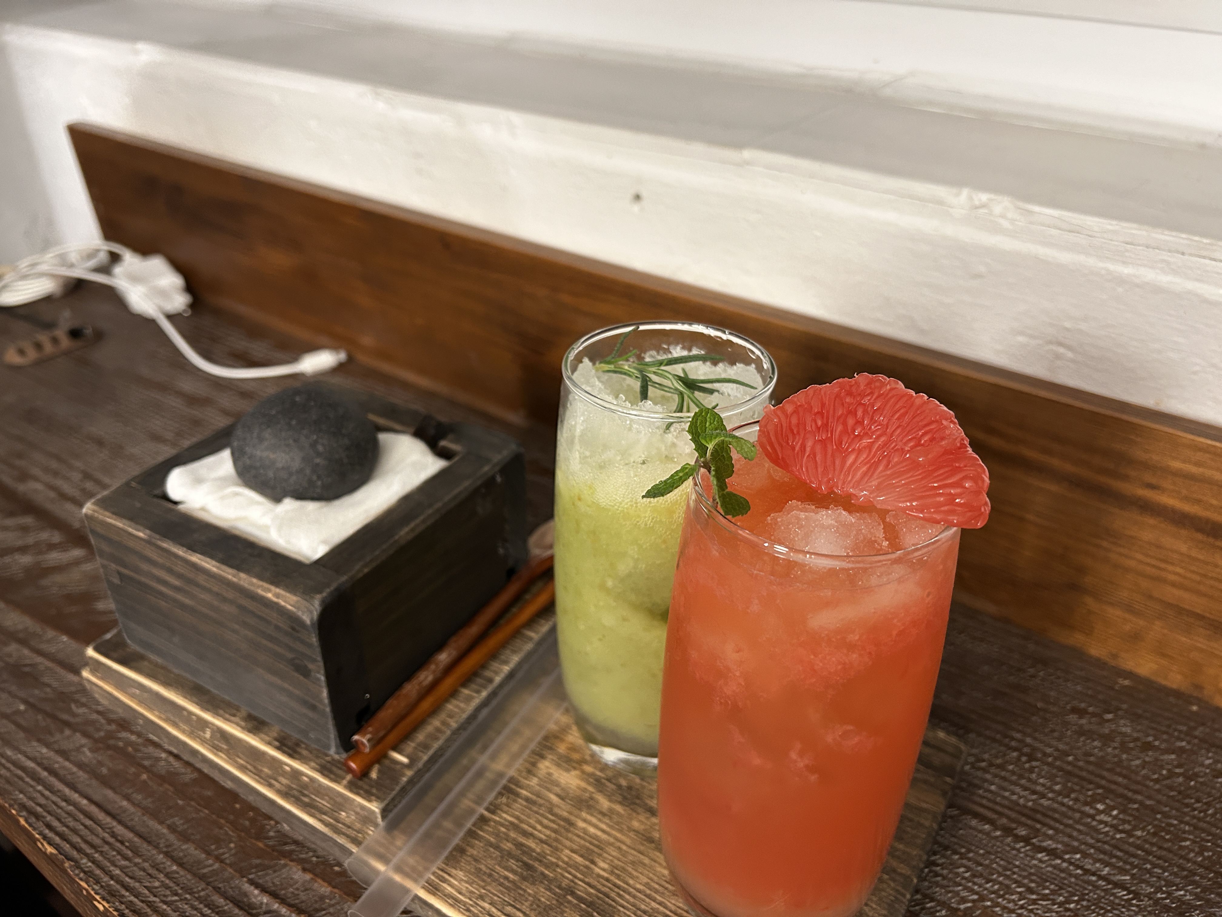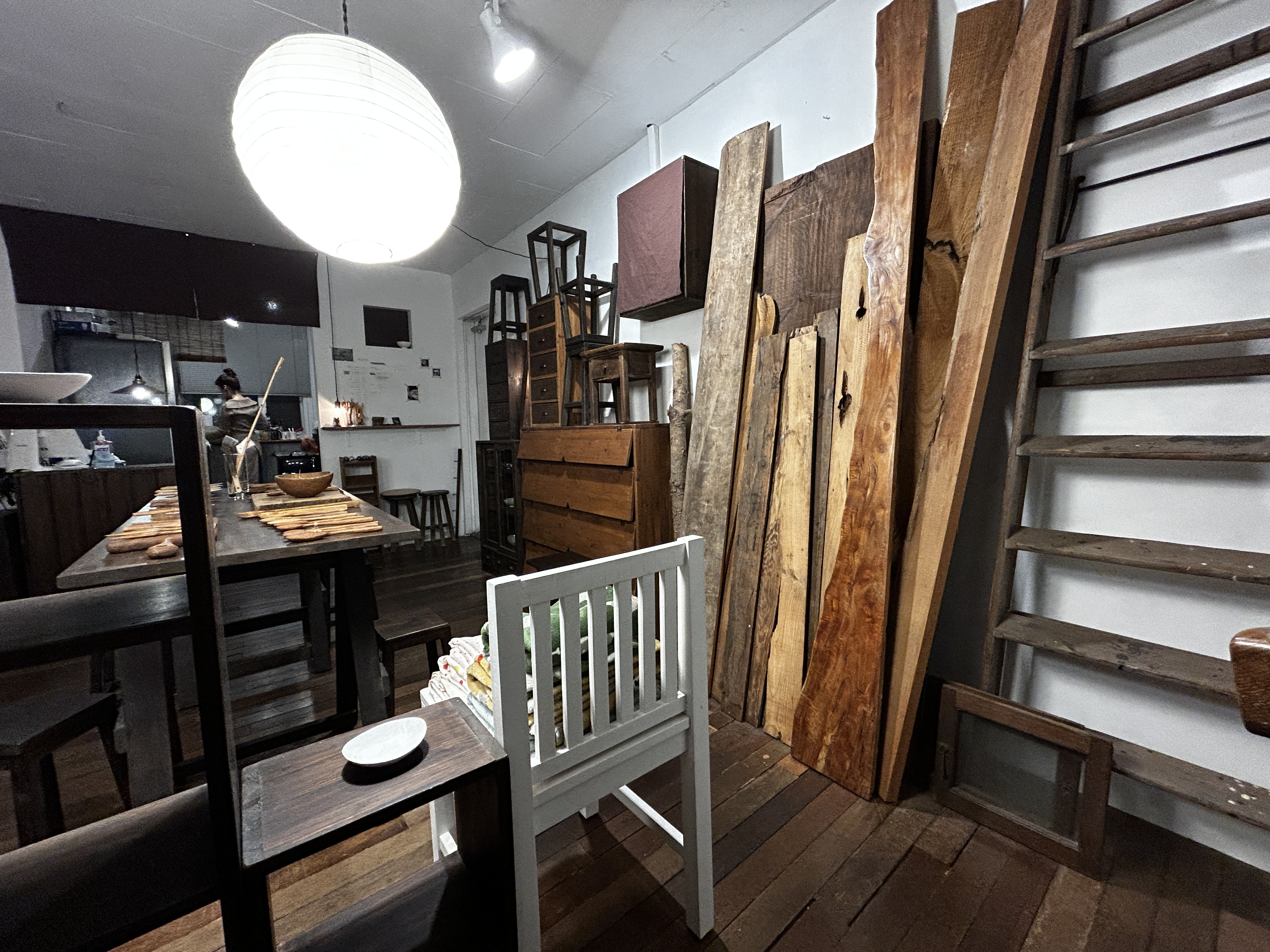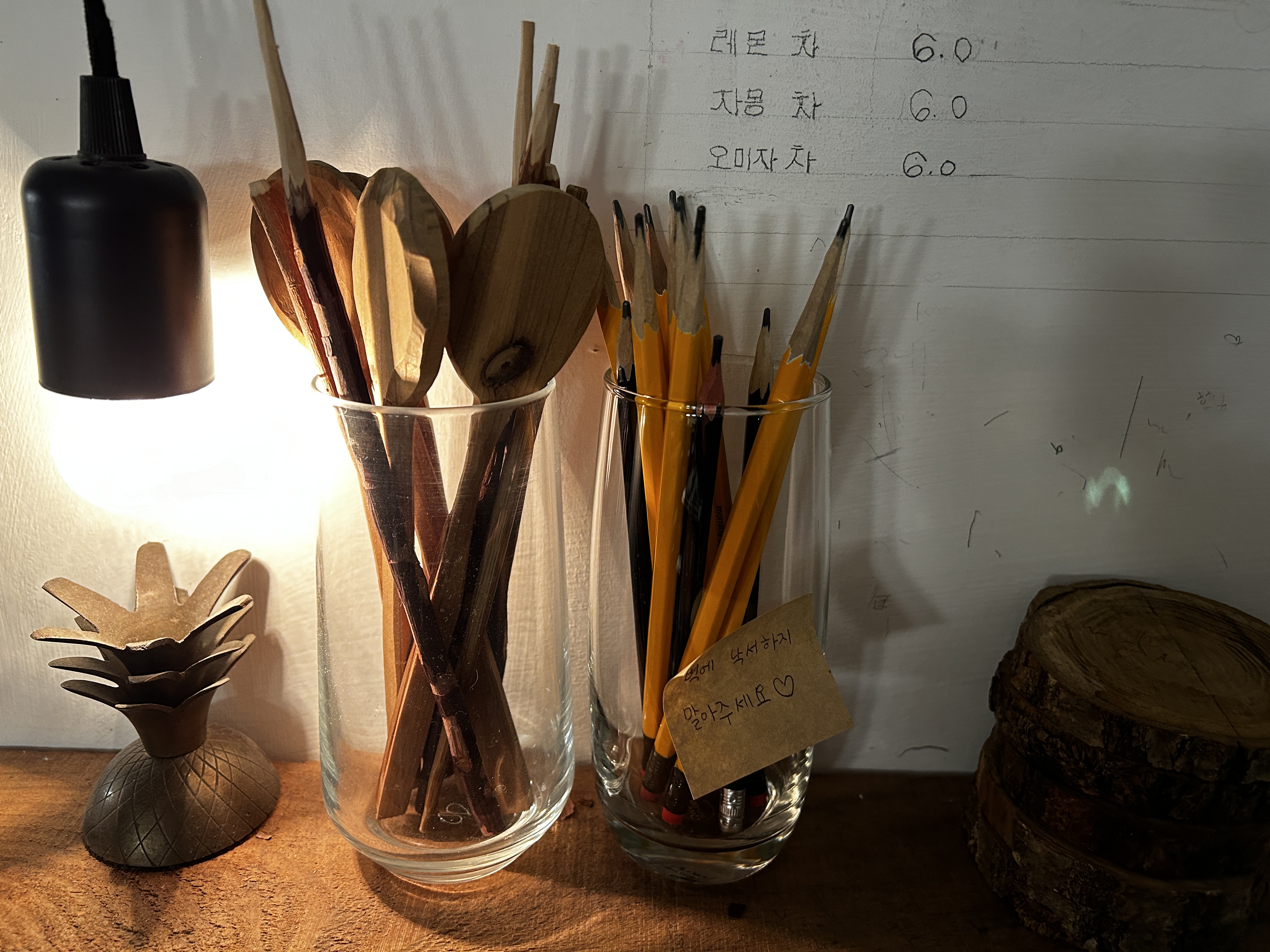 목재로 꾸민, 독특한 분위기의 인테리어가 눈에 띈다.