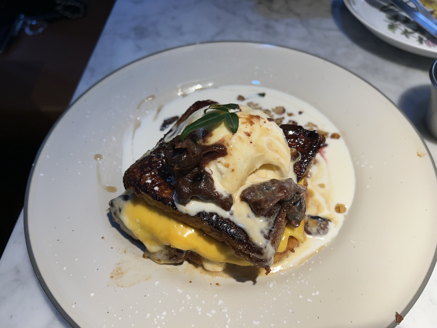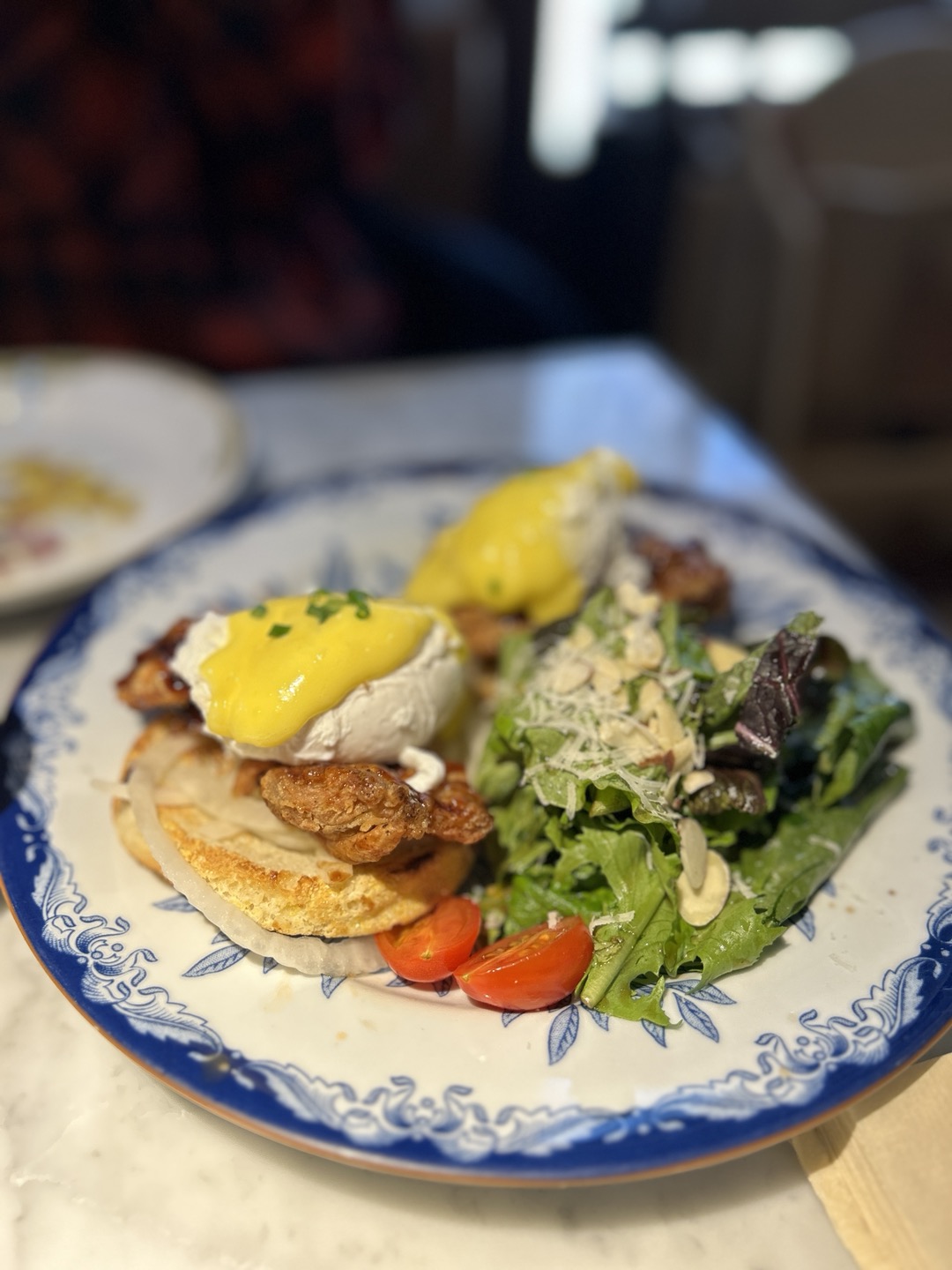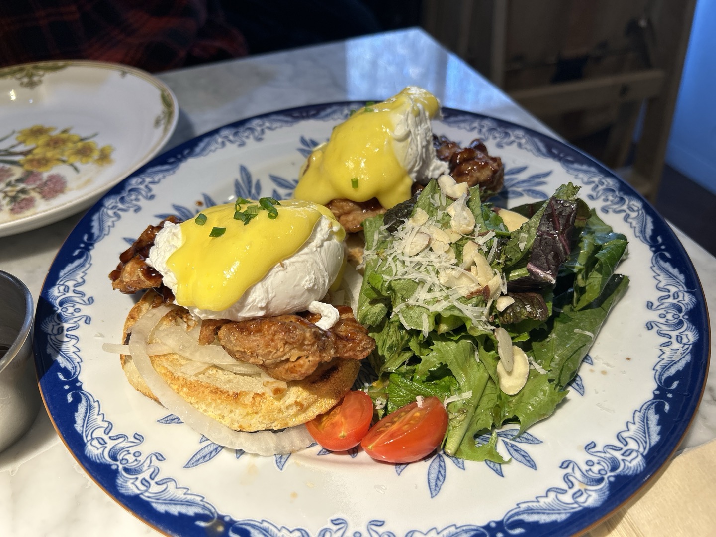닭다리살 에그베네딕트와 블루베리 멜팅치즈 프렌치 토스트를 시켰다.