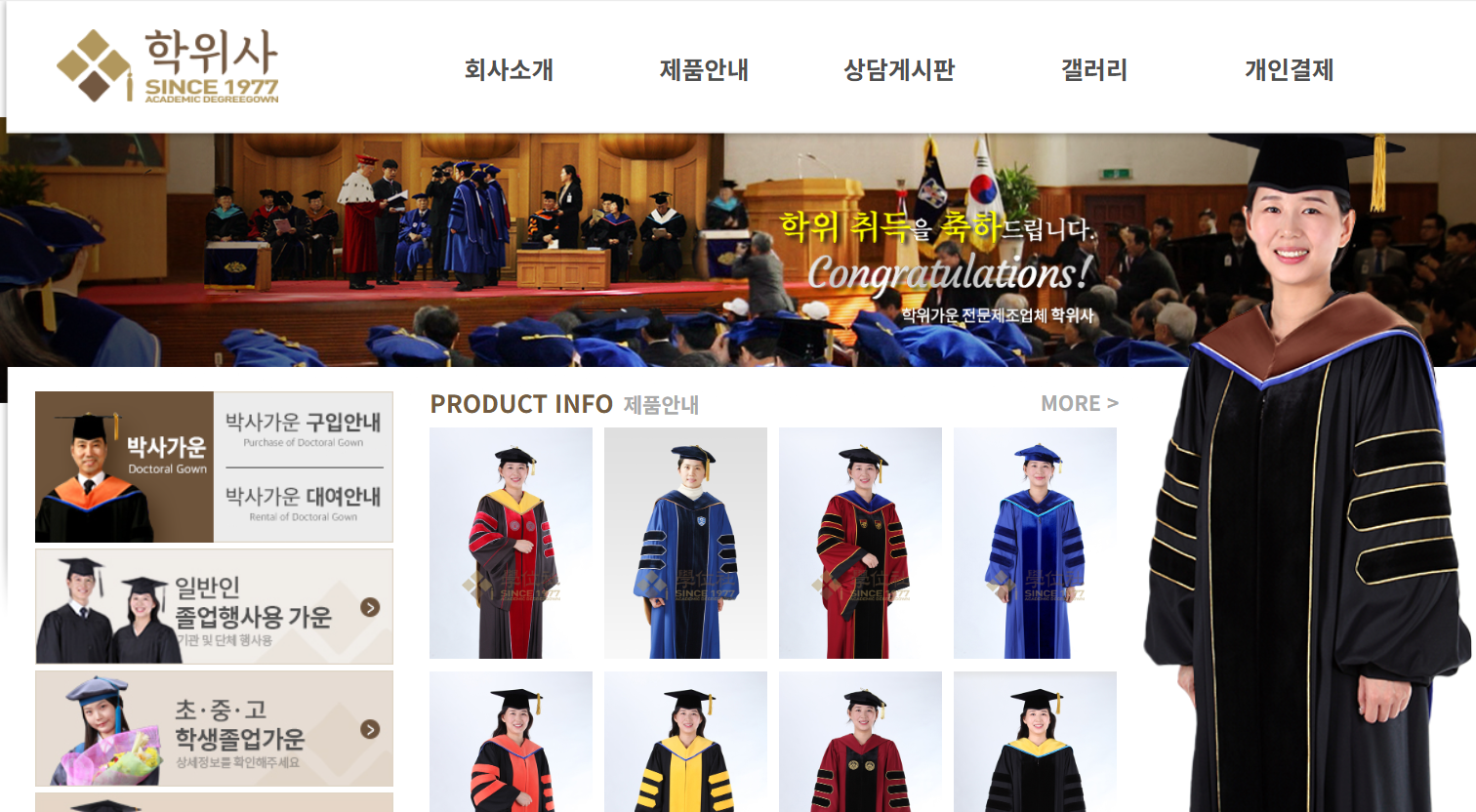학교에서 몇군데 알려준 박사가운 대여점 중에서 학위사에 문의했다.