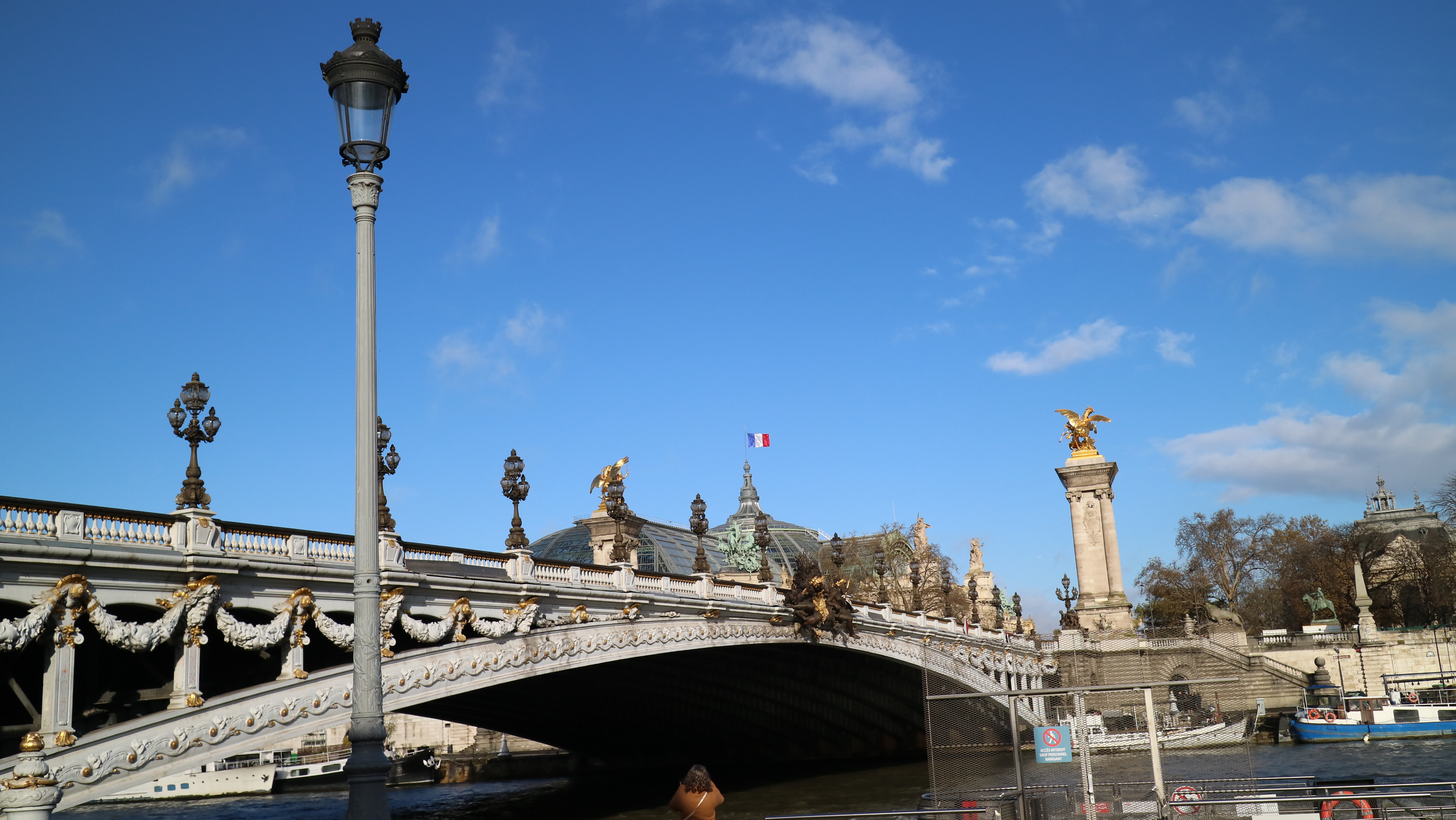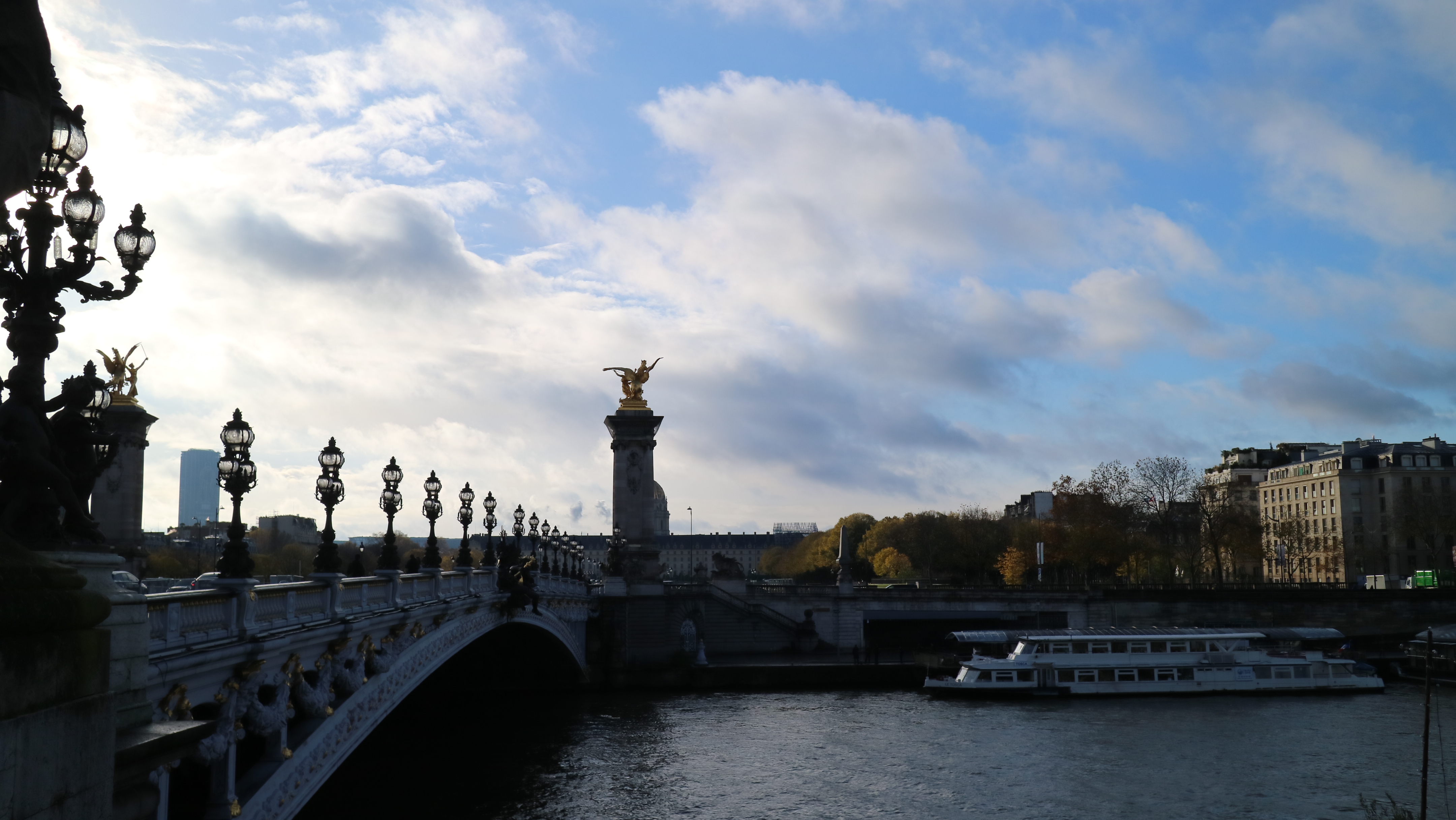 알렉상드르 3세 다리를 찾았다. 다리 밑으로는 센강이 유유자적 흐르고 있다. 유람선이 11월의 햇살을 머금고 유랑하고 있었다.