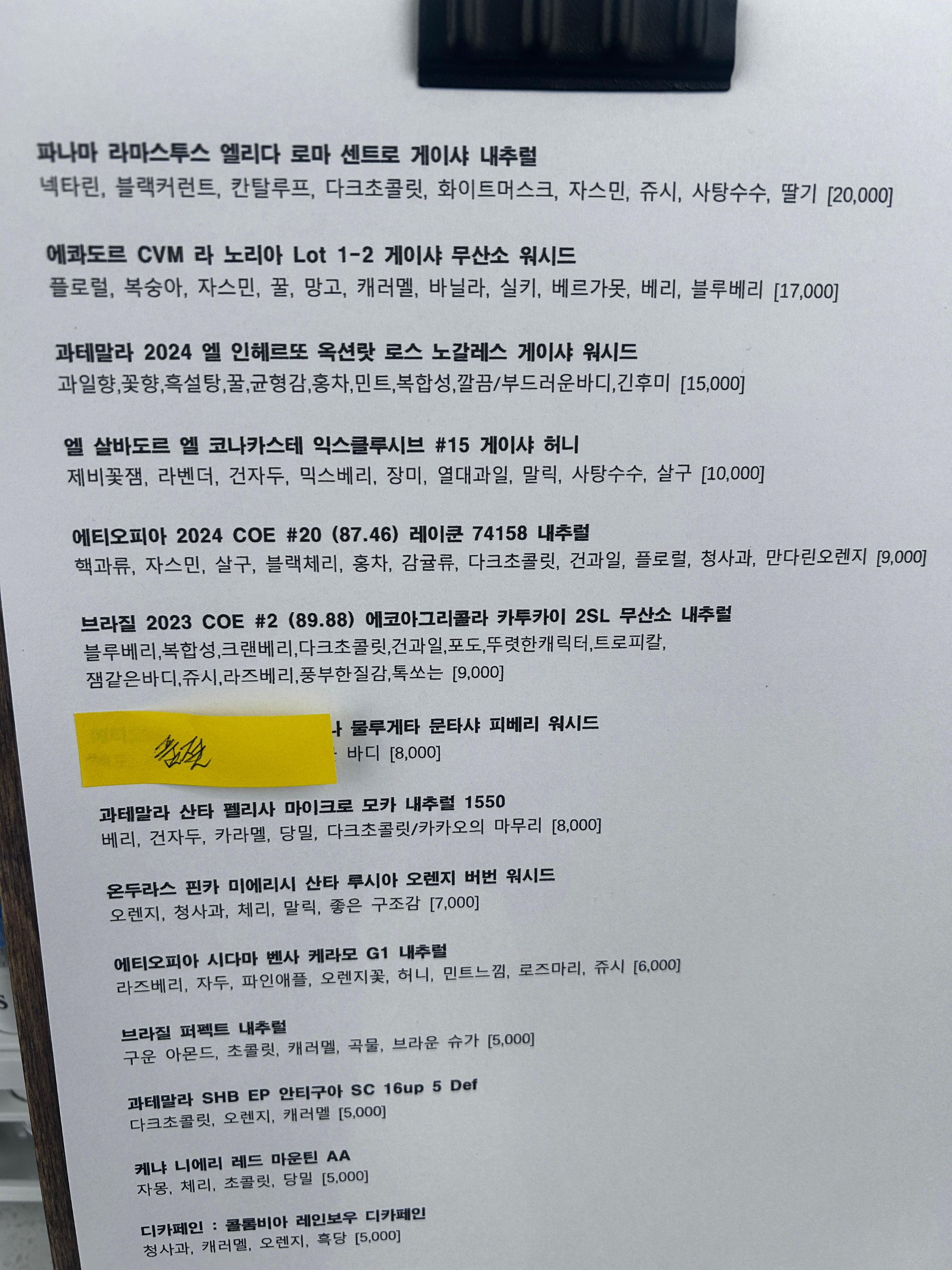 바날라 라떼를 먹으려더가 긴 이름이 적힌 드립커피 목록에 눈길이 갔다.