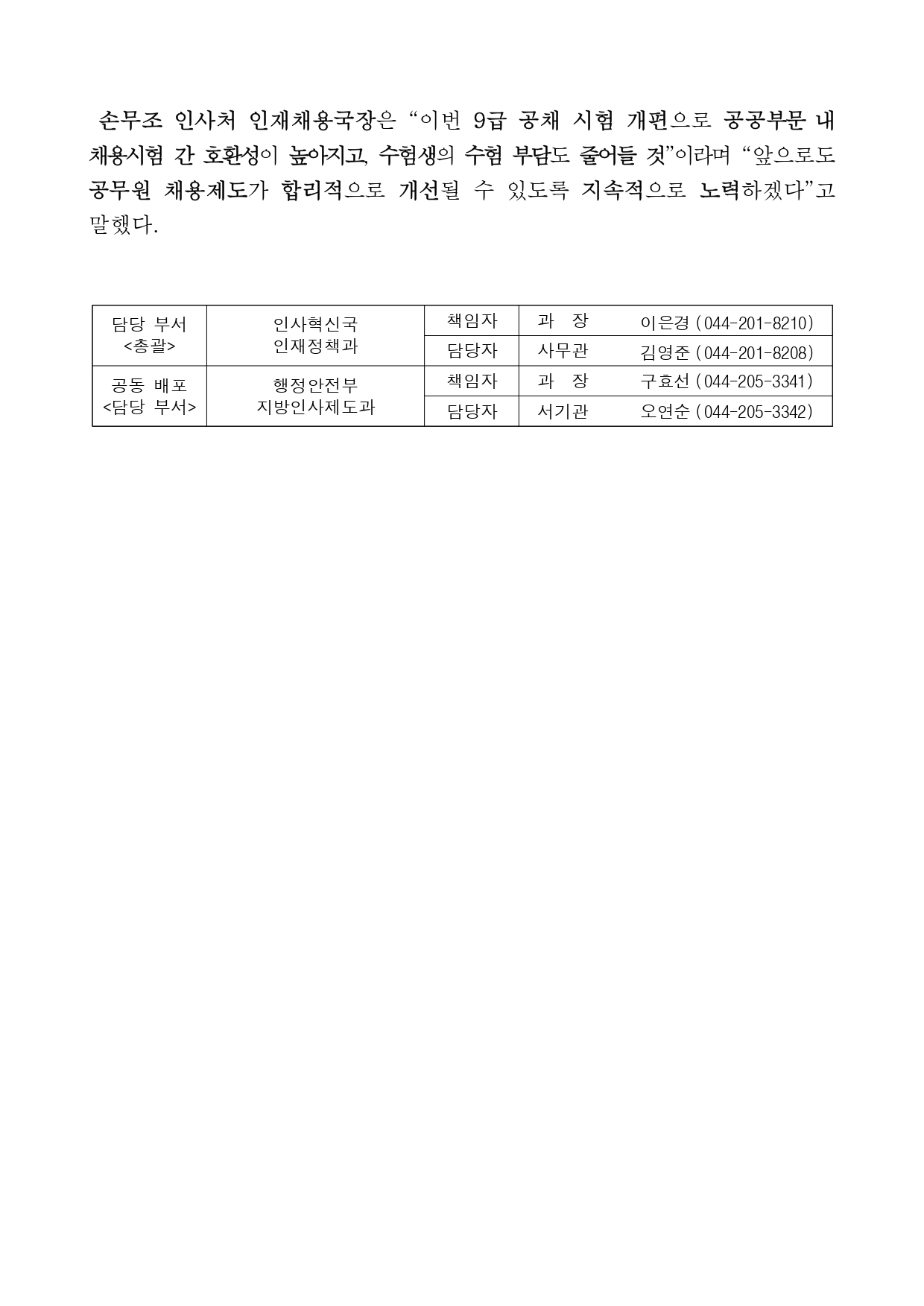 인사혁신처(처장 연원정)와 행정안전부(장관 직무대행 김민재)는 이 같은 내용을 담은 ‘2027년도 9급 공채 시험 개편안’을 2일 공했다.