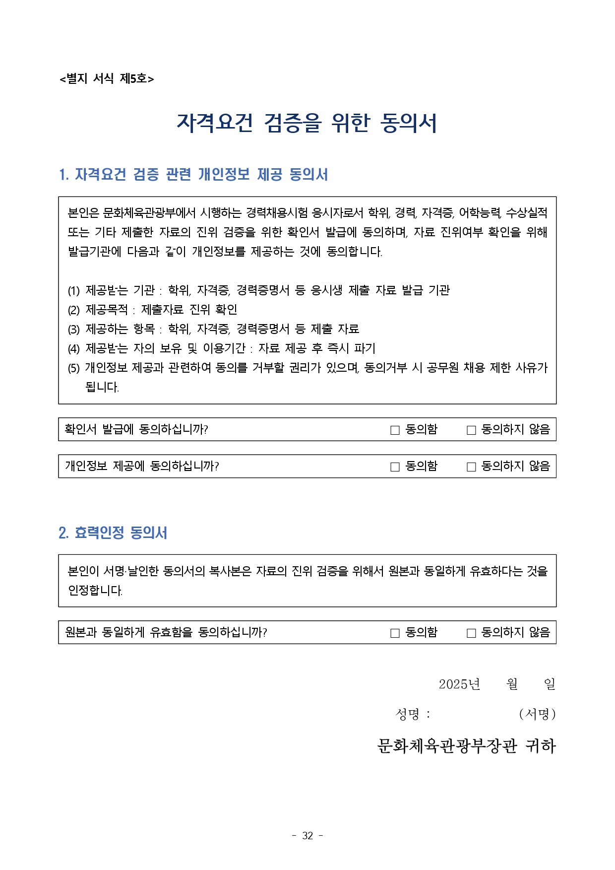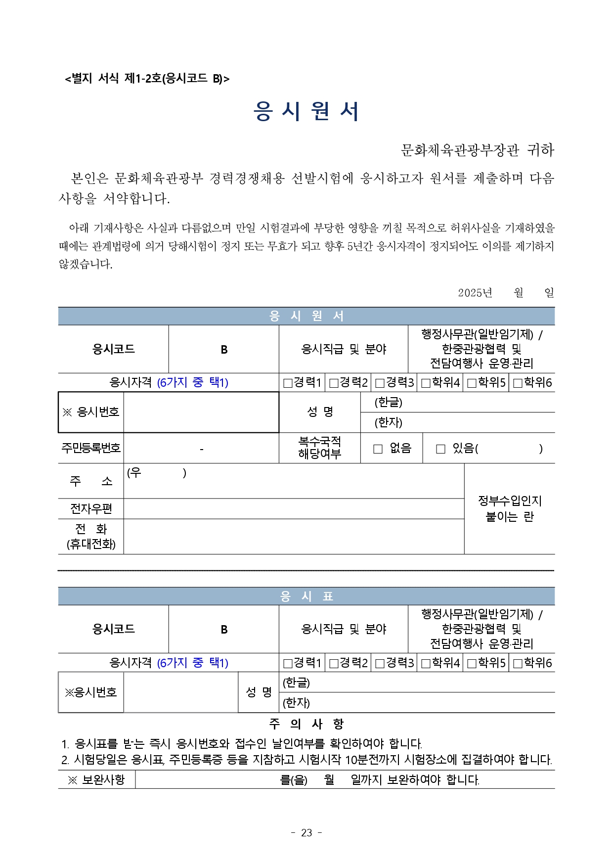 문화체육관광부 공무원 경력경재채용시험 공고
