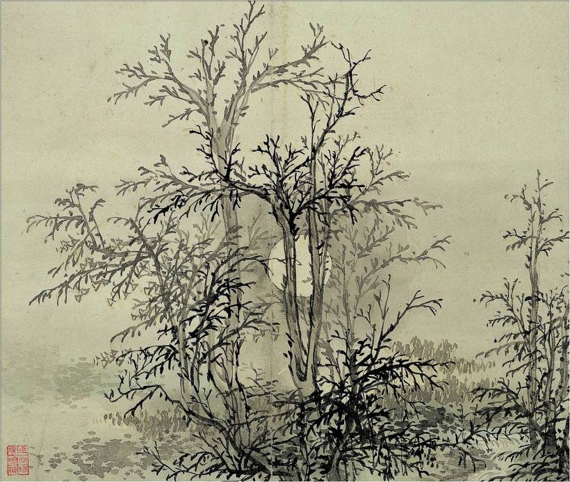이 그림에 묘하게 끌린다. 곰곰히 생각해보니 내 마음을 비추고 있는 듯하다. '의욕'이라는 잎이 많이 떨어졌으나 나뭇가지 너머로 그래도 흰 희망이 비친다. 은은한 의지가 빛난다. 지금 내 마음을 그린다면 꼭 소림명월도다. 쓸쓸한 느낌도 지울 수 없다. 그럼에도 오래도록 들여다보고 있으면 마음이 차분해진다. 김홍도는 어떤 의도로 이 그림을 그렸을까. 황량한 마음에 위로를 건네는 그림이런가.