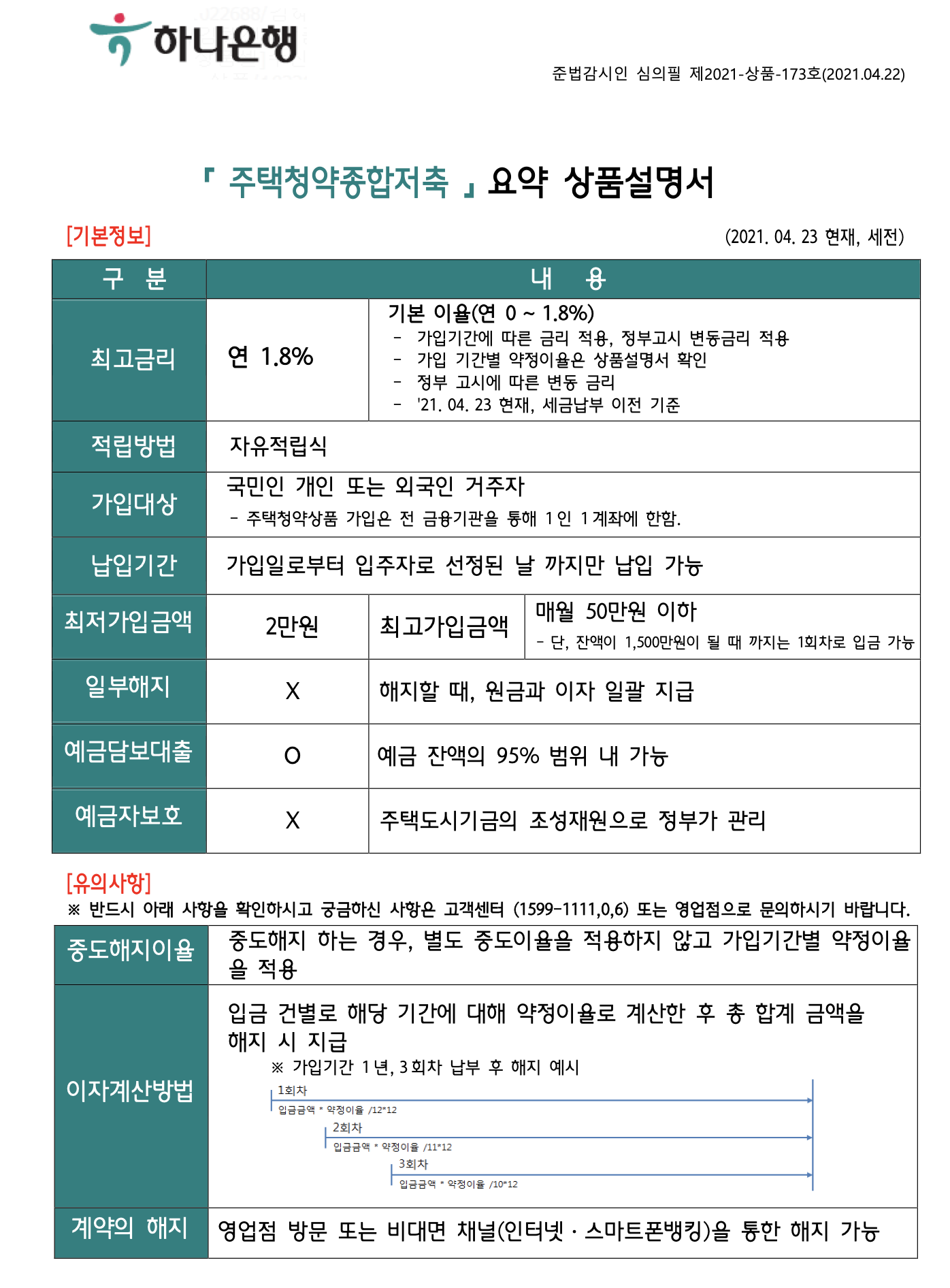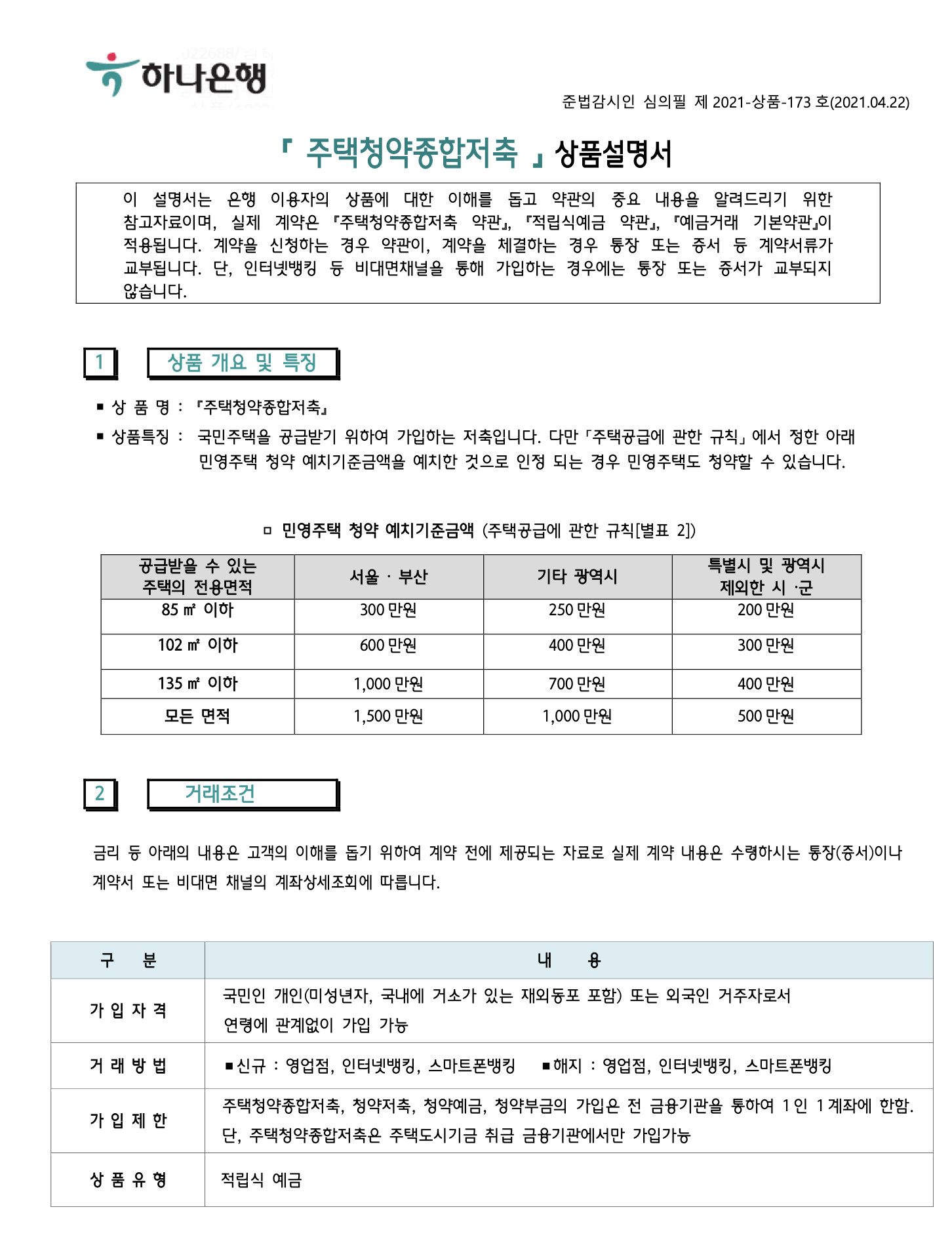 하나은행 주택청약종합저축 설명서 및 가입서류