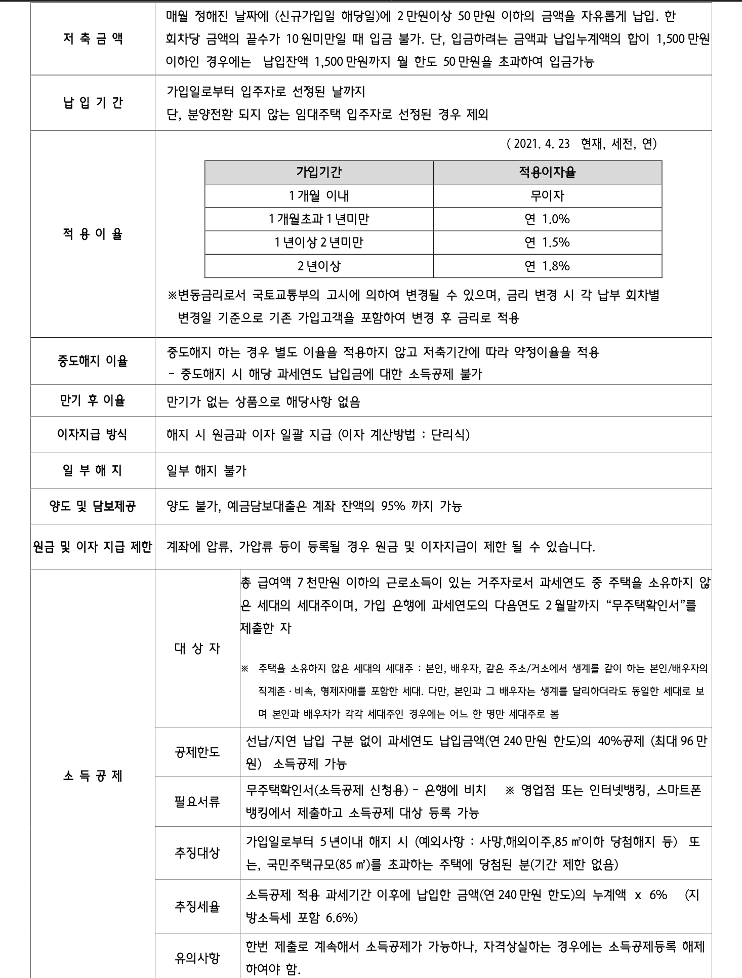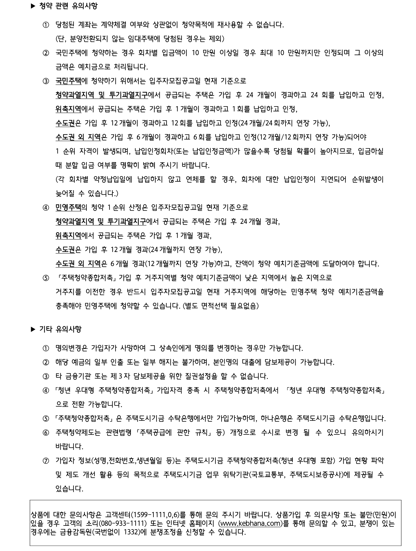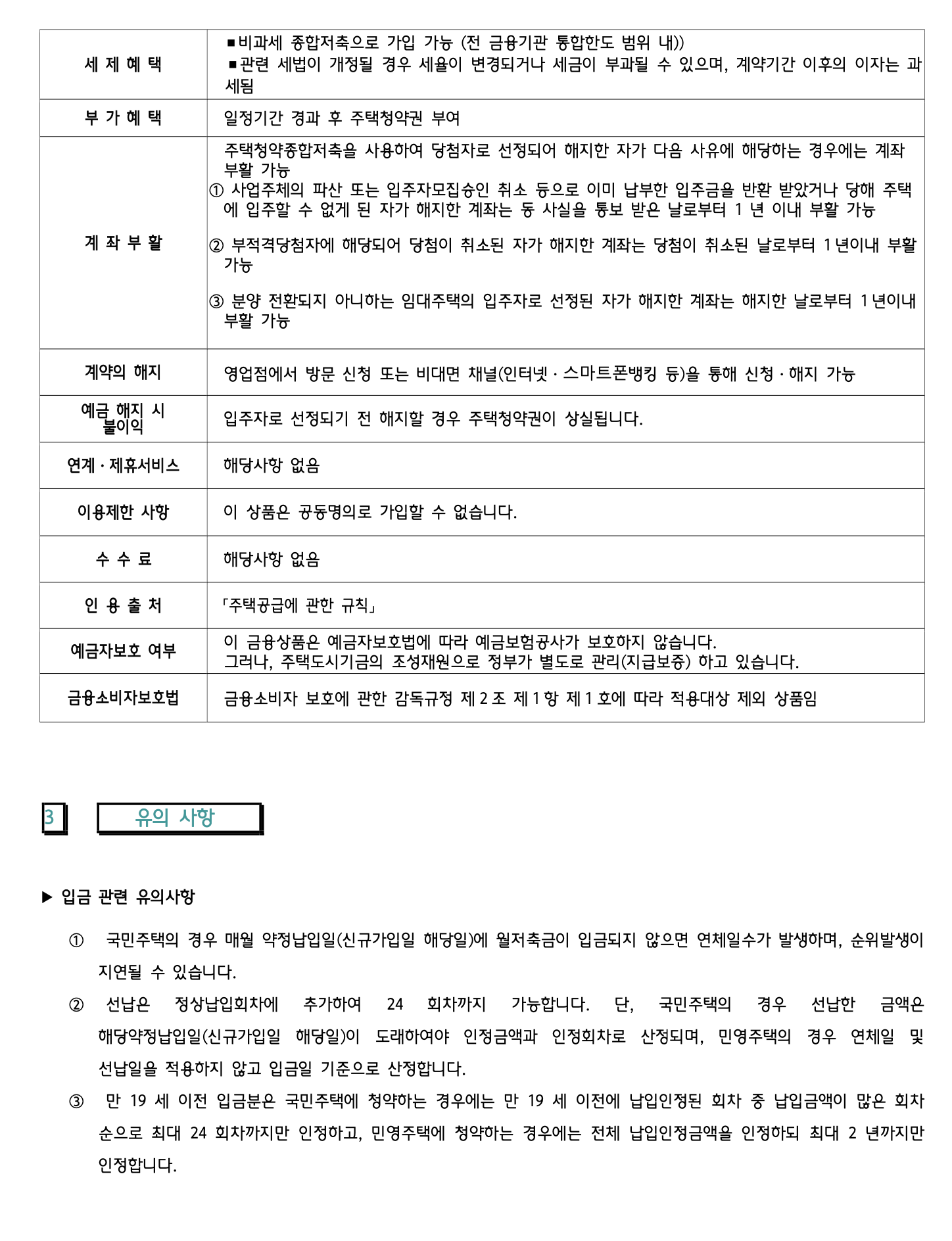 ※ 전 금융기관에 걸쳐 주택청약종합저축, 청약예금, 청약부금, 청약저축 중 1인 1계좌만 가입 가능