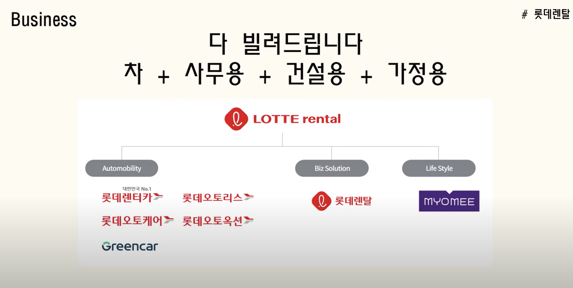 롯데렌탈은 모든 걸(?) 다 빌려주는 회사죠. 홈페이지에 가보니 다음과 같이 설명되어 있습니다.