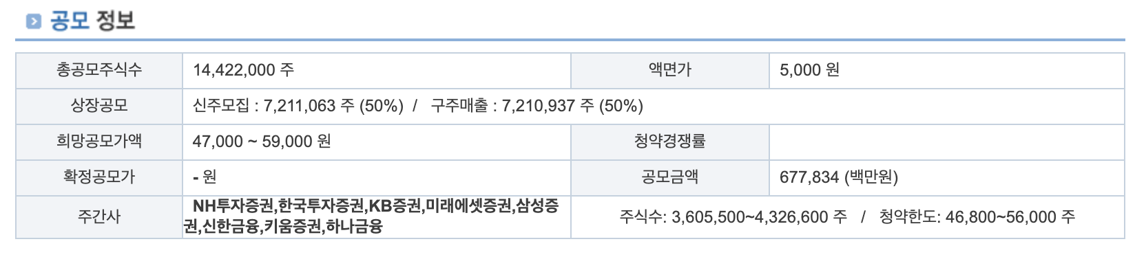 공동주관회사(KB증권㈜), 인수회사(미래에셋증권㈜, 삼성증권㈜, 신한금융투자㈜,