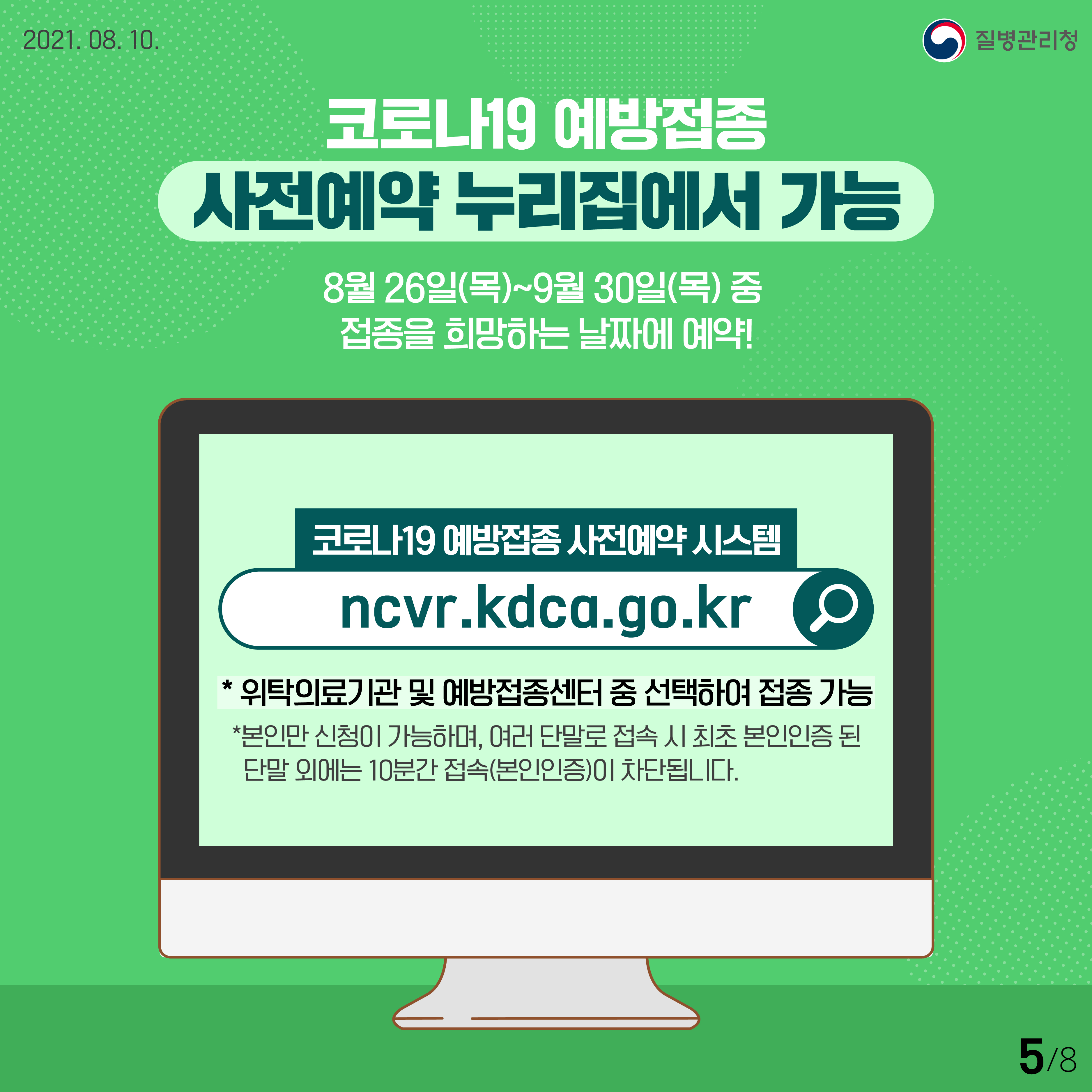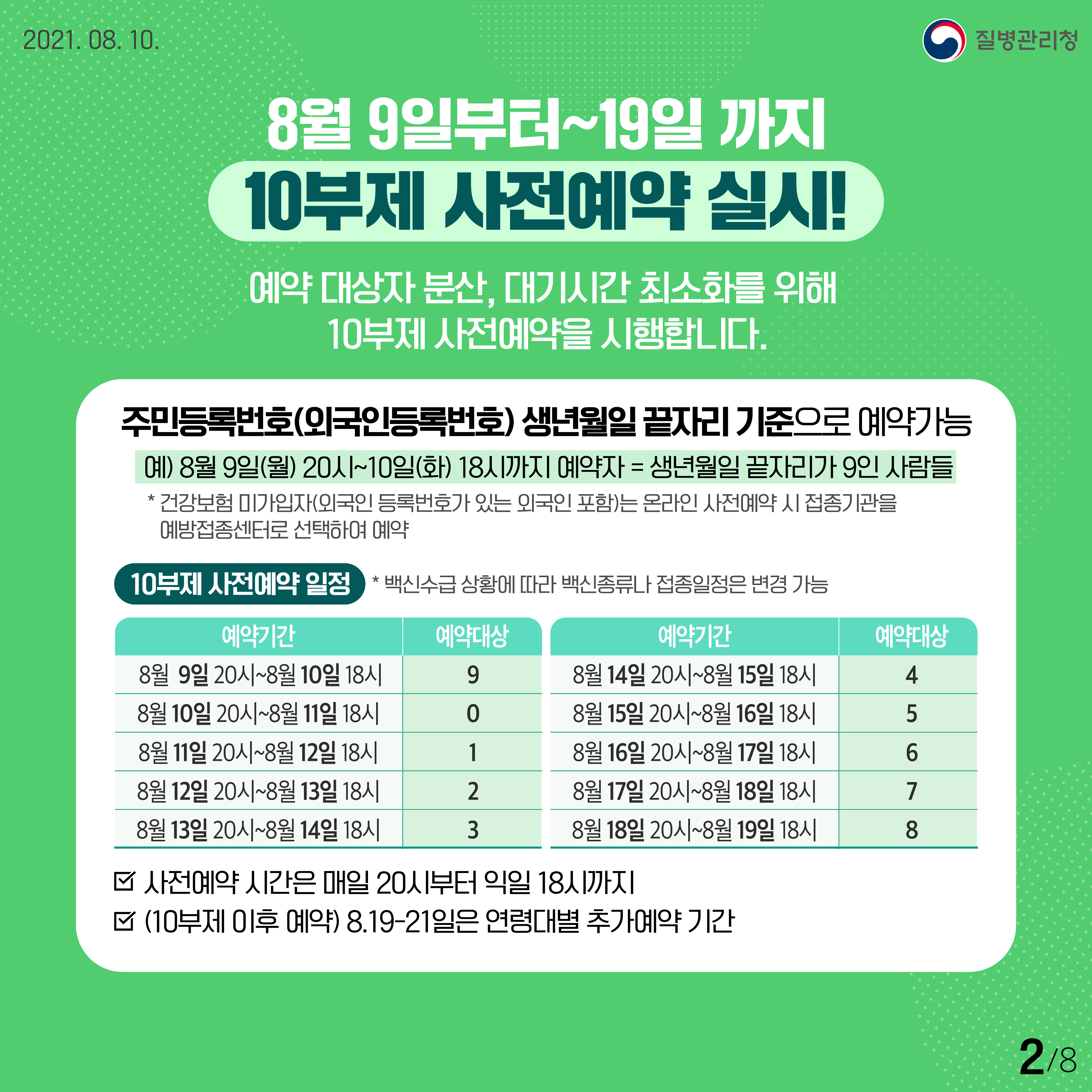 코로나19 사전예약 및 접종기간 안내, 접종신청사이트, 10부제 시행