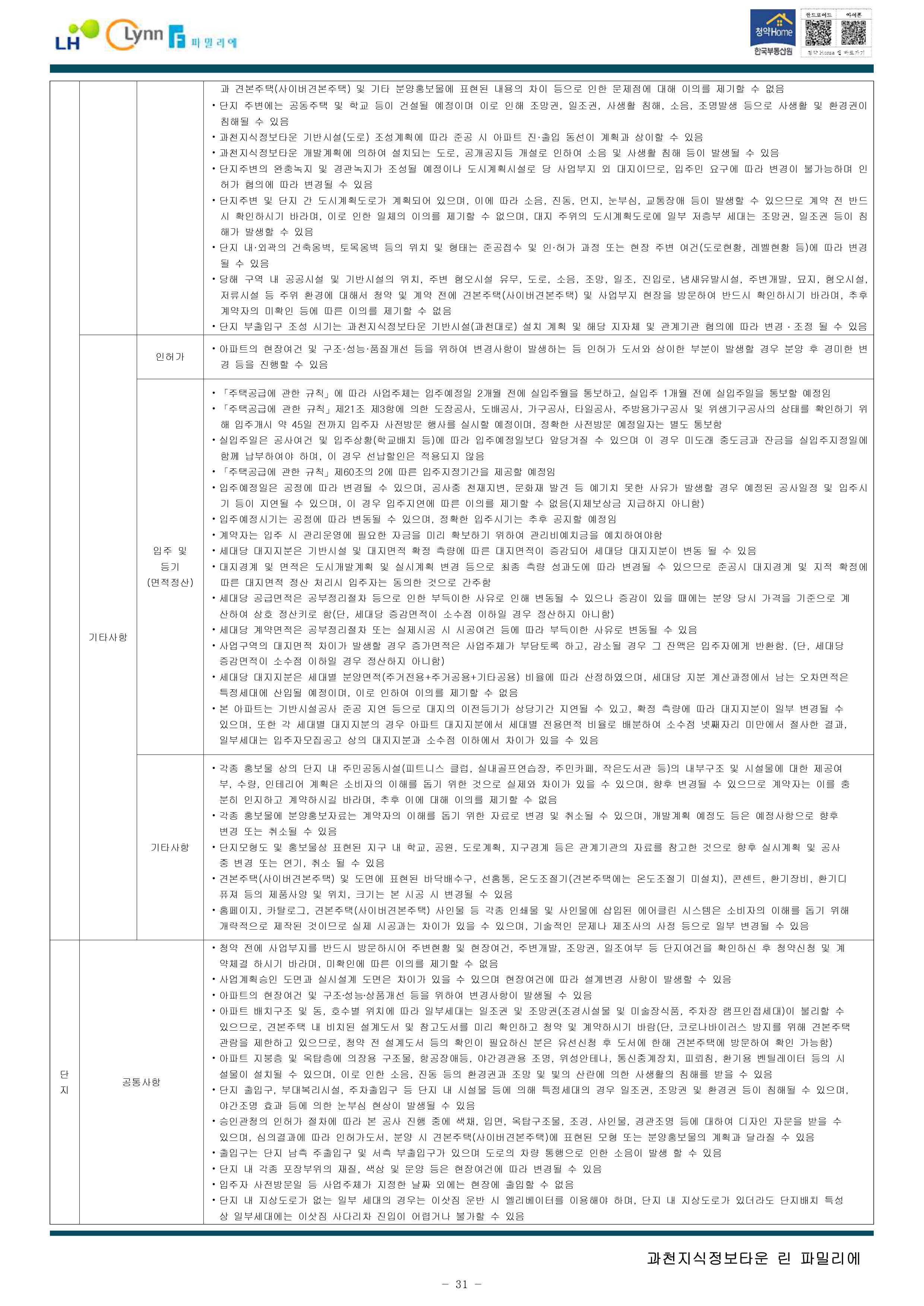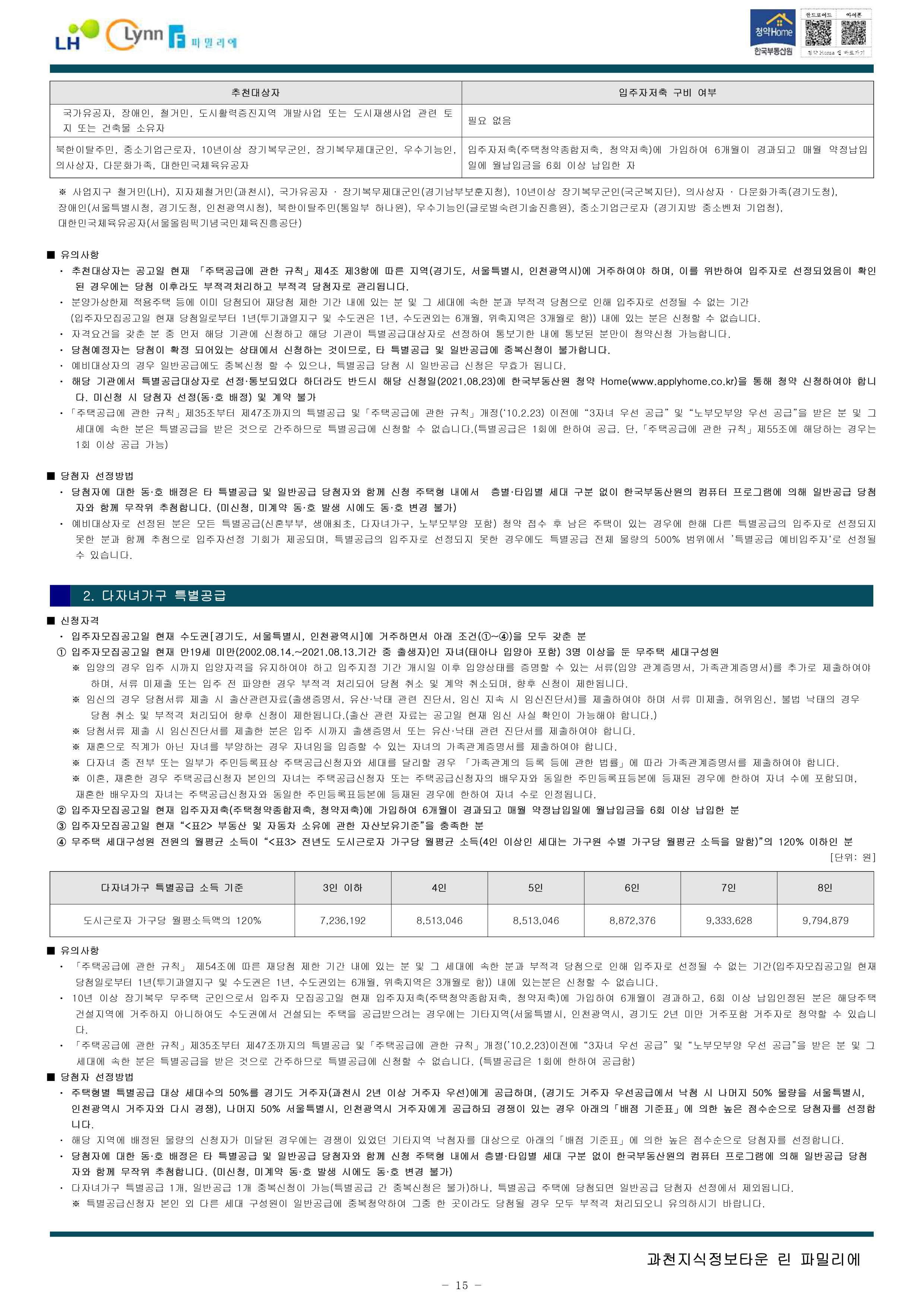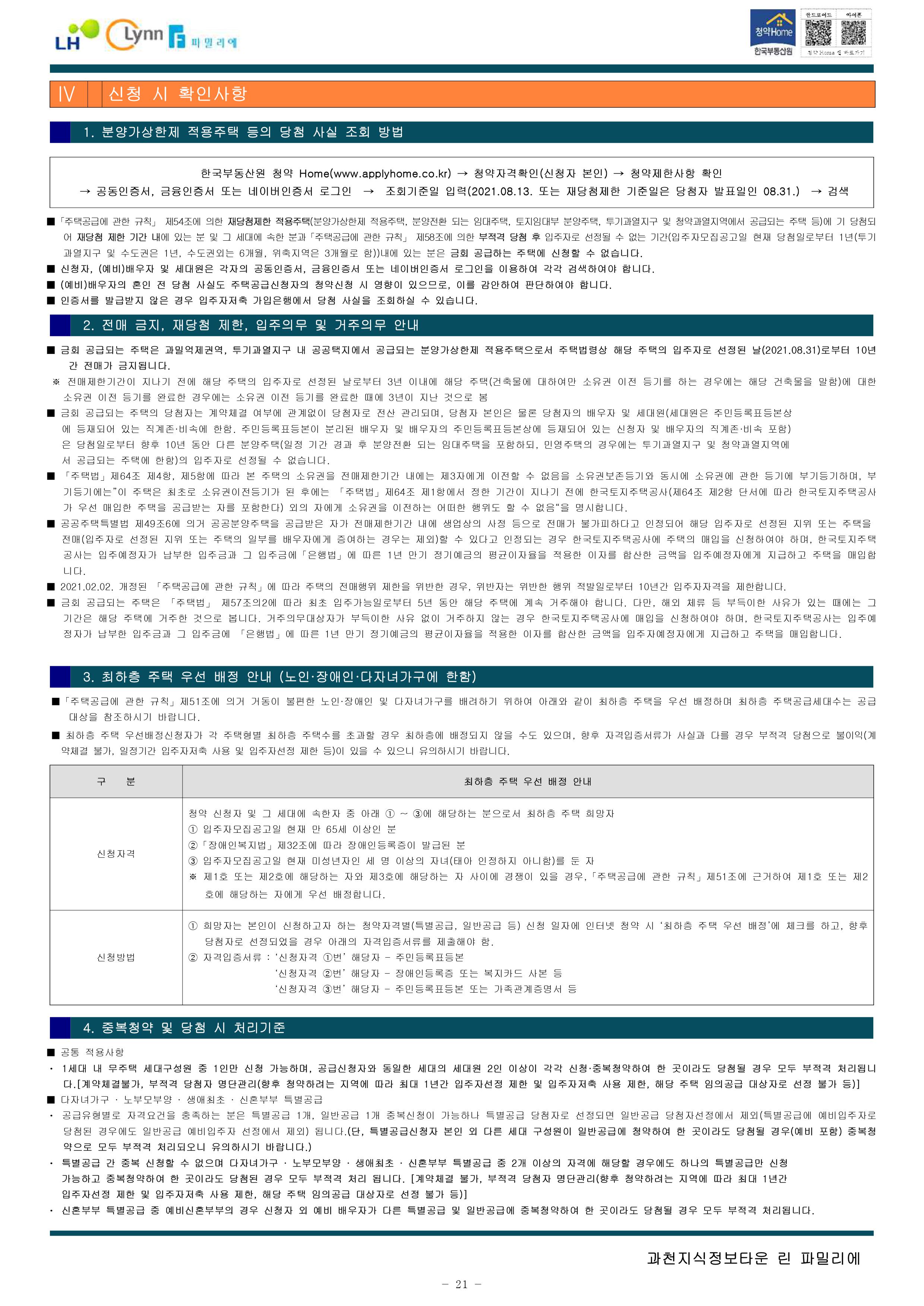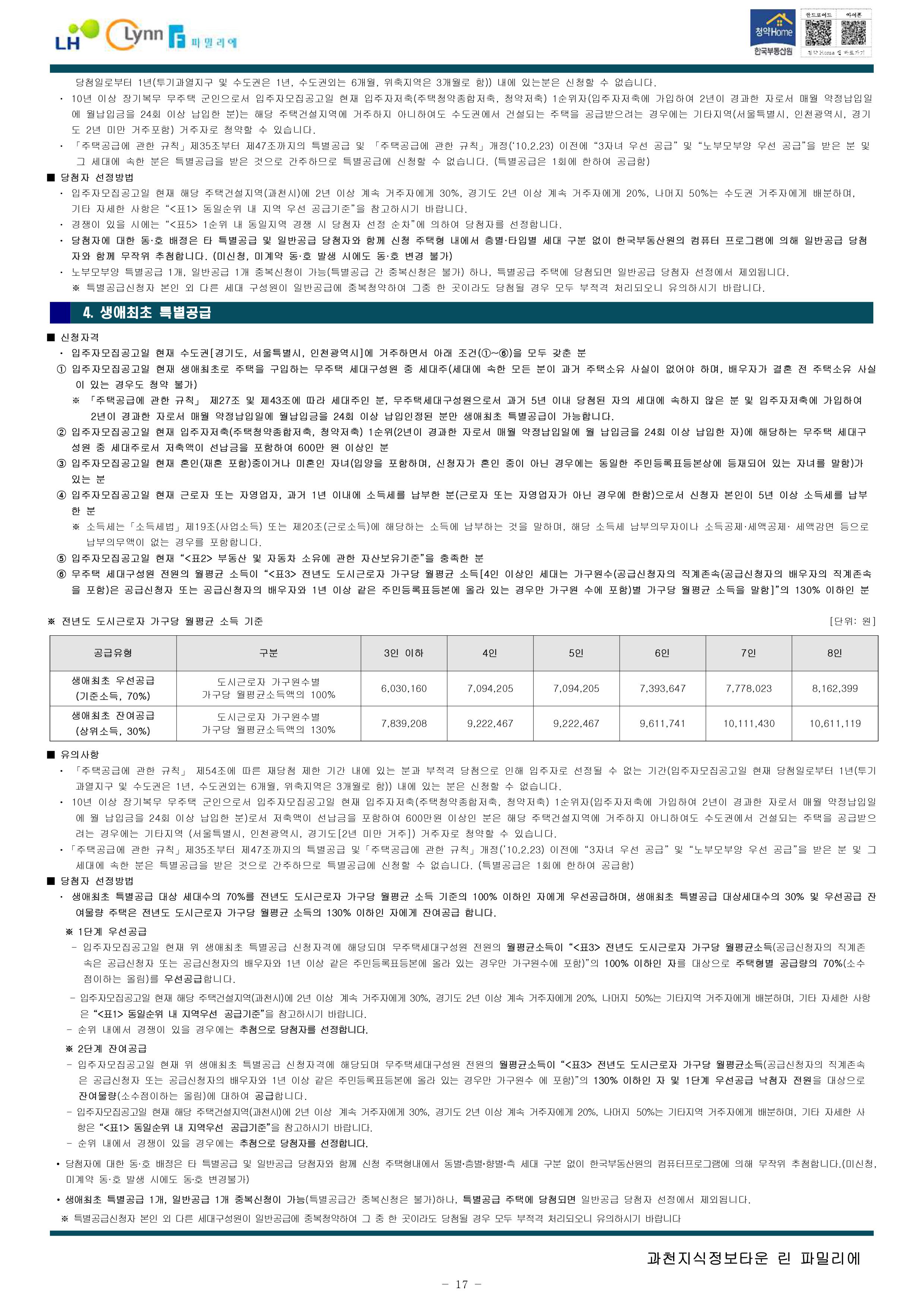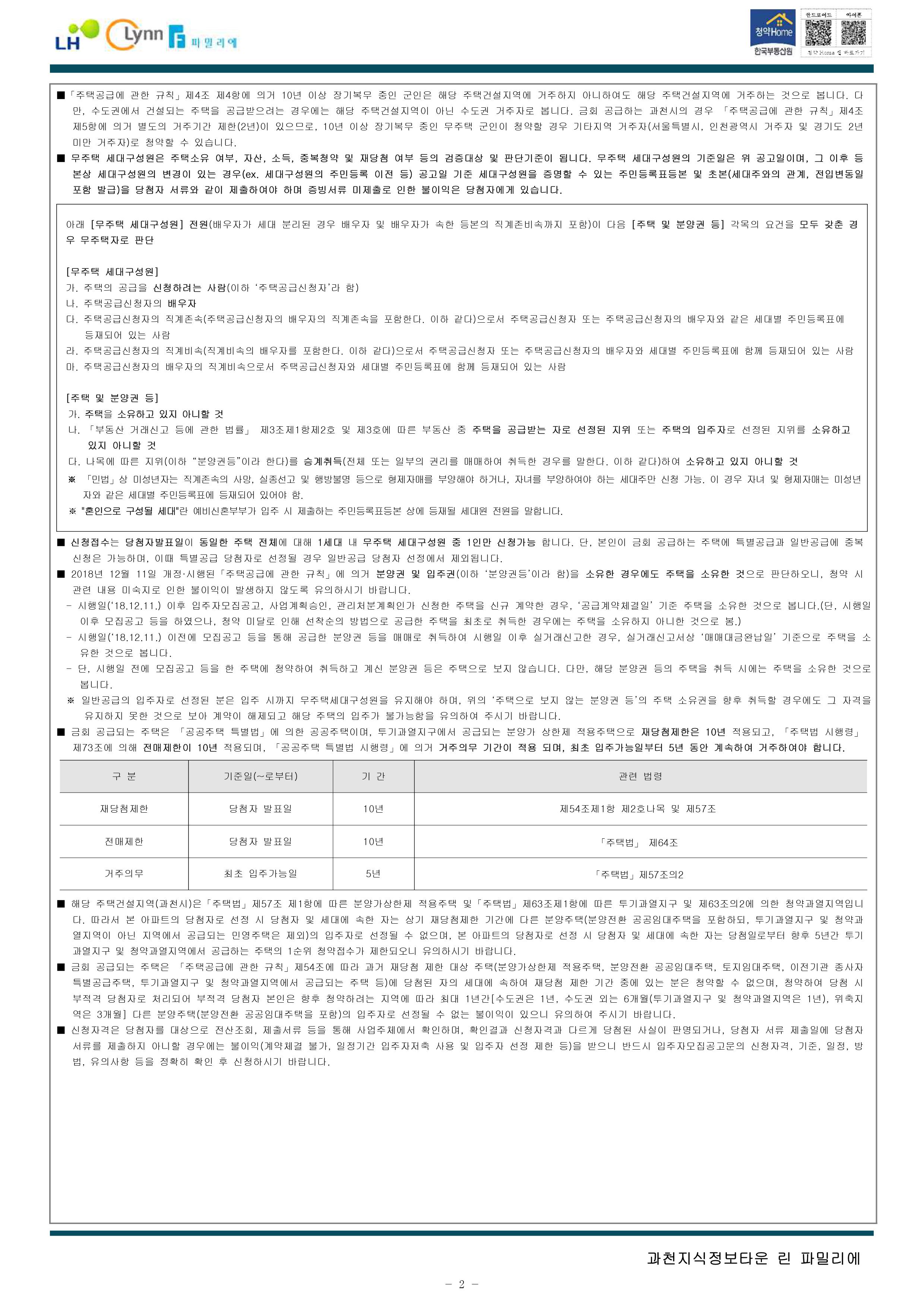 과천지식정보타운 린파밀리에 공옹분양주택 입주자 모집 공고문입니다.
