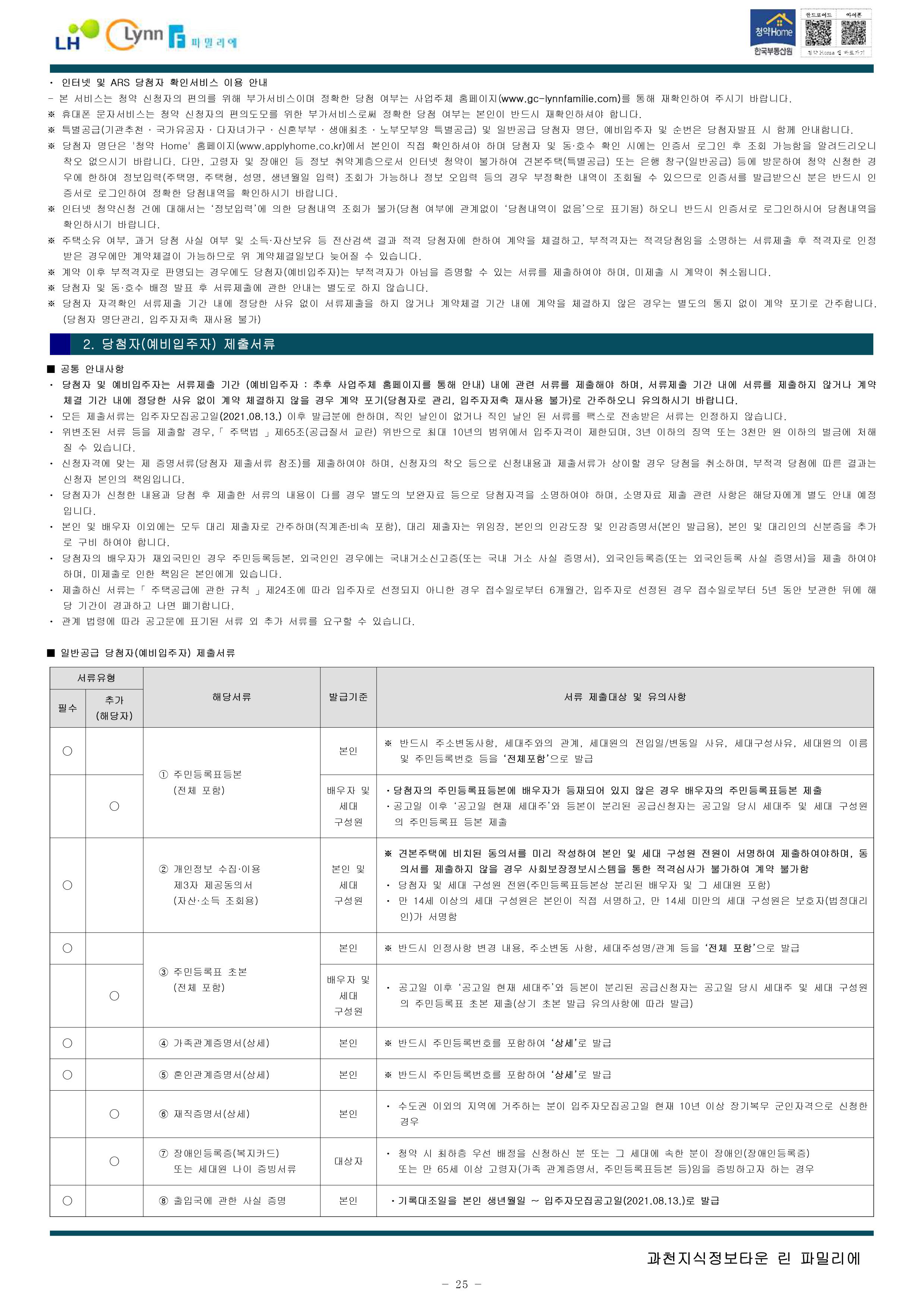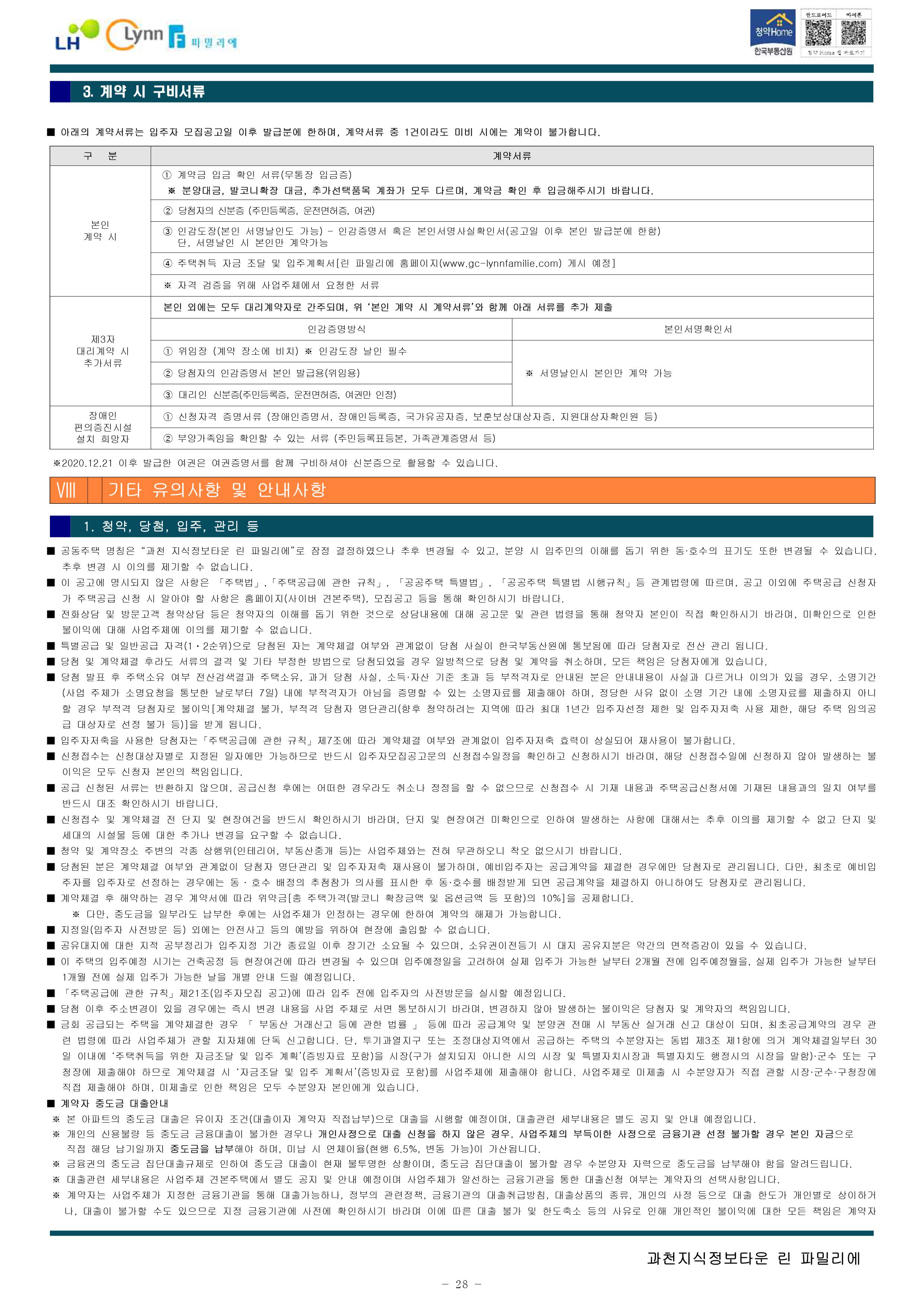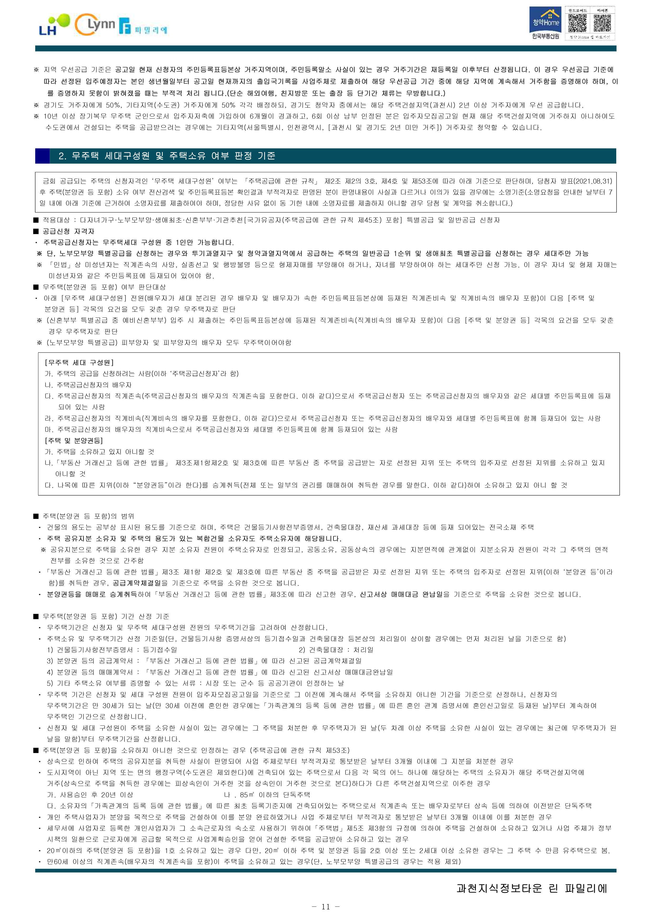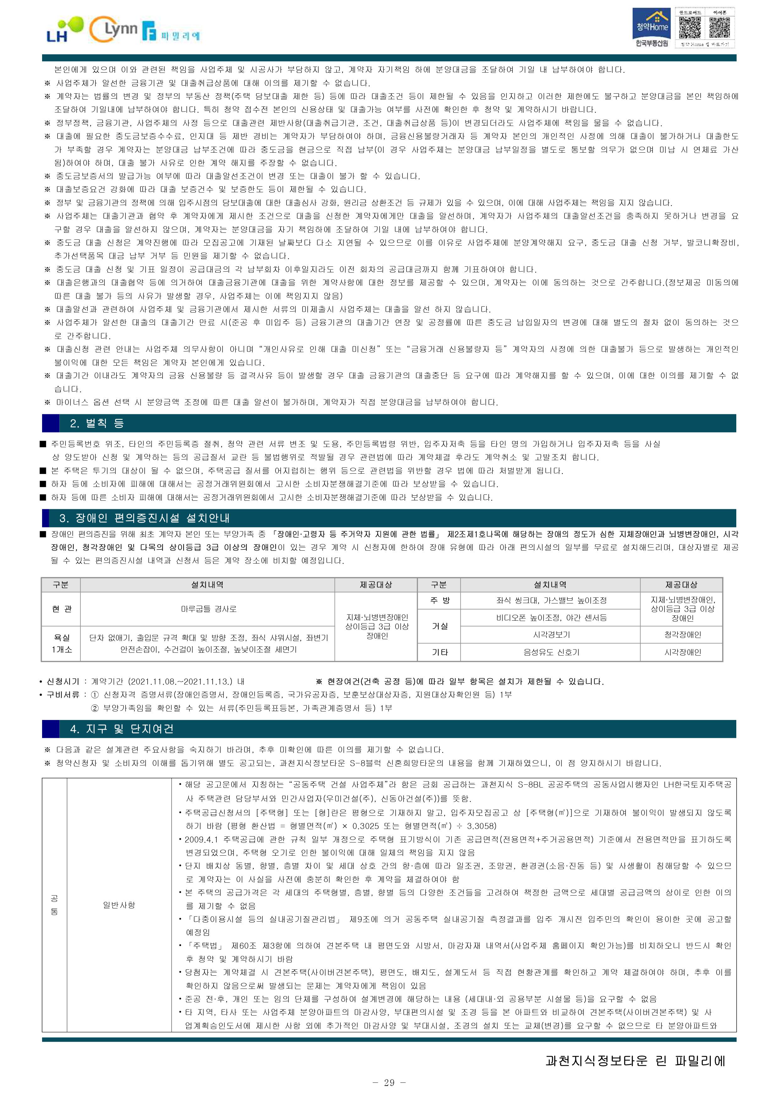 과천지식정보타운 린파밀리에 공옹분양주택 입주자 모집 공고문입니다.