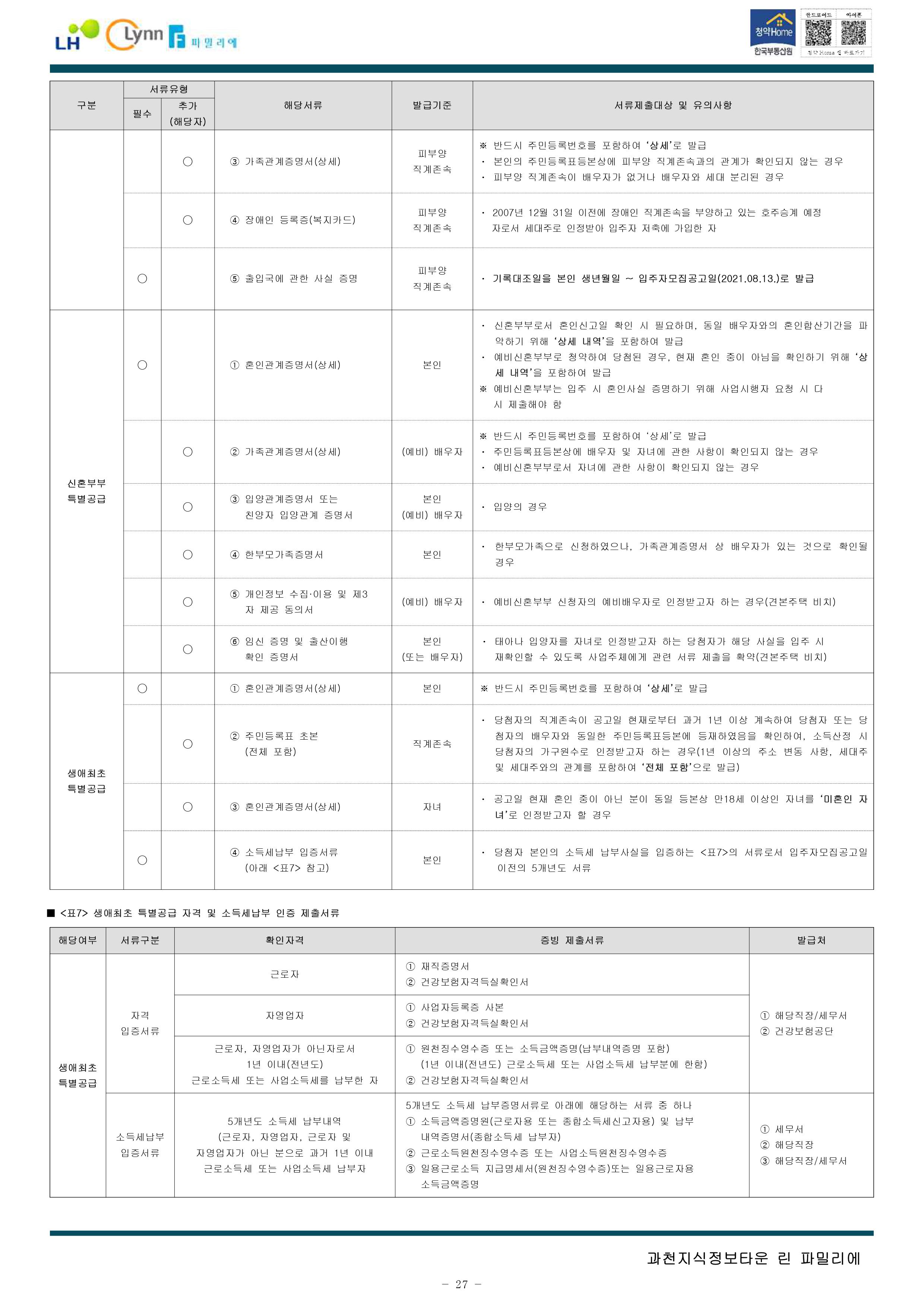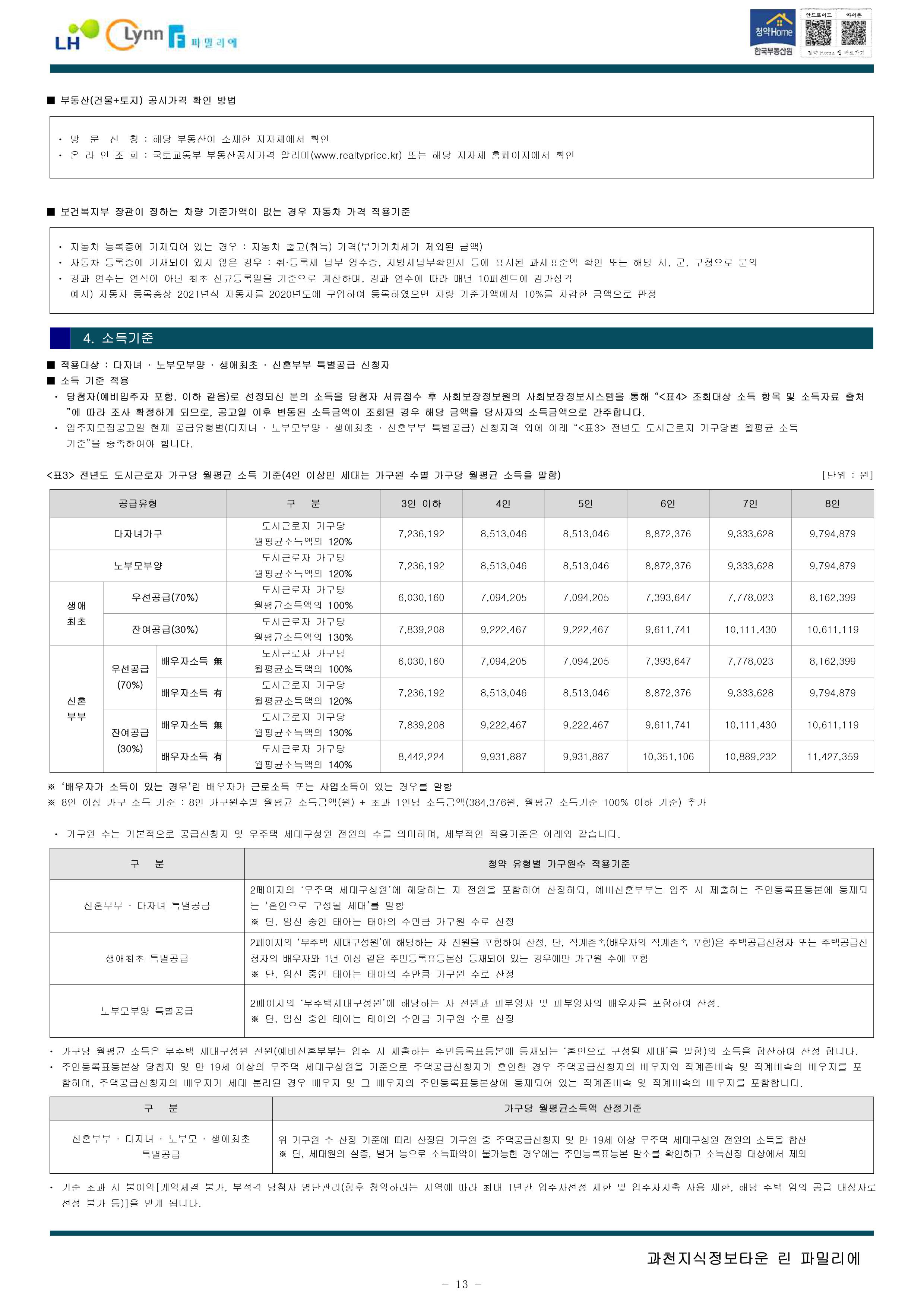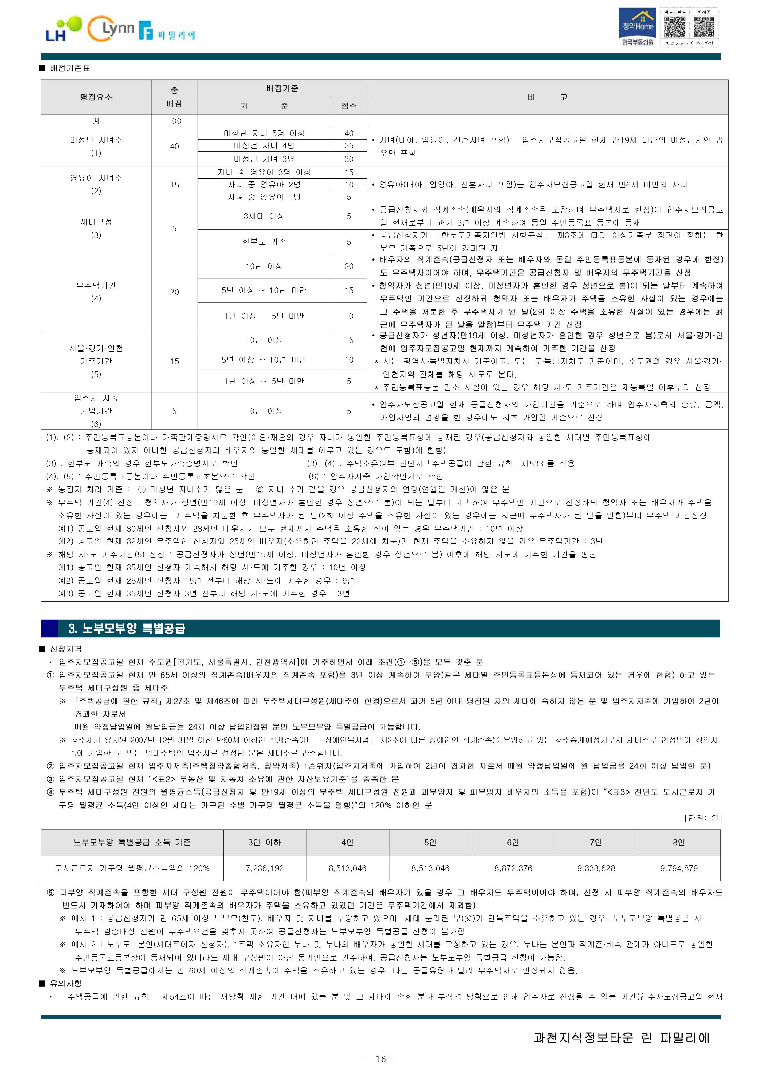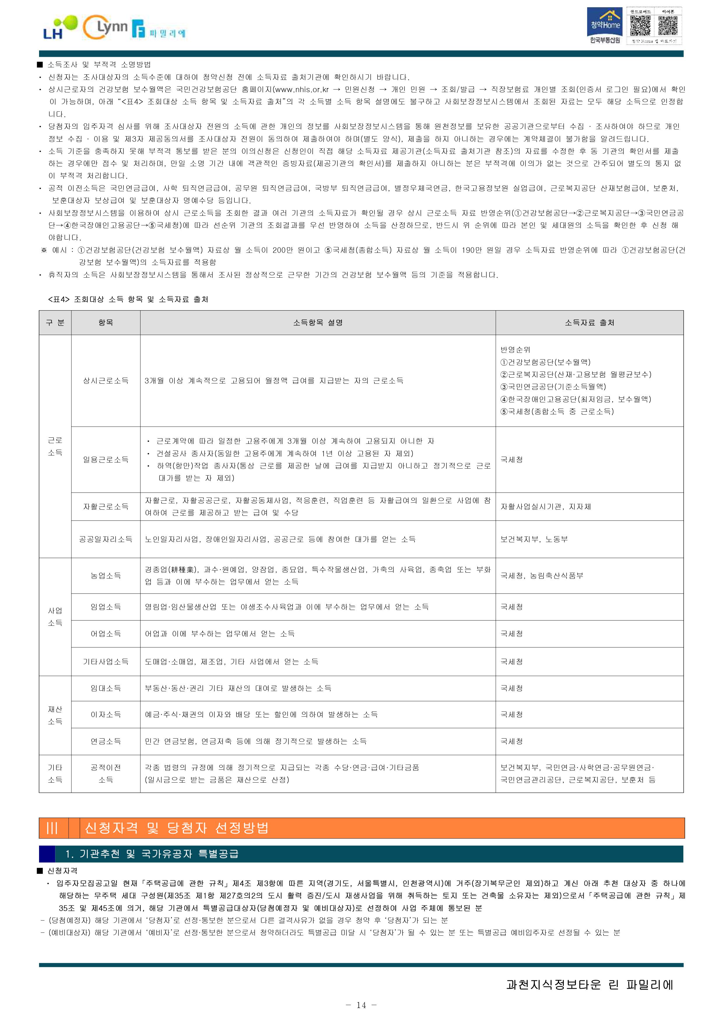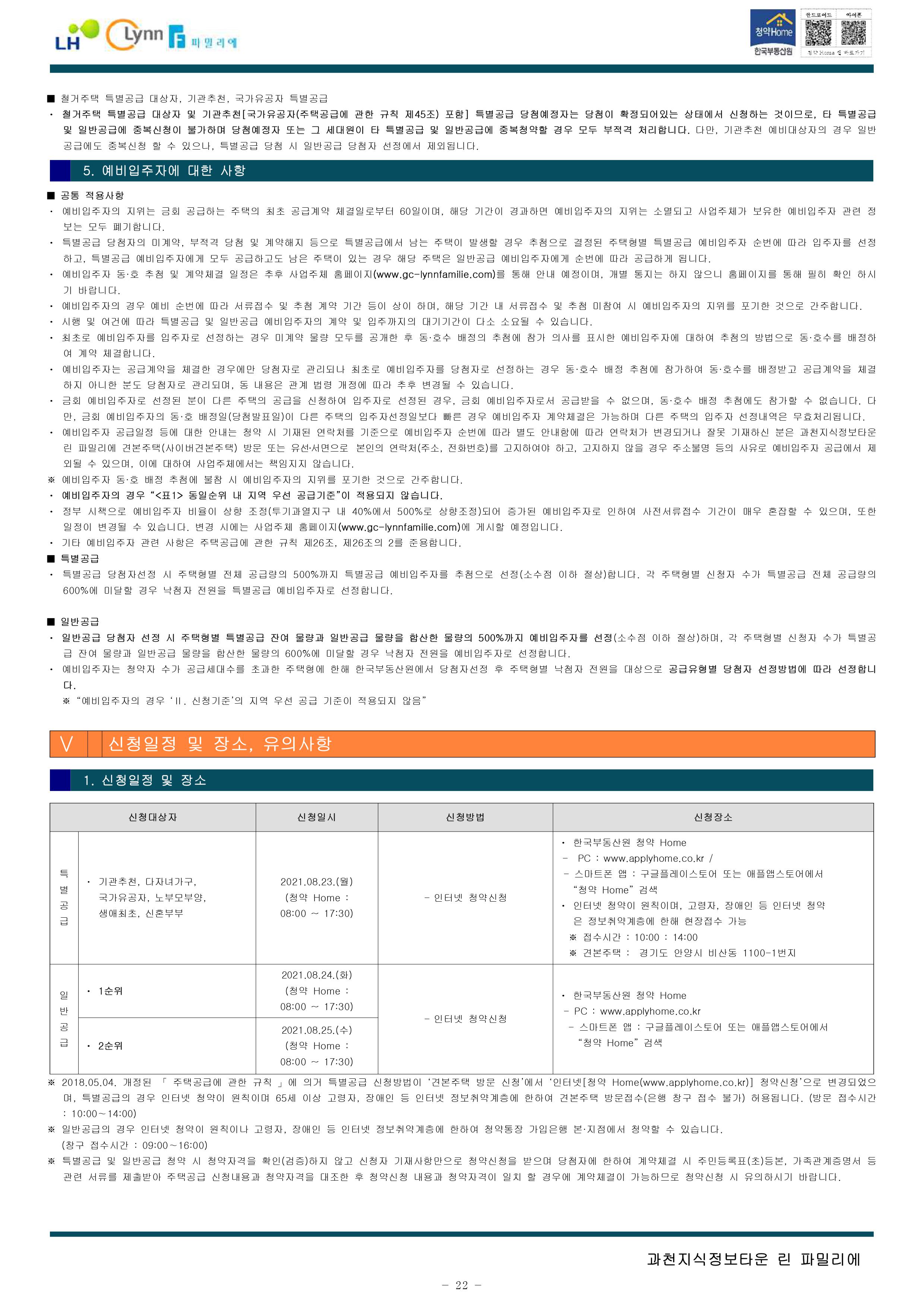 과천지식정보타운 린파밀리에 공옹분양주택 입주자 모집 공고문입니다.