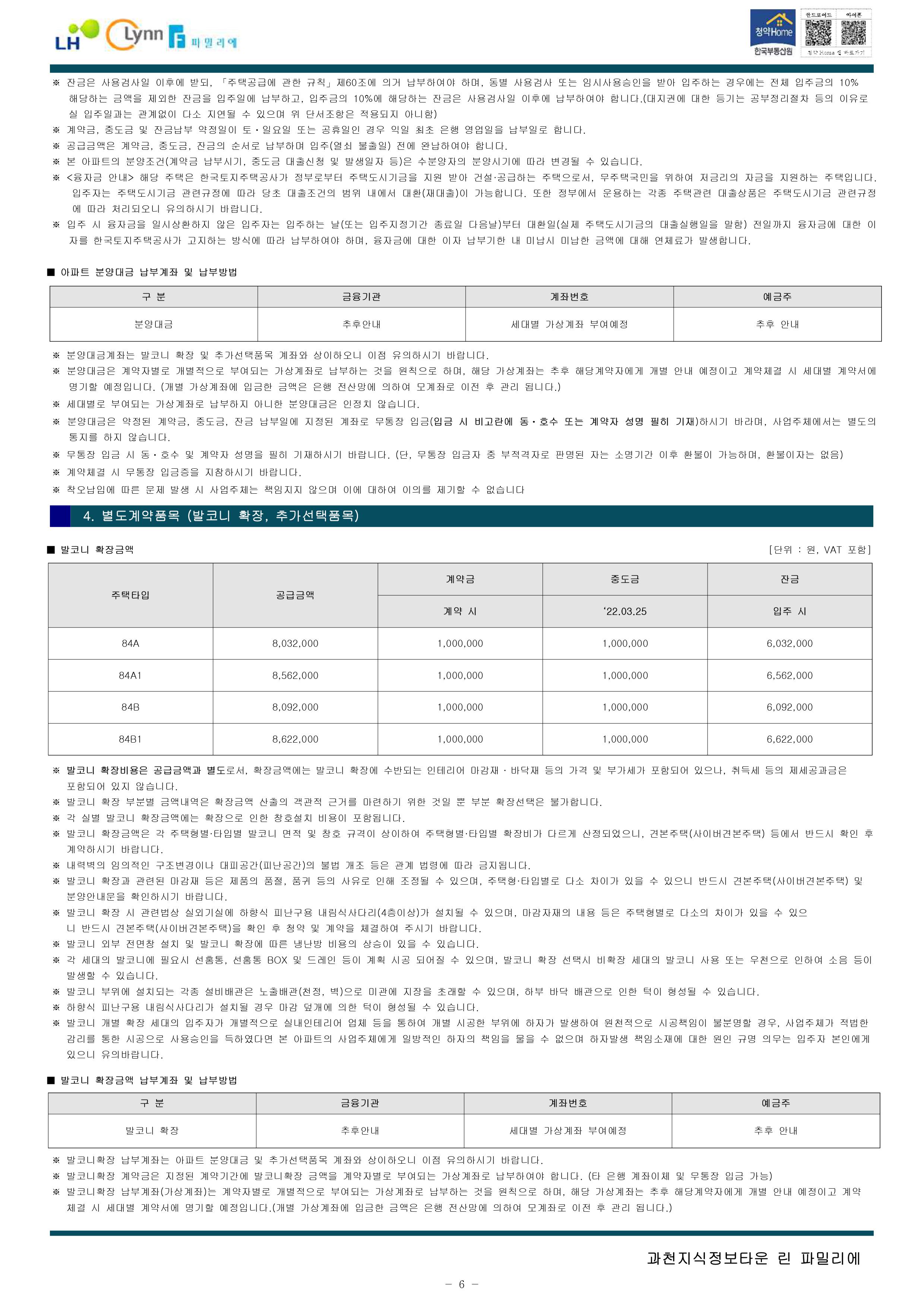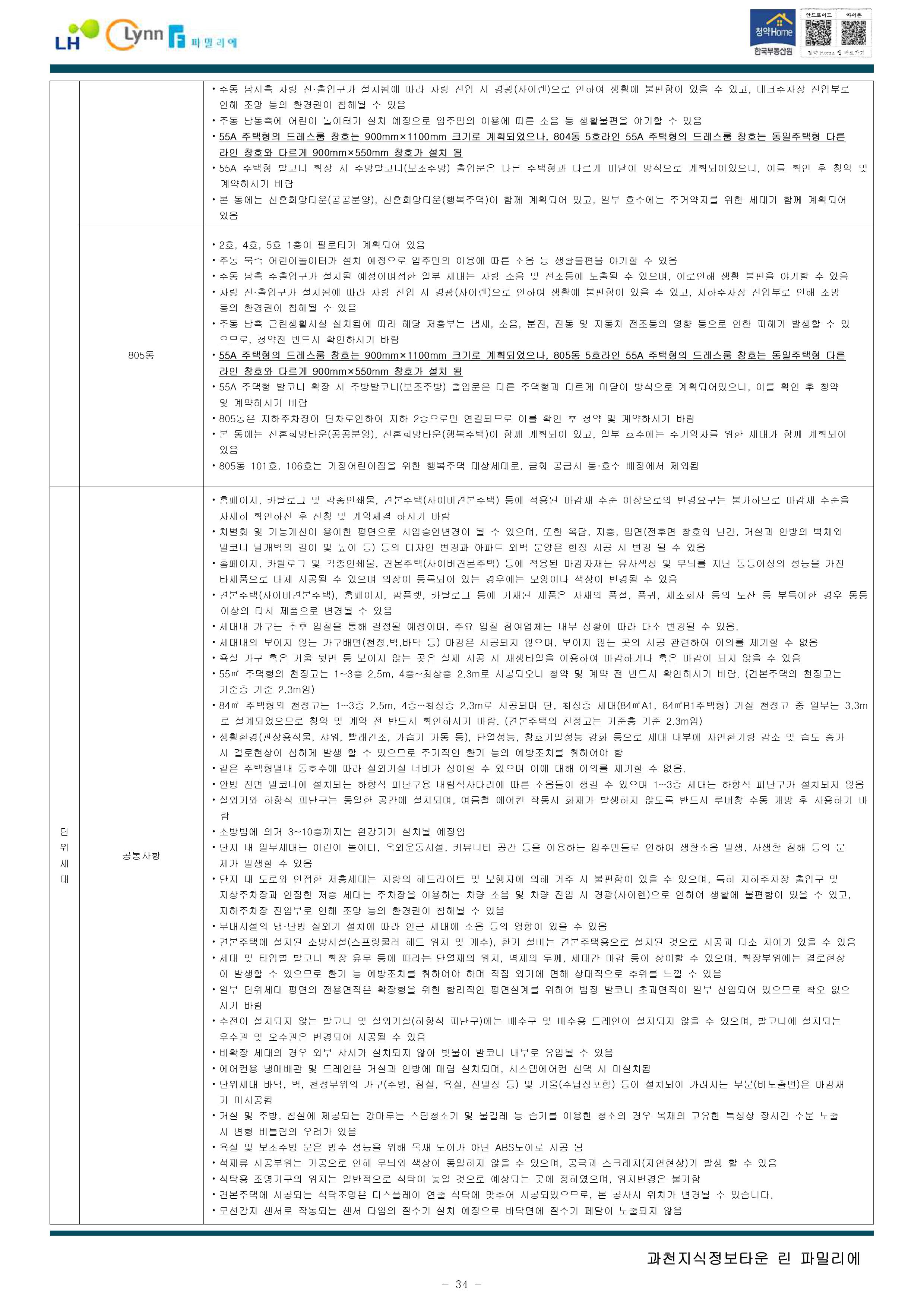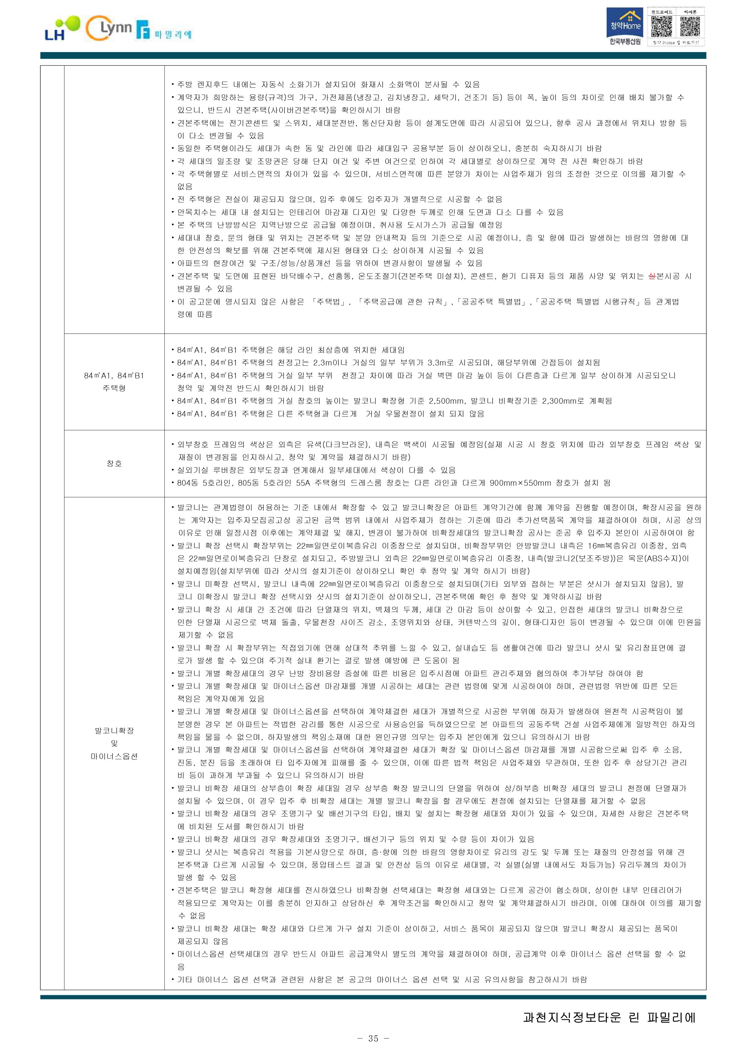 [공공분양주택]과천지식정보타운 린파밀리에 입주자 모집 공고, 평면도