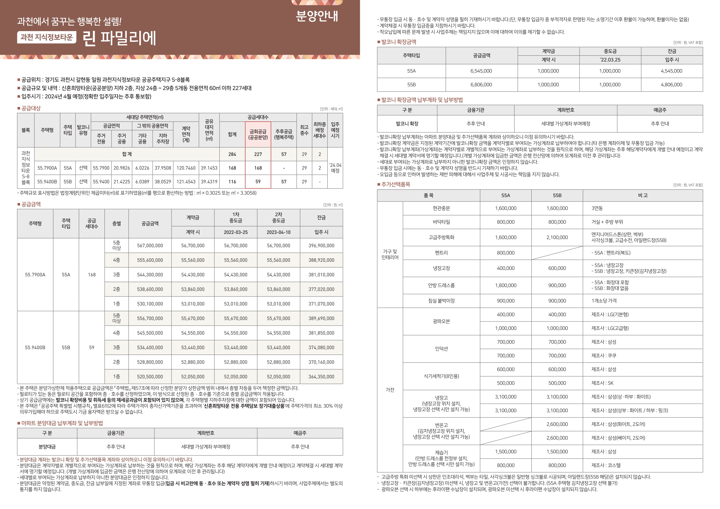 [신혼희망타운]과천지식정보타운 린파밀리에 입주자 모집공고 및 평형 사진