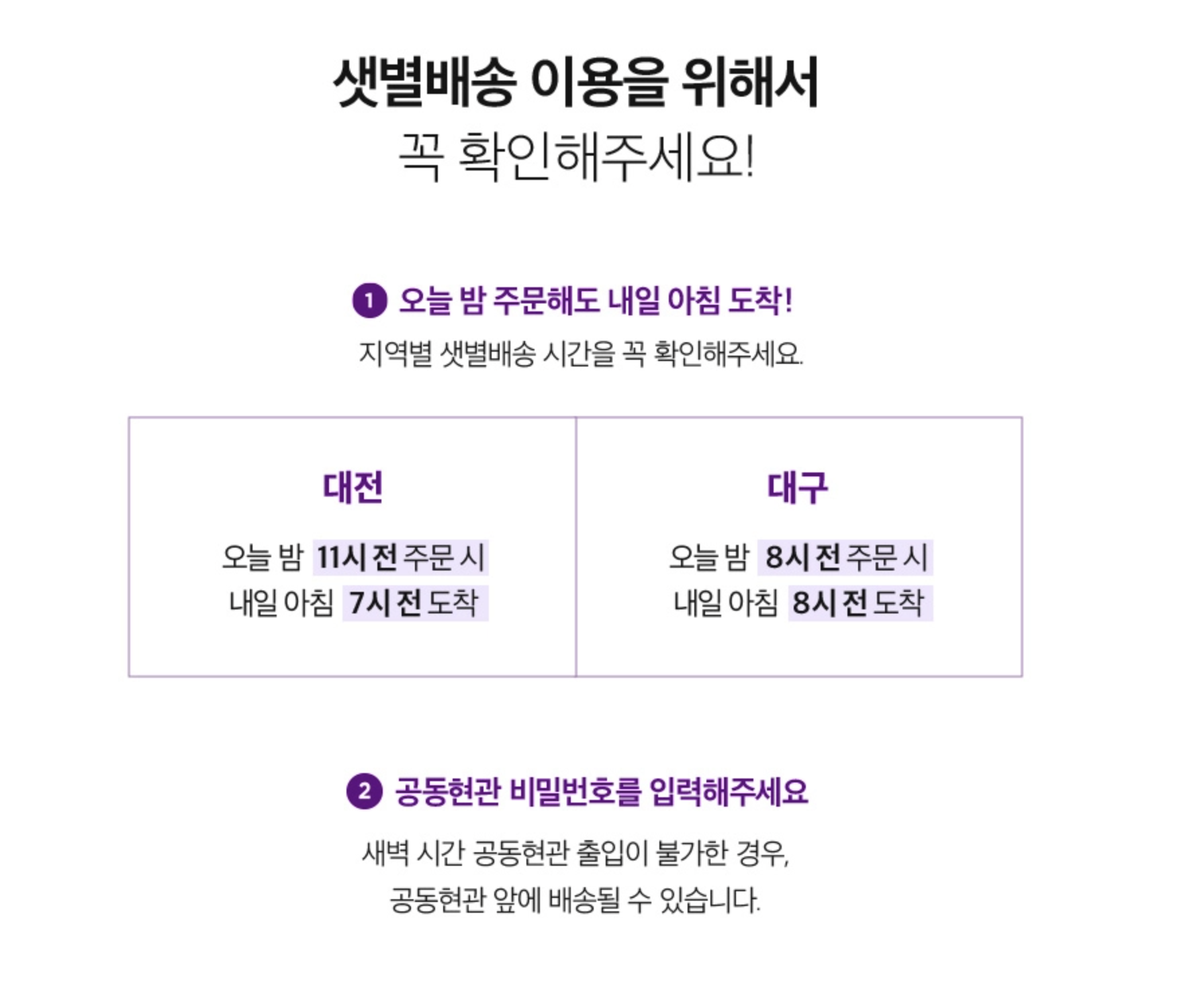 아래 링크에 들어가면 자신이 사는 곳이 샛별배송 지역인지 확인할 수 있다.