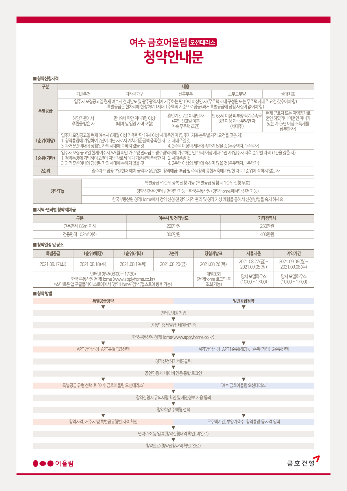 여수금호어울림 오션테라스 입주자 모집공고 및 평형 안내