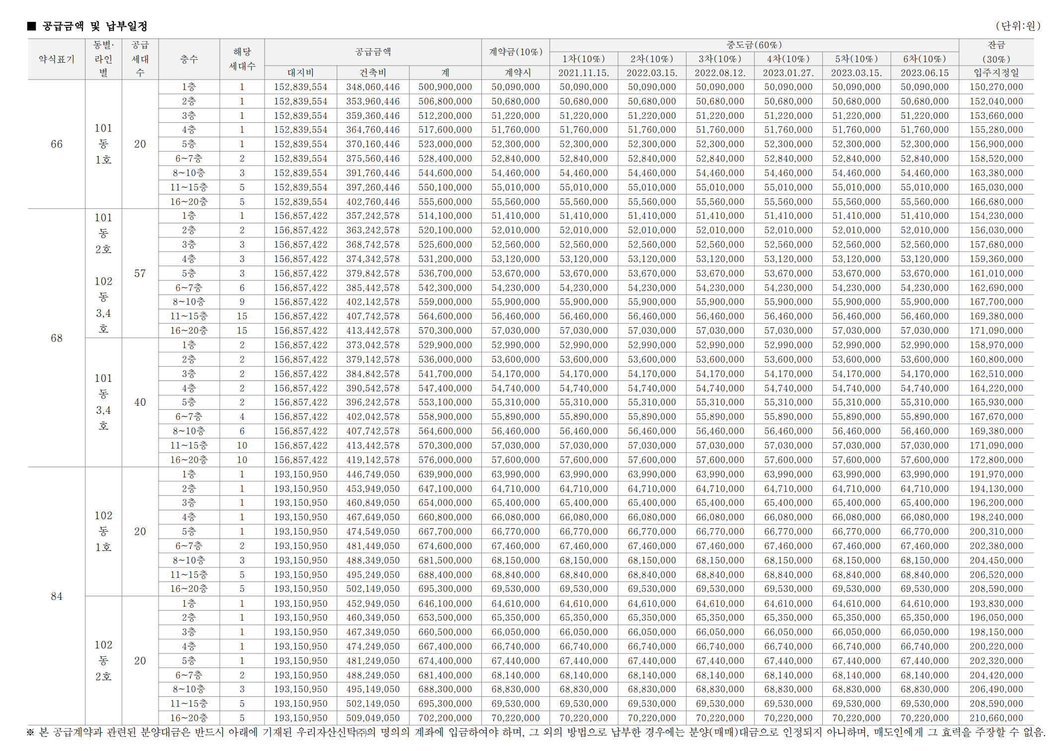 한화포레나 수원원천 공급금액 및 납부일정