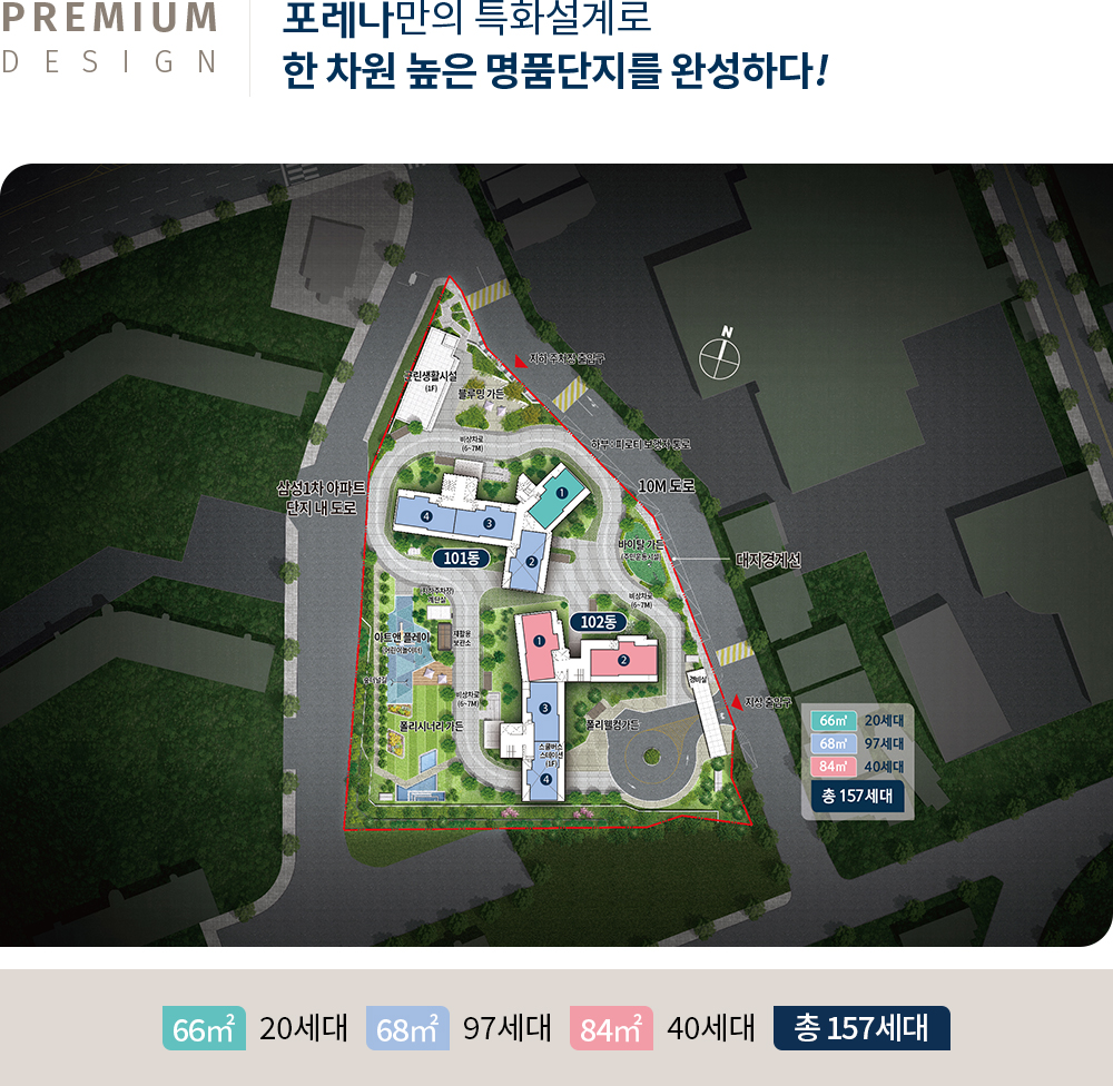 ■ 공급규모 : 아파트 지하 2층, 지상 20층 2개동 총 157세대 [특별공급 73세대(일반[기관추천]특별공급 15세대, 다자녀가구 특별공급 15세대, 신혼부부 특별공급 31세대, 생애최초 특별공급 9세대, 노부모 부양자 특별공급 3세대 포함)] 및 부대복리시설