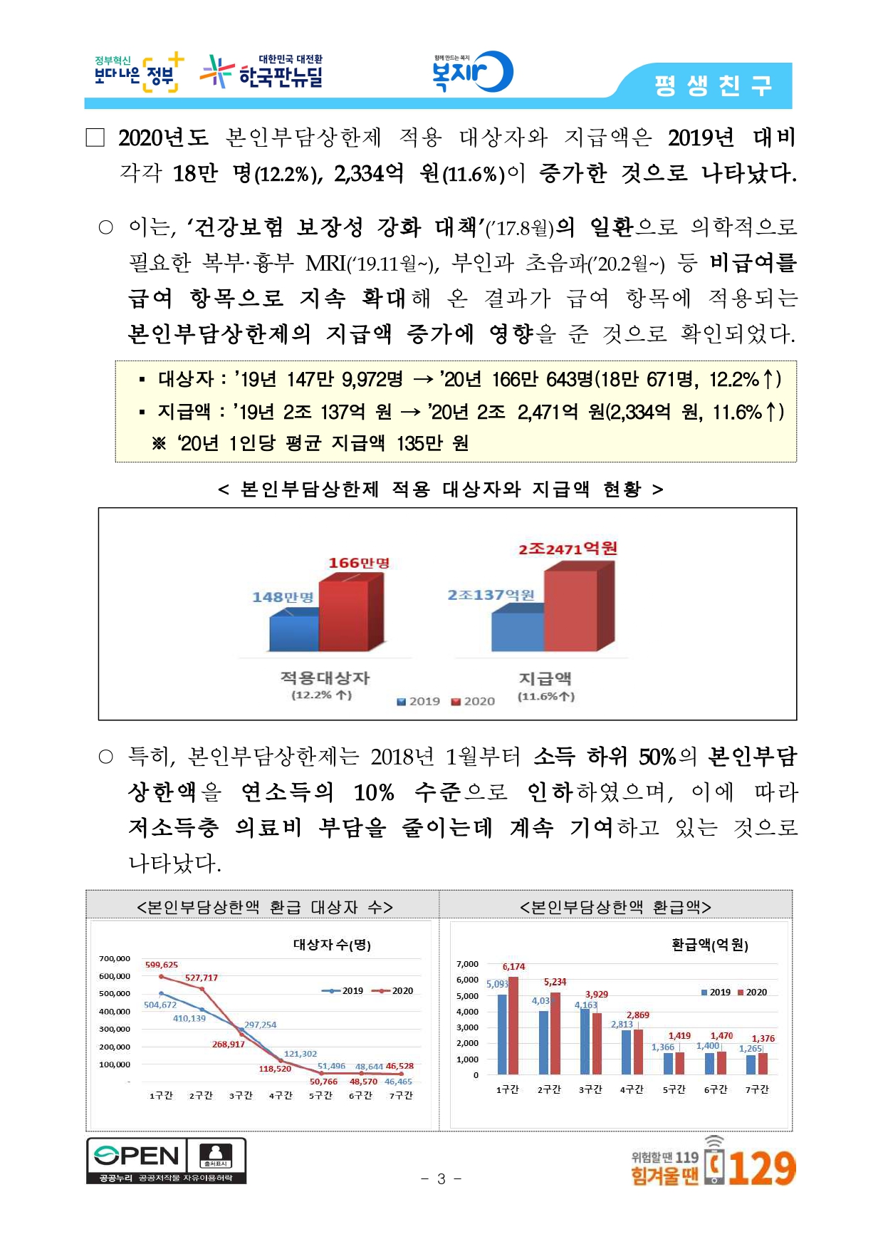 본인부담상한제를 통해 2020년도에는 총 166만 643명에게 2조 2,471억 원을 환급하며, 1인당 평균 135만 원의 혜택을 받는다.